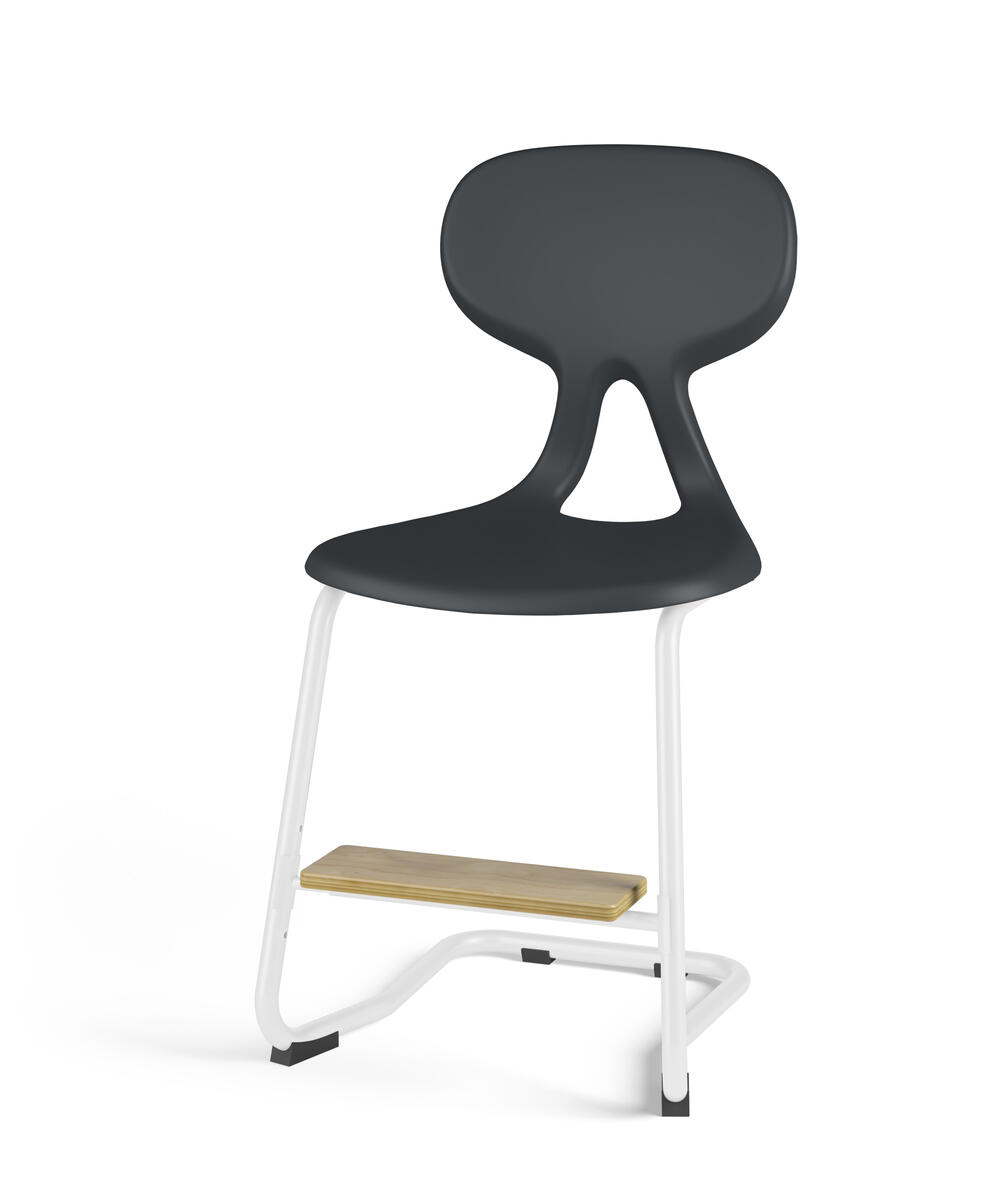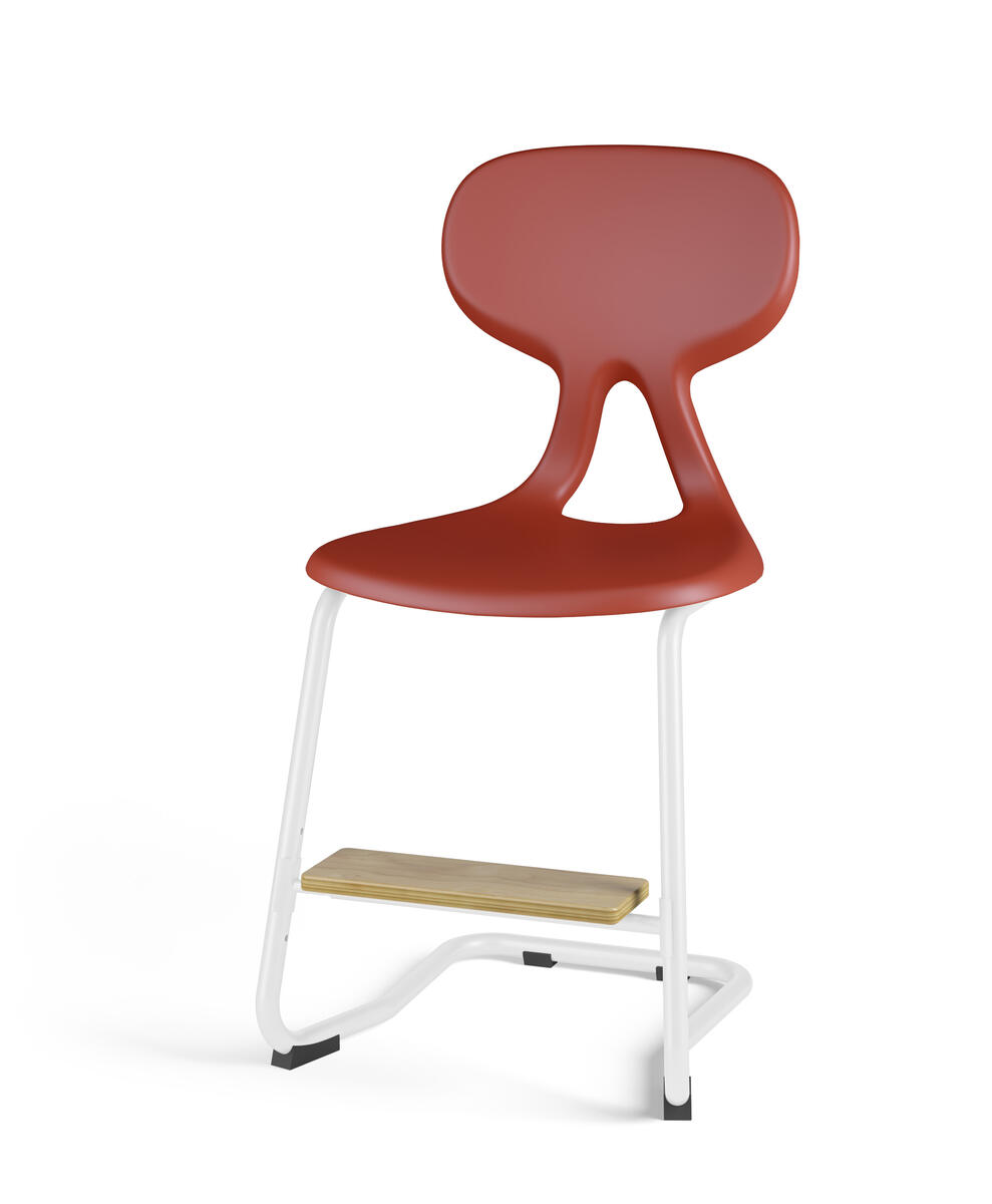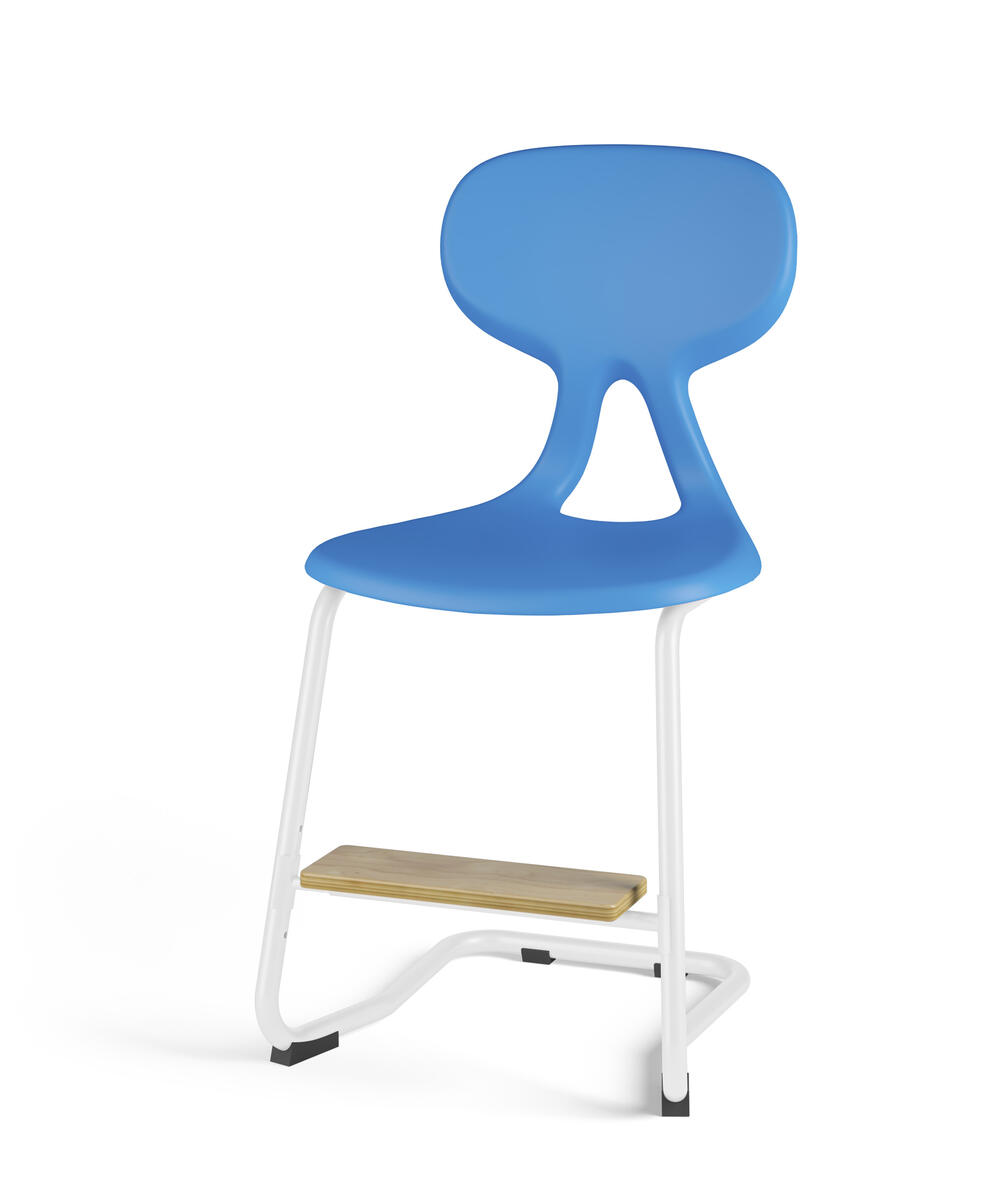 Det ergonomiska utförandet hjälper användaren till en bättre hållning och ger ett flexibelt stöd för ryggen. Stapelbar med max 4 stolar och upphängningsbar när man vänder den. Lätt att rengöra. Skal i polyuretan. Vitlackerat stativ RAL 9003. Mått: Sitthöjd 65 cm. Sitsbredd 44 cm. Sitsdjup 40 cm. Inklusive justerbart fotstöd.