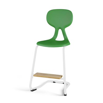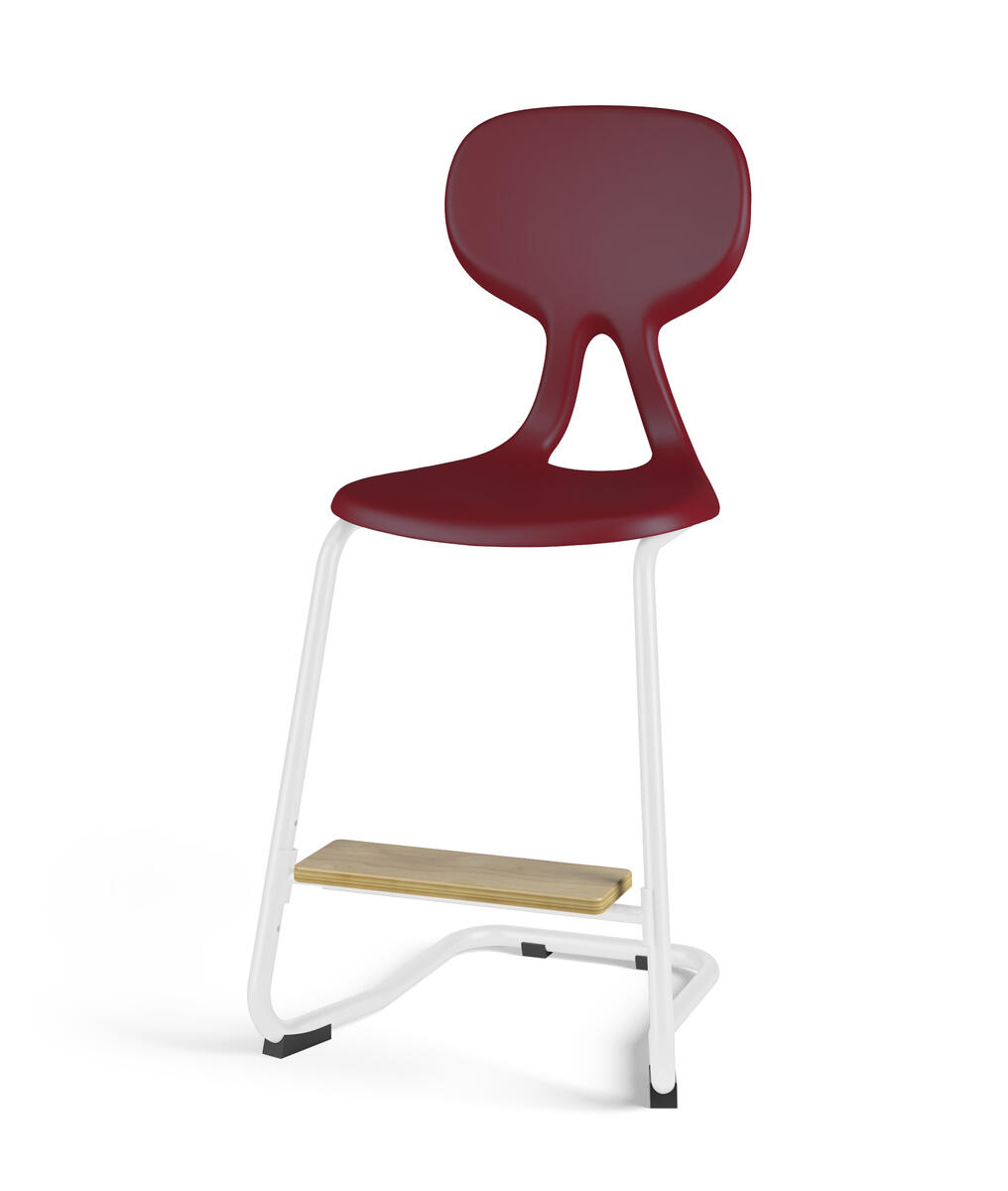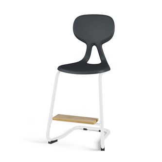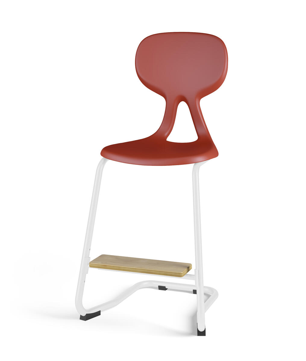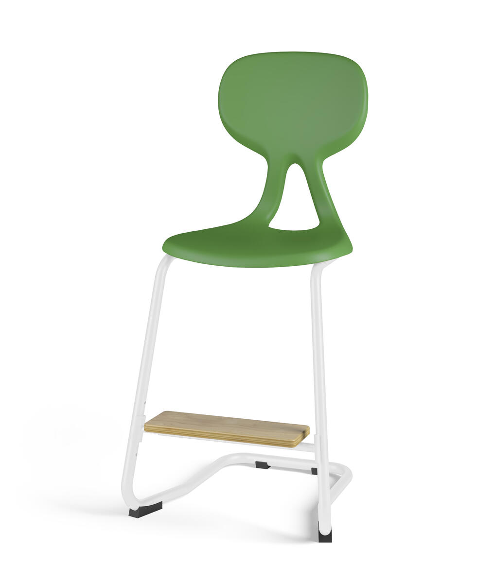 Det ergonomiska utförandet hjälper användaren till en bättre hållning och ger ett flexibelt stöd för ryggen. Stapelbar med max 4 stolar och upphängningsbar när man vänder den. Lätt att rengöra. Skal i polyuretan. Vitlackerat stativ RAL 9003. Mått: Sitthöjd 65 cm. Sitsbredd 44 cm. Sitsdjup 40 cm. Inklusive justerbart fotstöd.