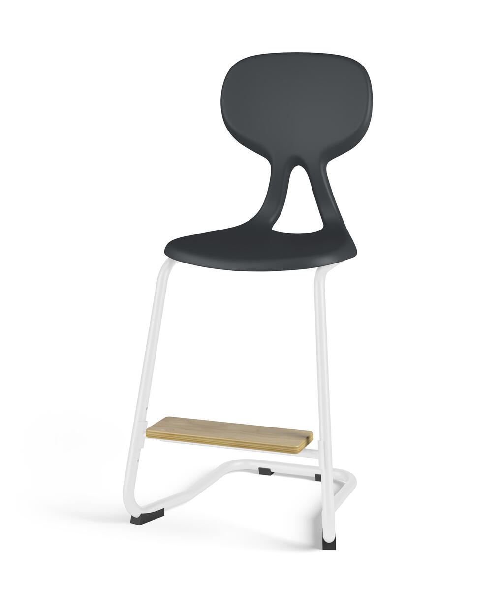 Det ergonomiska utförandet hjälper användaren till en bättre hållning och ger ett flexibelt stöd för ryggen. Stapelbar med max 4 stolar och upphängningsbar när man vänder den. Lätt att rengöra. Skal i polyuretan. Svartlackerat stativ RAL 9005. Mått: Sitthöjd 65 cm. Sitsbredd 44 cm. Sitsdjup 40 cm. Inklusive justerbart fotstöd.