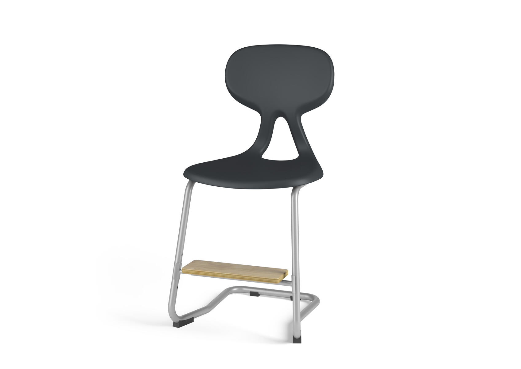 Det ergonomiska utförandet hjälper användaren till en bättre hållning och ger ett flexibelt stöd för ryggen. Stapelbar med max 4 stolar och upphängningsbar när man vänder den. Lätt att rengöra. Skal i polyuretan. Silverlackerat stativ RAL 9006. Mått: Sitthöjd 50 cm. Sitsbredd 38 cm. Sitsdjup 34 cm. Inklusive justerbart fotstöd.