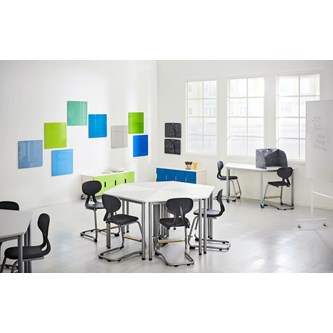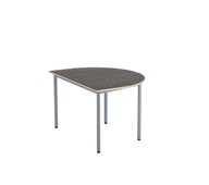 Bordsskiva med ljuddämpande yta i linoleum och ljudabsorbent på undersidan. Ställbara tassar för anpassning till ojämna ytor. Stativet lackerat i silver RAL 9006.