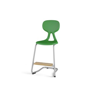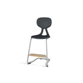 Det ergonomiska utförandet hjälper användaren till en bättre hållning och ger ett flexibelt stöd för ryggen. Stapelbar med max 4 stolar och upphängningsbar när man vänder den. Lätt att rengöra. Skal i polyuretan. Silverlackerat stativ RAL 9006. Mått: Sitthöjd 65 cm. Sitsbredd 44 cm. Sitsdjup 40 cm. Inklusive justerbart fotstöd.