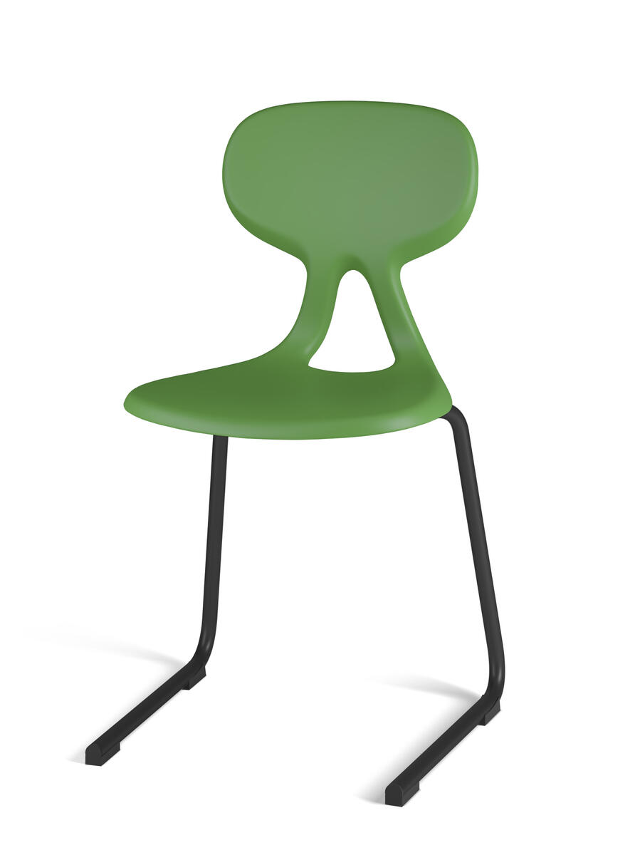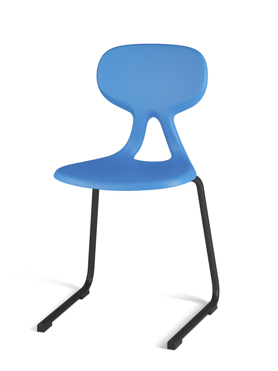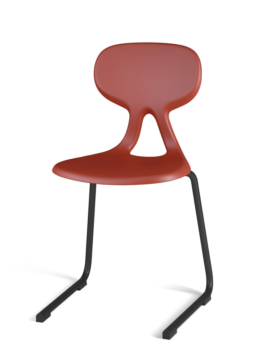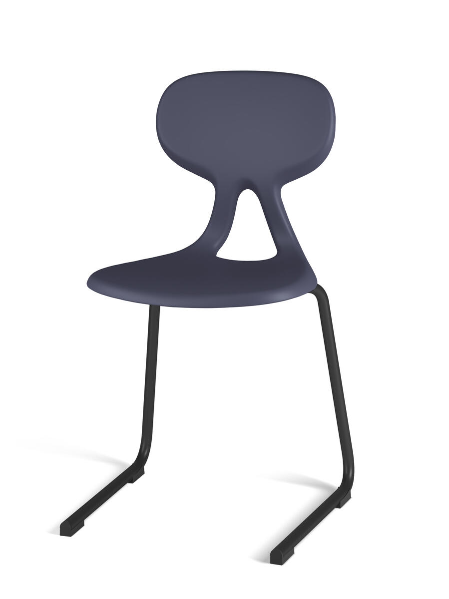 Det ergonomiska utförandet hjälper användaren till en bättre hållning och ger ett flexibelt stöd för ryggen. Stapelbar med max 4 stolar och stativet är utformat för att enkelt kunna hänga upp den. Lätt att rengöra. Skal i polyuretan. Svartlackerat stativ RAL 9005.