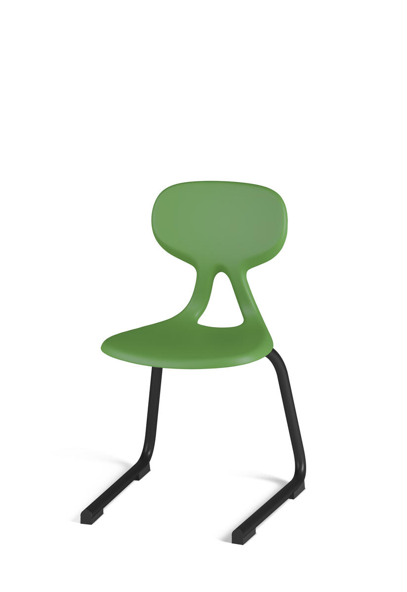 Det ergonomiska utförandet hjälper användaren till en bättre hållning och ger ett flexibelt stöd för ryggen. Stapelbar med max 4 stolar och stativet är utformat för att enkelt kunna hänga upp den. Lätt att rengöra. Skal i polyuretan. Svartlackerat stativ RAL 9005.