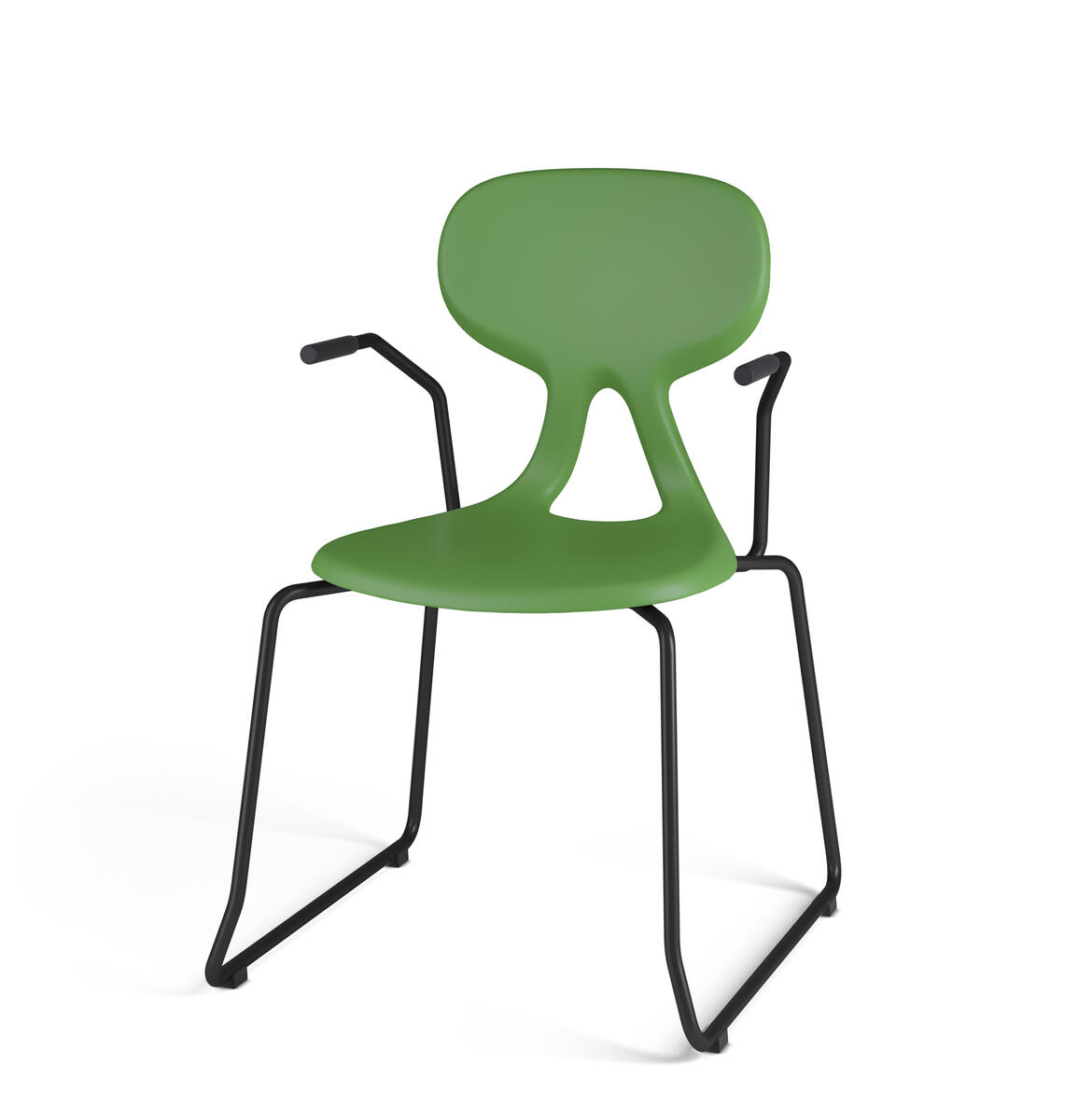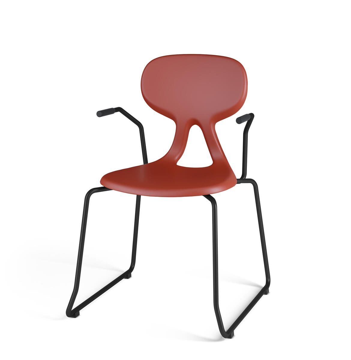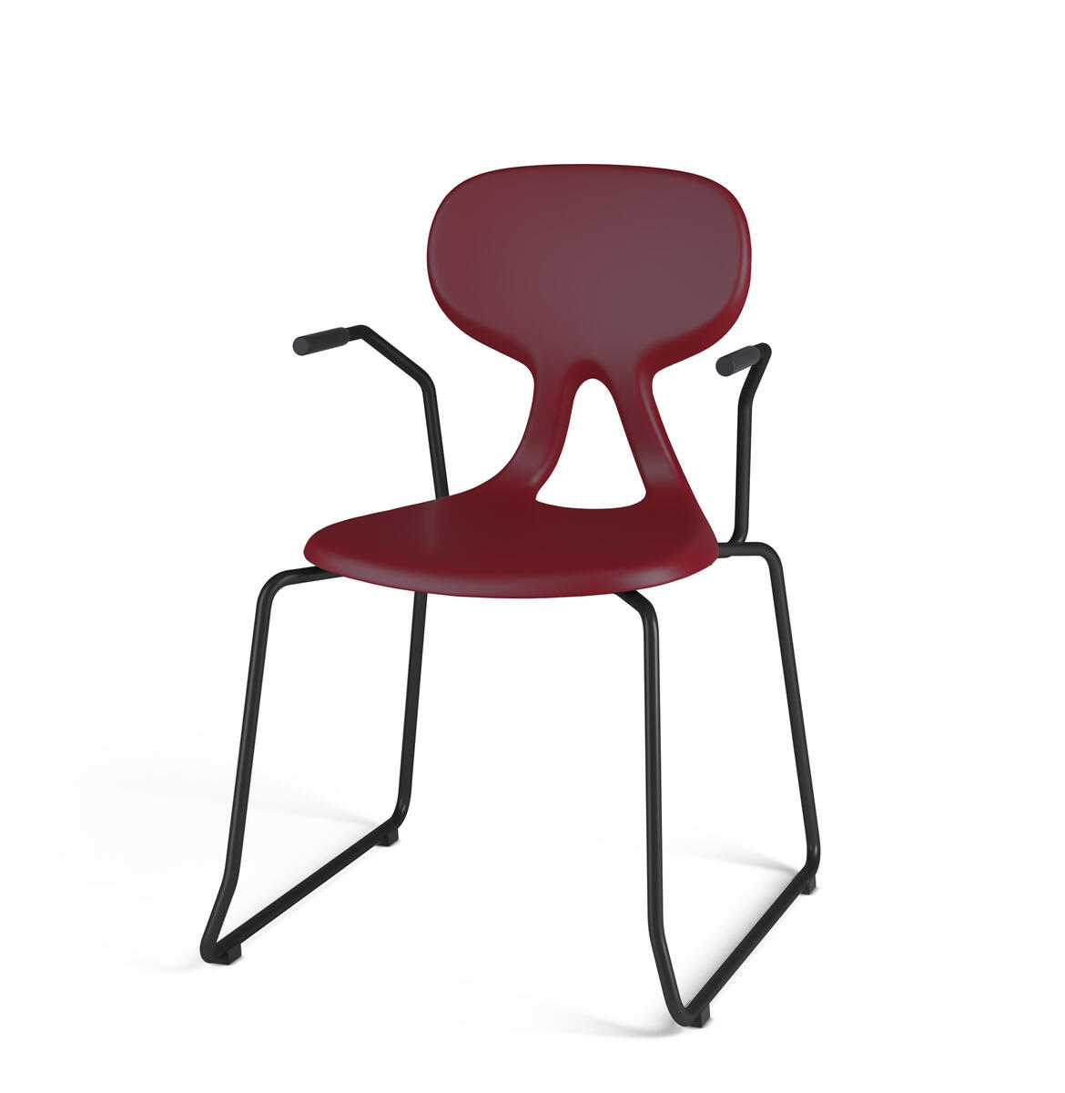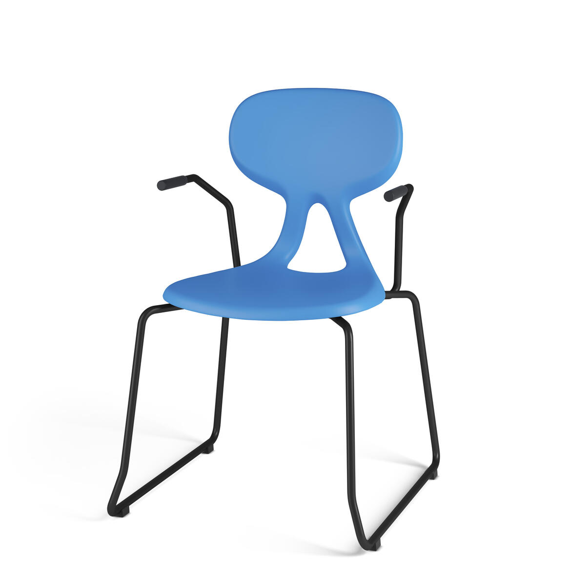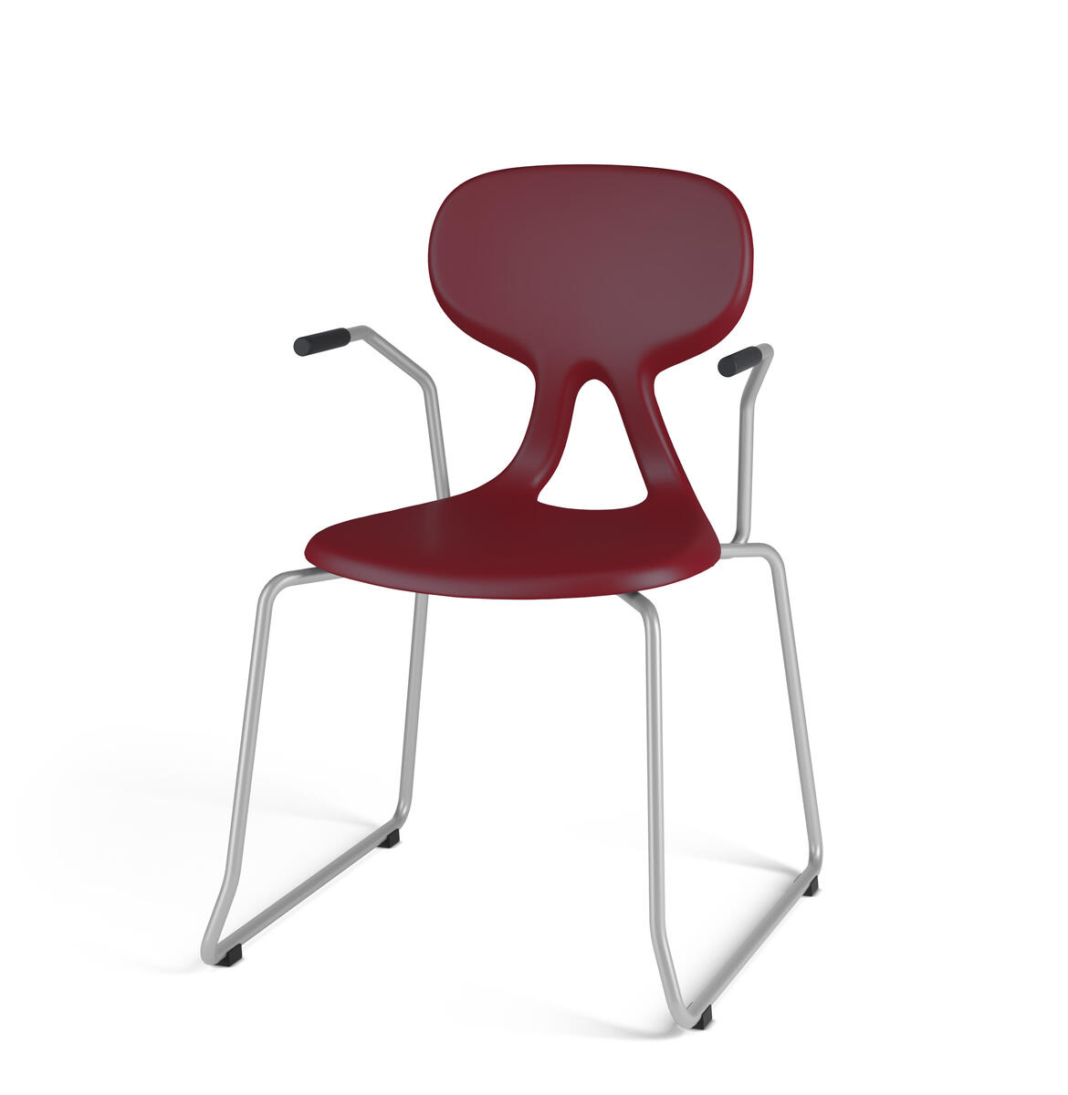 Det ergonomiska utförandet hjälper användaren till en bättre hållning och ger ett flexibelt stöd för ryggen. Stapelbar och upphängningsbar när man vänder den. Lätt att rengöra. Skal i polyuretan. Silverlackerat stativ RAL 9006. Mått: Sitthöjd 45 cm. Sitsbredd 44 cm. Sitsdjup 40 cm.