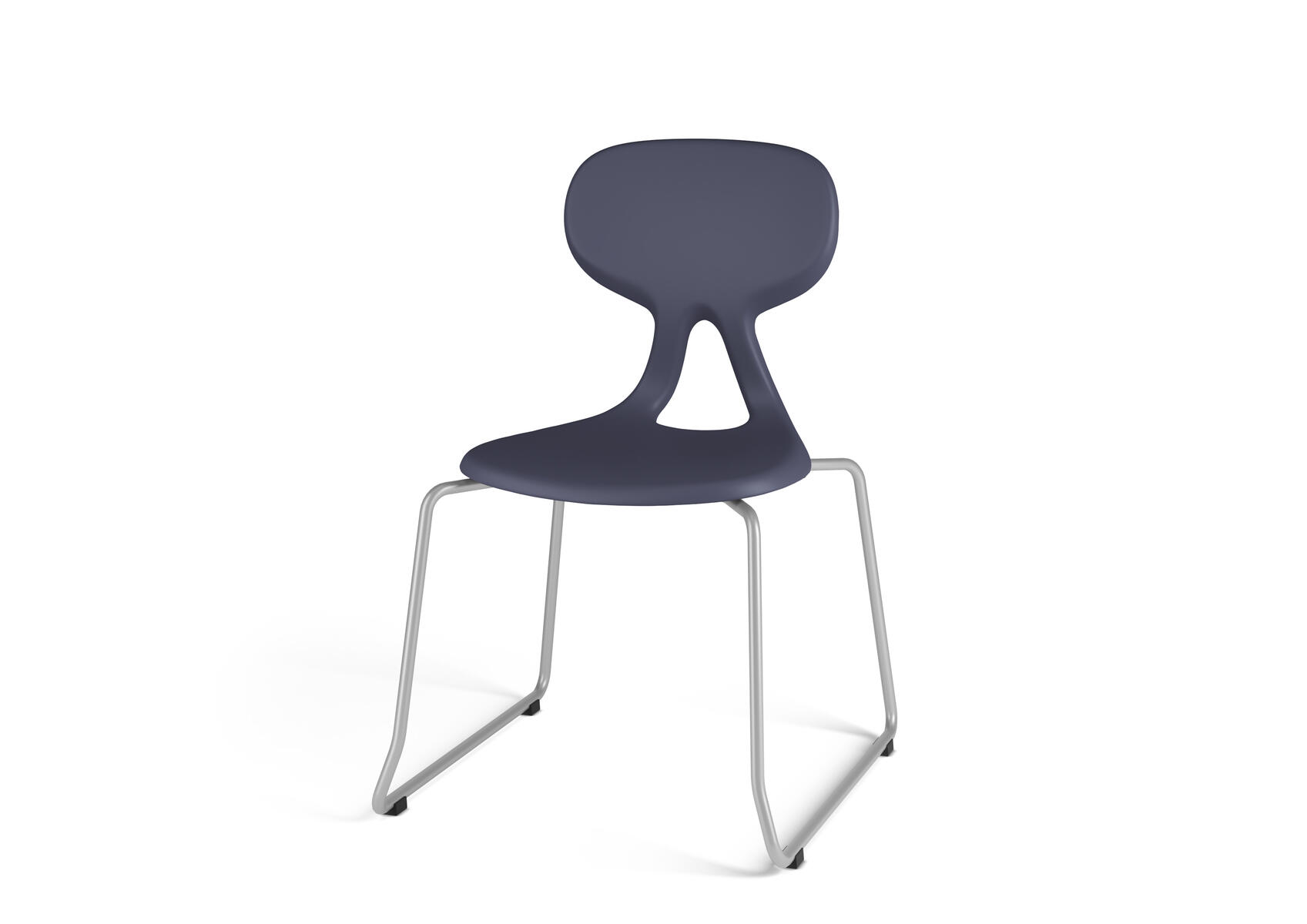 Det ergonomiska utförandet hjälper användaren till en bättre hållning och ger ett flexibelt stöd för ryggen. Stapelbar och upphängningsbar när man vänder den. Lätt att rengöra. Skal i polyuretan. Silverlackerat stativ RAL 9006. Mått: Sitthöjd 45 cm. Sitsbredd 44 cm. Sitsdjup 40 cm.