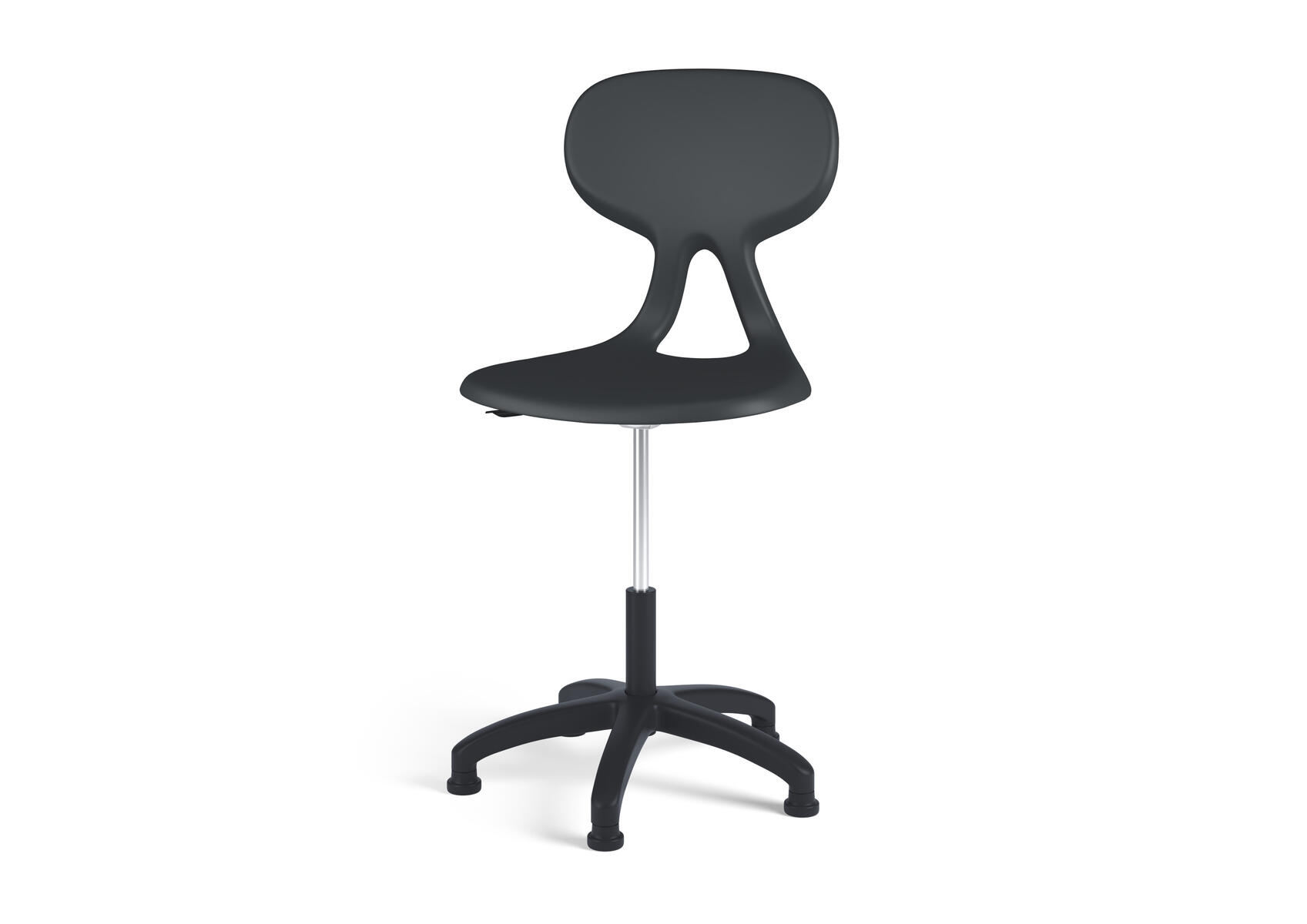 Det ergonomiska utförandet hjälper användaren till en bättre hållning och ger ett flexibelt stöd för ryggen. Lätt att rengöra. Skal i polyuretan. Svart nylonkryss med glidfötter. Mått: Sitthöjd 50-70 cm. Sitsbredd 38 cm. Sitsdjup 34 cm.
