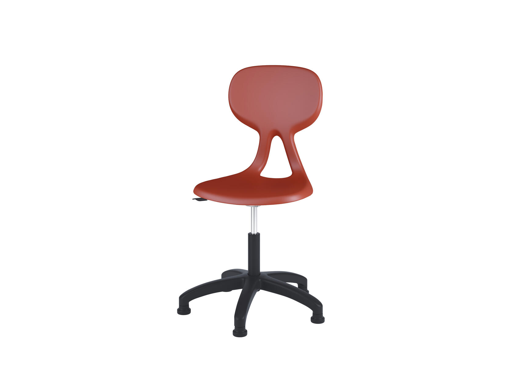 Det ergonomiska utförandet hjälper användaren till en bättre hållning och ger ett flexibelt stöd för ryggen. Lätt att rengöra. Skal i polyuretan. Svart nylonkryss med glidfötter. Mått: Sitthöjd 38-50 cm. Sitsbredd 38 cm. Sitsdjup 34 cm.
