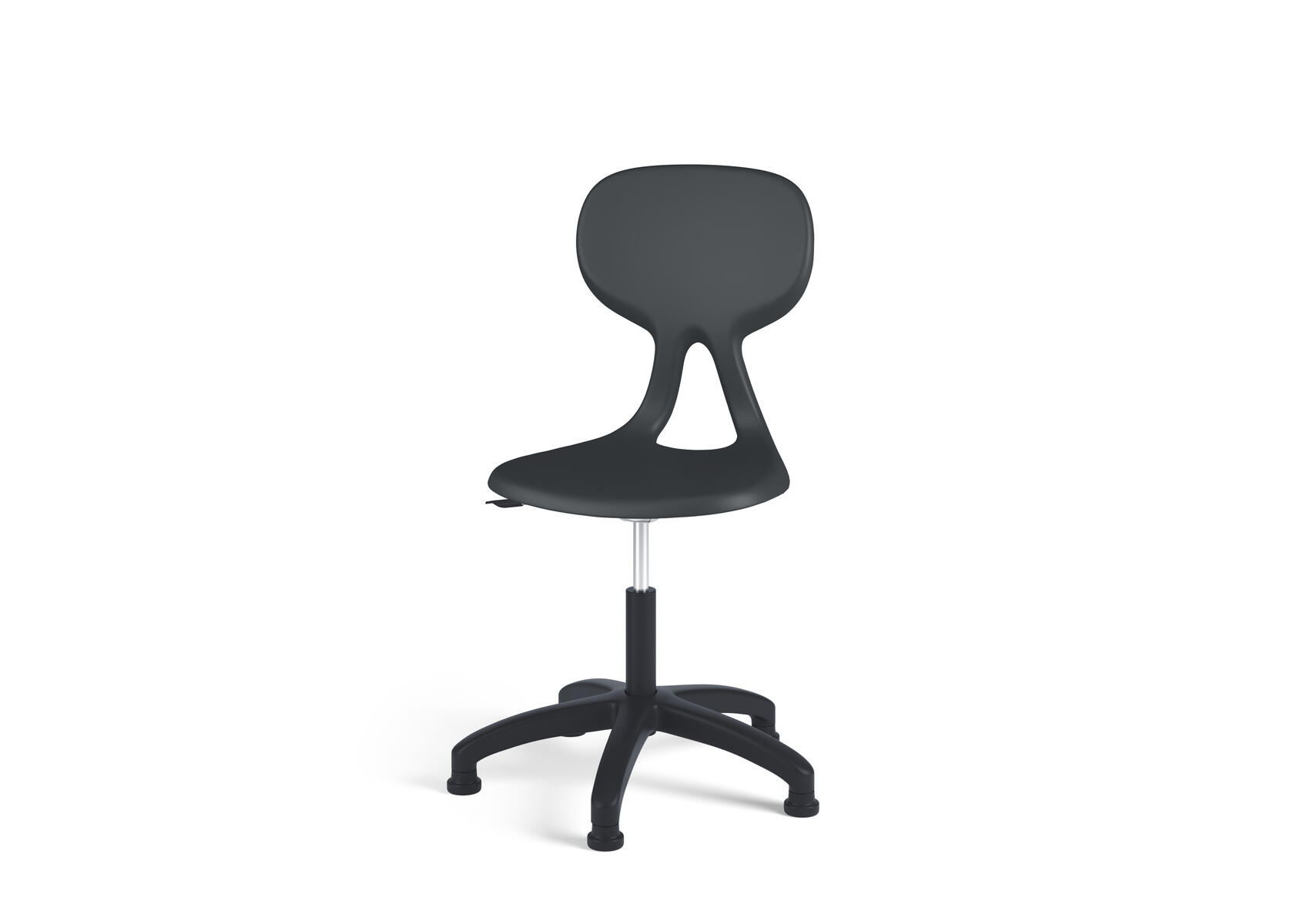 Det ergonomiska utförandet hjälper användaren till en bättre hållning och ger ett flexibelt stöd för ryggen. Lätt att rengöra. Skal i polyuretan. Svart nylonkryss med glidfötter. Mått: Sitthöjd 50-70 cm. Sitsbredd 38 cm. Sitsdjup 34 cm.