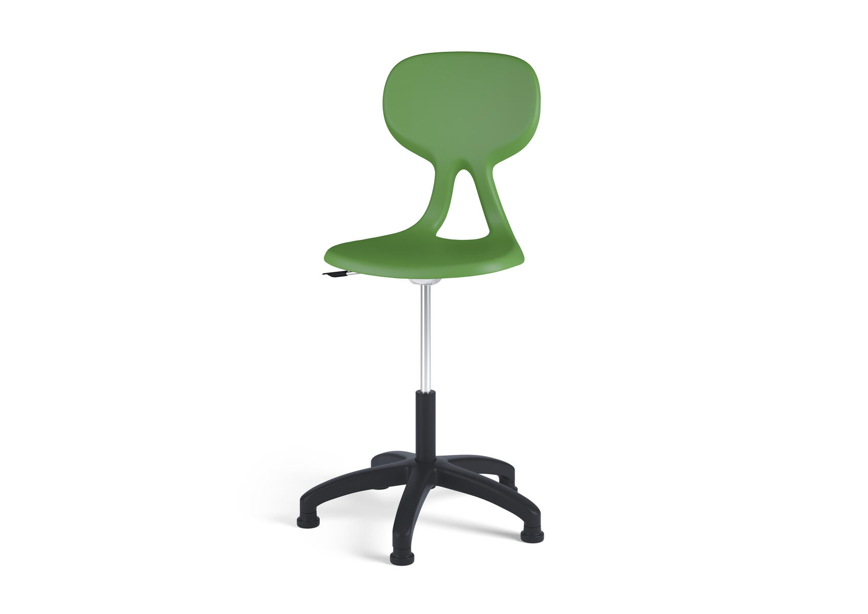 Det ergonomiska utförandet hjälper användaren till en bättre hållning och ger ett flexibelt stöd för ryggen. Lätt att rengöra. Skal i polyuretan. Svart nylonkryss med glidfötter. Mått: Sitthöjd 38-50 cm. Sitsbredd 38 cm. Sitsdjup 34 cm.