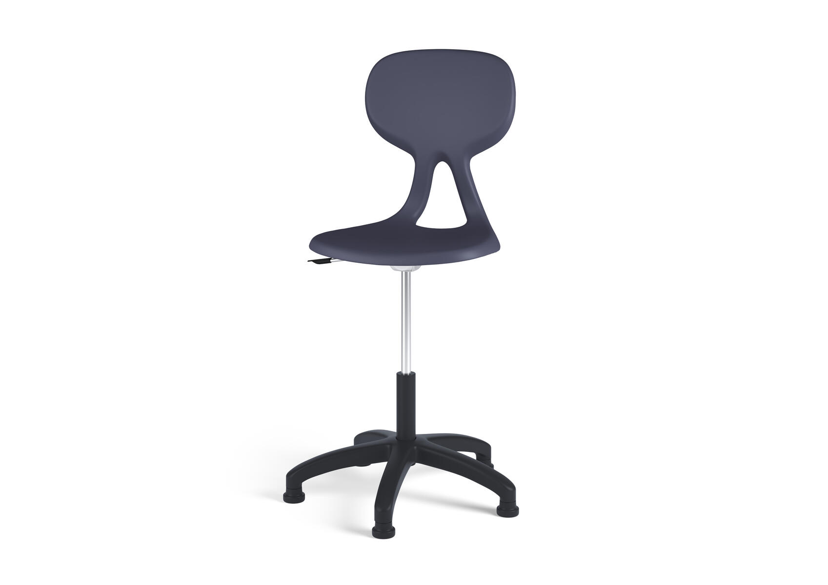 Det ergonomiska utförandet hjälper användaren till en bättre hållning och ger ett flexibelt stöd för ryggen. Lätt att rengöra. Skal i polyuretan. Svart nylonkryss med glidfötter. Mått: Sitthöjd 50-70. Sitsbredd 44 cm. Sitsdjup 40 cm.