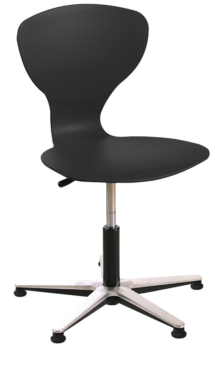 Mycket hållbar och ergonomiskt korrekt stol. Skalet sluttar något framåt och elasticiteten stöder alla kroppsrörelser. Moviflexmekanismen gör att man kan vippa på sitsen åt alla håll, vilket uppmuntrar ett aktivt sittande. Skal i polyuretan. Svart nylonkryss med glidfötter.