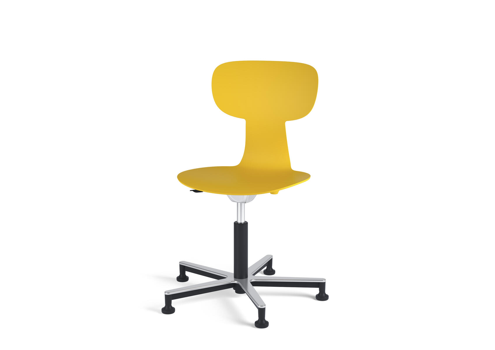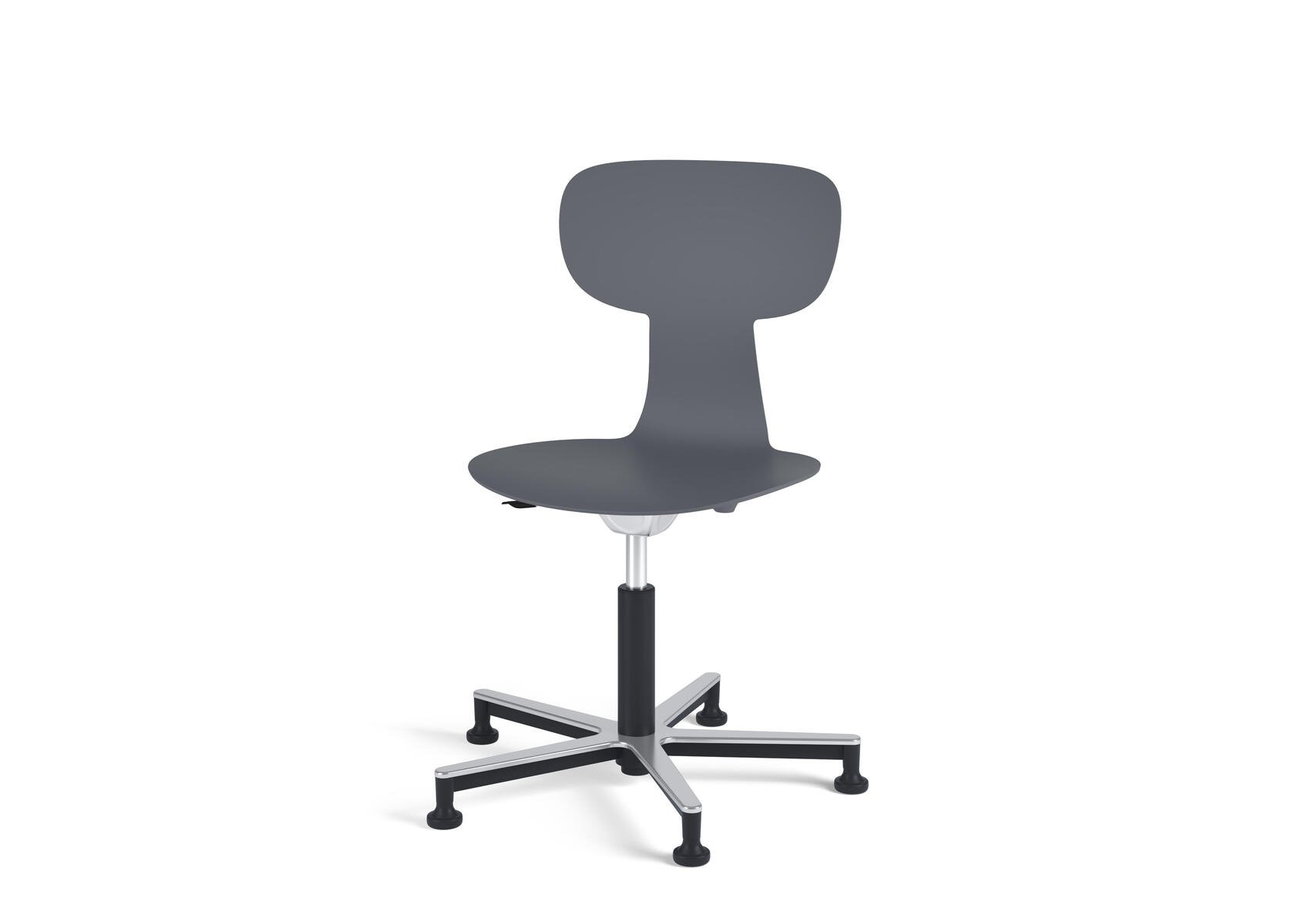 Stol Take med ett högt 5-krysstativ på hjul lackerat i RAL 9003. Sitthöjd justeras med gasfjäder i intervallerna 46-57. Plastskalet ger ett flexibelt stöd för ryggen. Lätt att rengöra. Skal i polyuretan.
