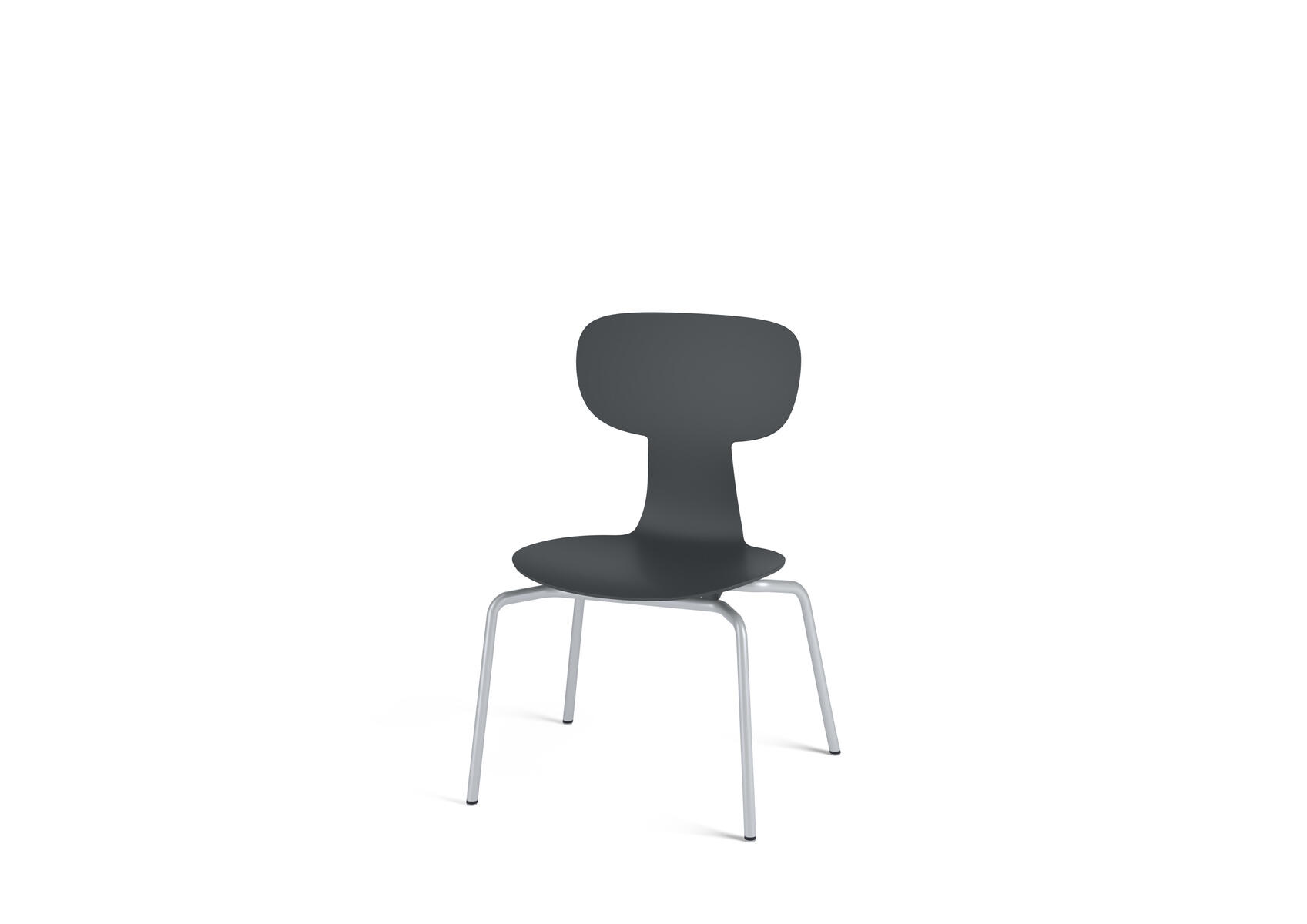 Stol som ger ett flexibelt stöd för ryggen. Stapelbar och upphängningsbar när man vänder den upp och ner. Lätt att rengöra. Skal i polyuretan. Silverlackerat stativ RAL 9006.