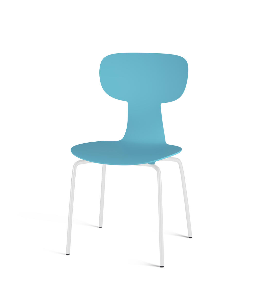 Stol som ger ett flexibelt stöd för ryggen. Stapelbar och upphängningsbar när man vänder den upp och ner. Lätt att rengöra. Skal i polyuretan. Vitlackerat stativ RAL 9003.