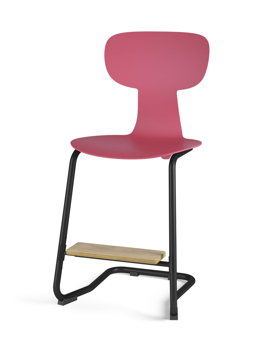 Stol som ger ett flexibelt stöd för ryggen. Lätt att rengöra. Skal i polyuretan. Svartlackerat stativ RAL 9005. Stapelbar upp till 4 stolar. Justerbart fotstöd.
