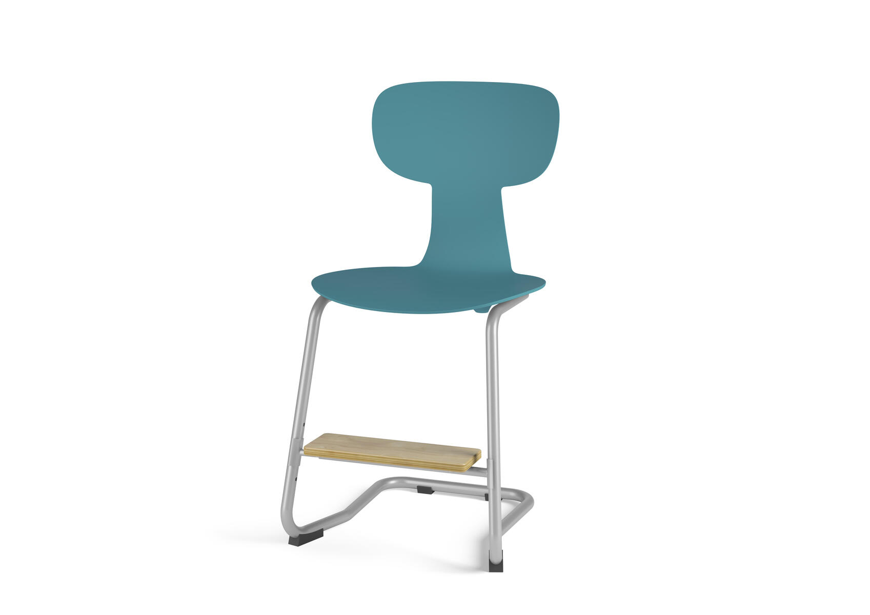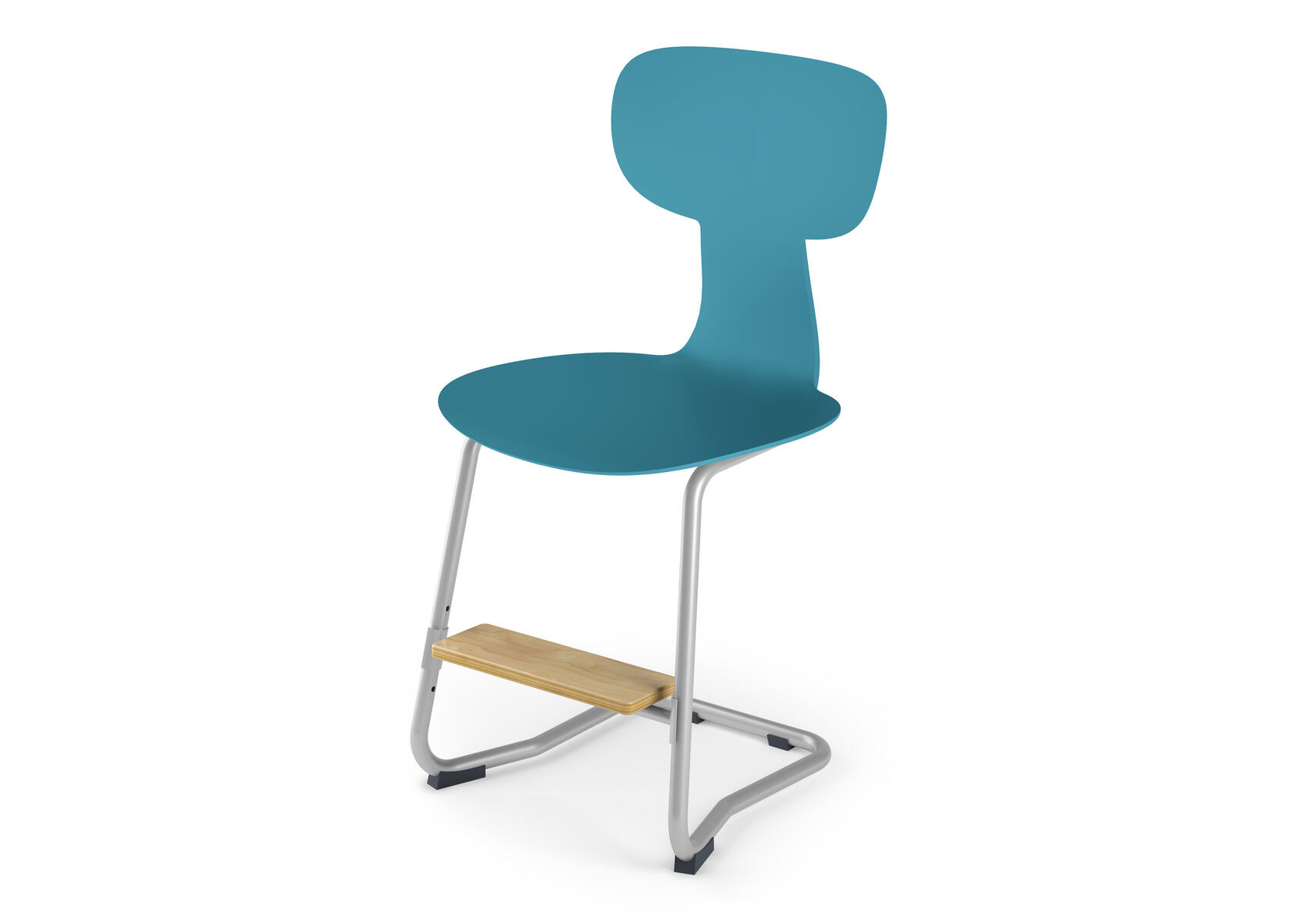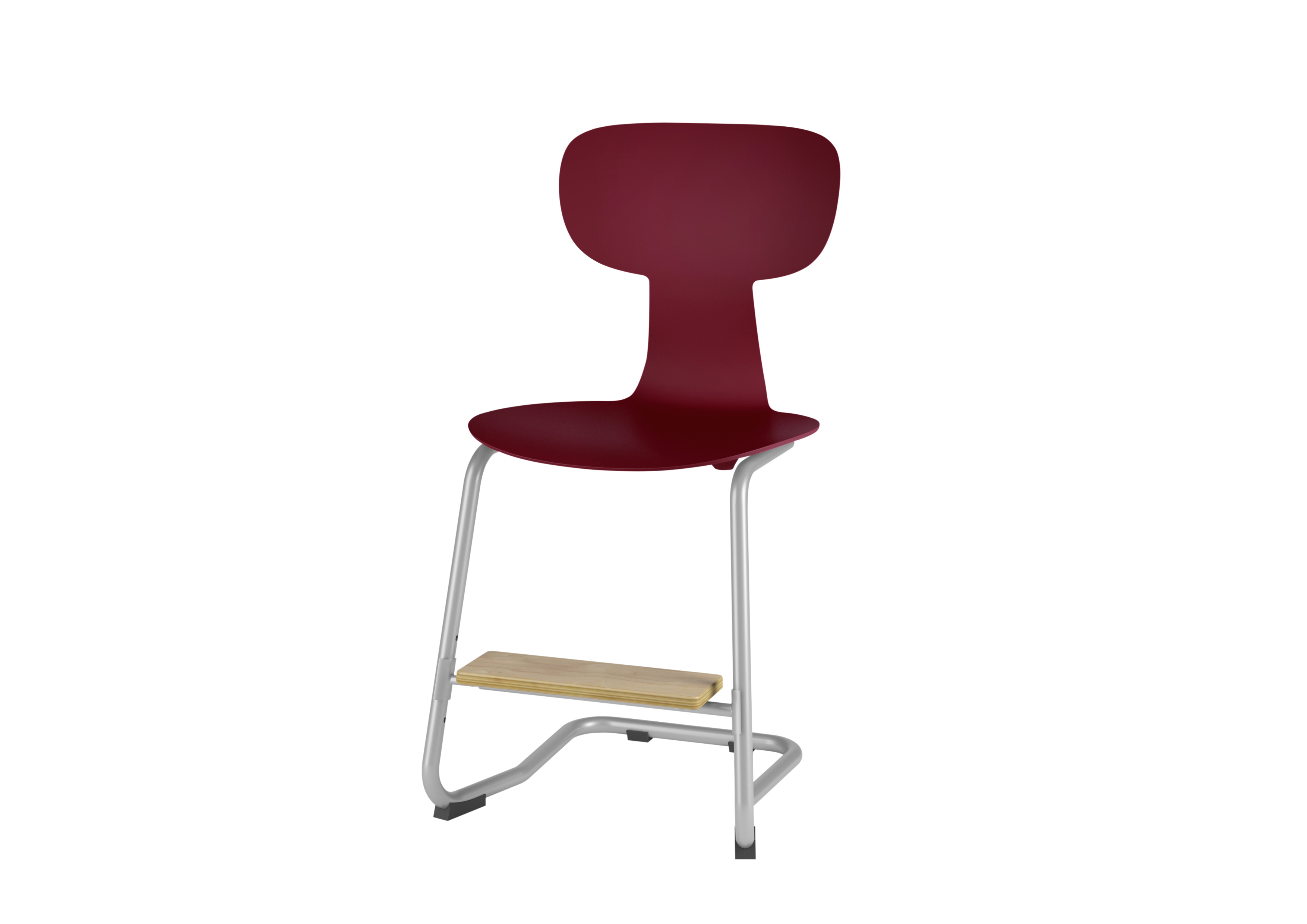 Stol som ger ett flexibelt stöd för ryggen. Lätt att rengöra. Skal i polyuretan. Silverlackerat stativ RAL 9006. Stapelbar upp till 4 stolar. Justerbart fotstöd.