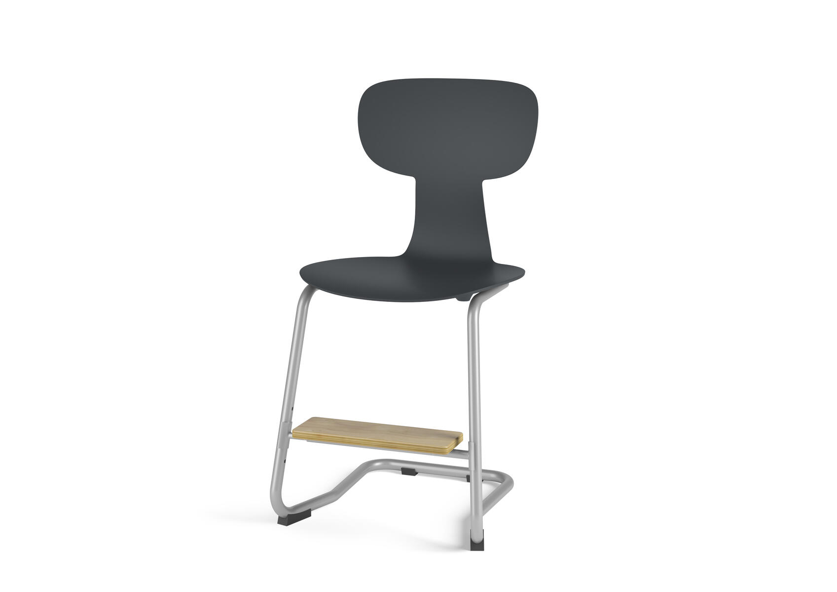 Stol som ger ett flexibelt stöd för ryggen. Lätt att rengöra. Skal i polyuretan. Svartlackerat stativ RAL 9005. Stapelbar upp till 4 stolar. Justerbart fotstöd.