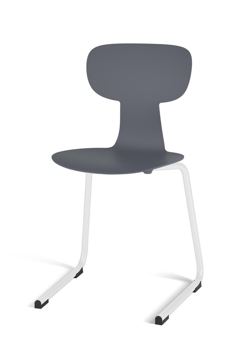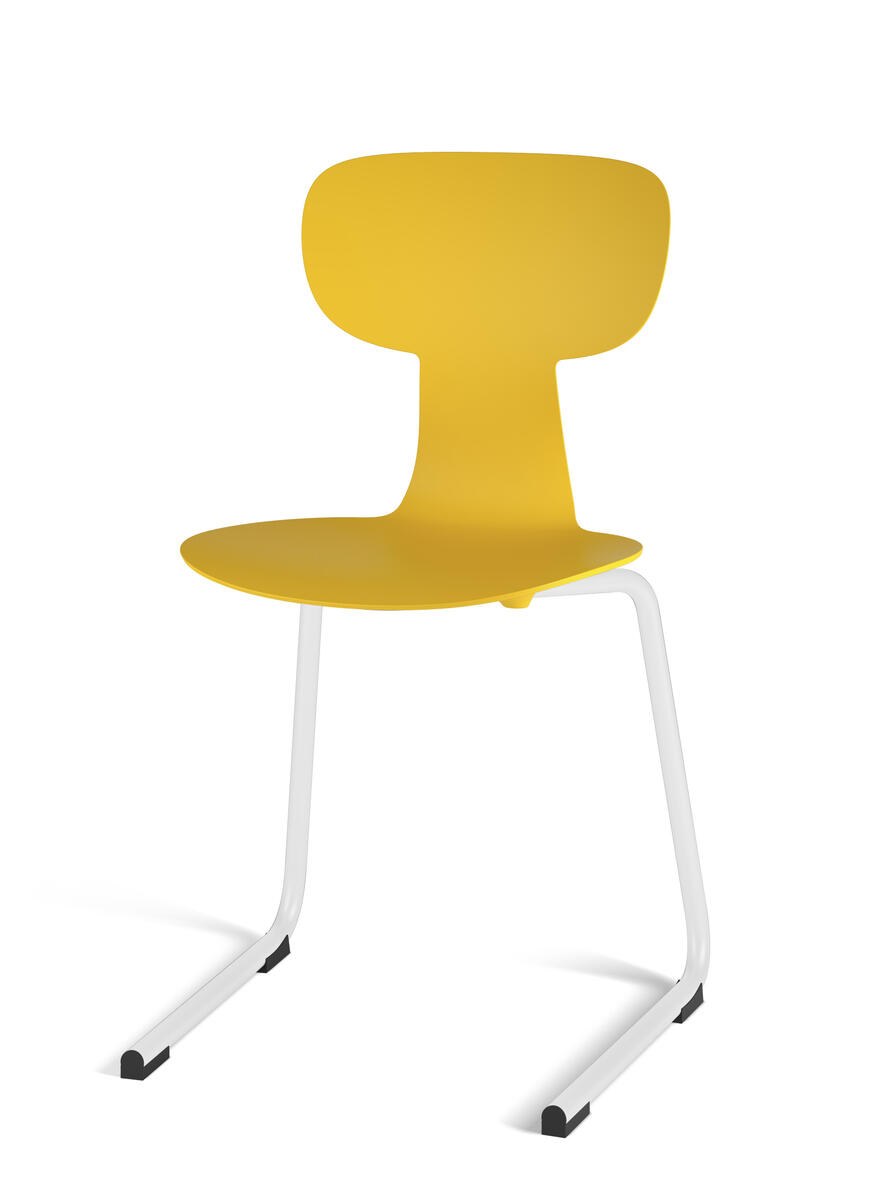 Stol som ger ett flexibelt stöd för ryggen. Stapelbar med max 4 stolar och stativet är utformat för att enkelt kunna hänga upp den. Lätt att rengöra. Skal i polyuretan. Vitlackerat stativ RAL 9003.