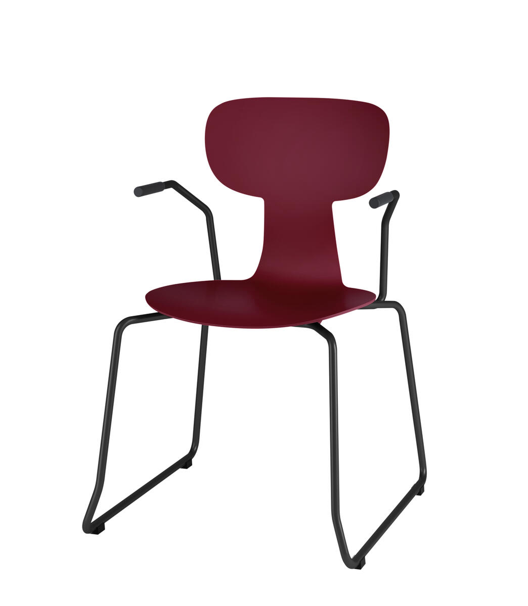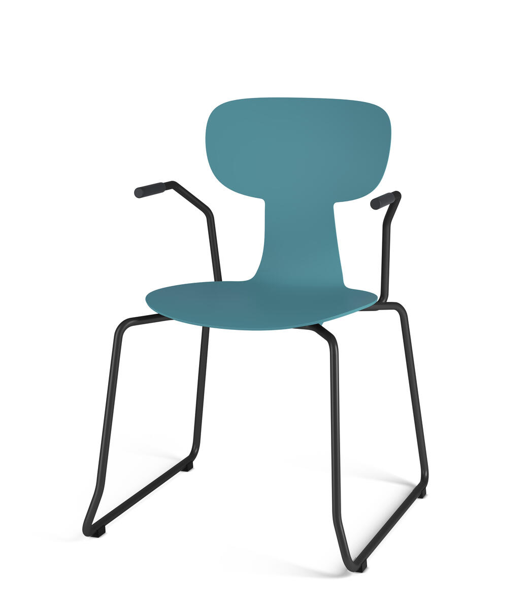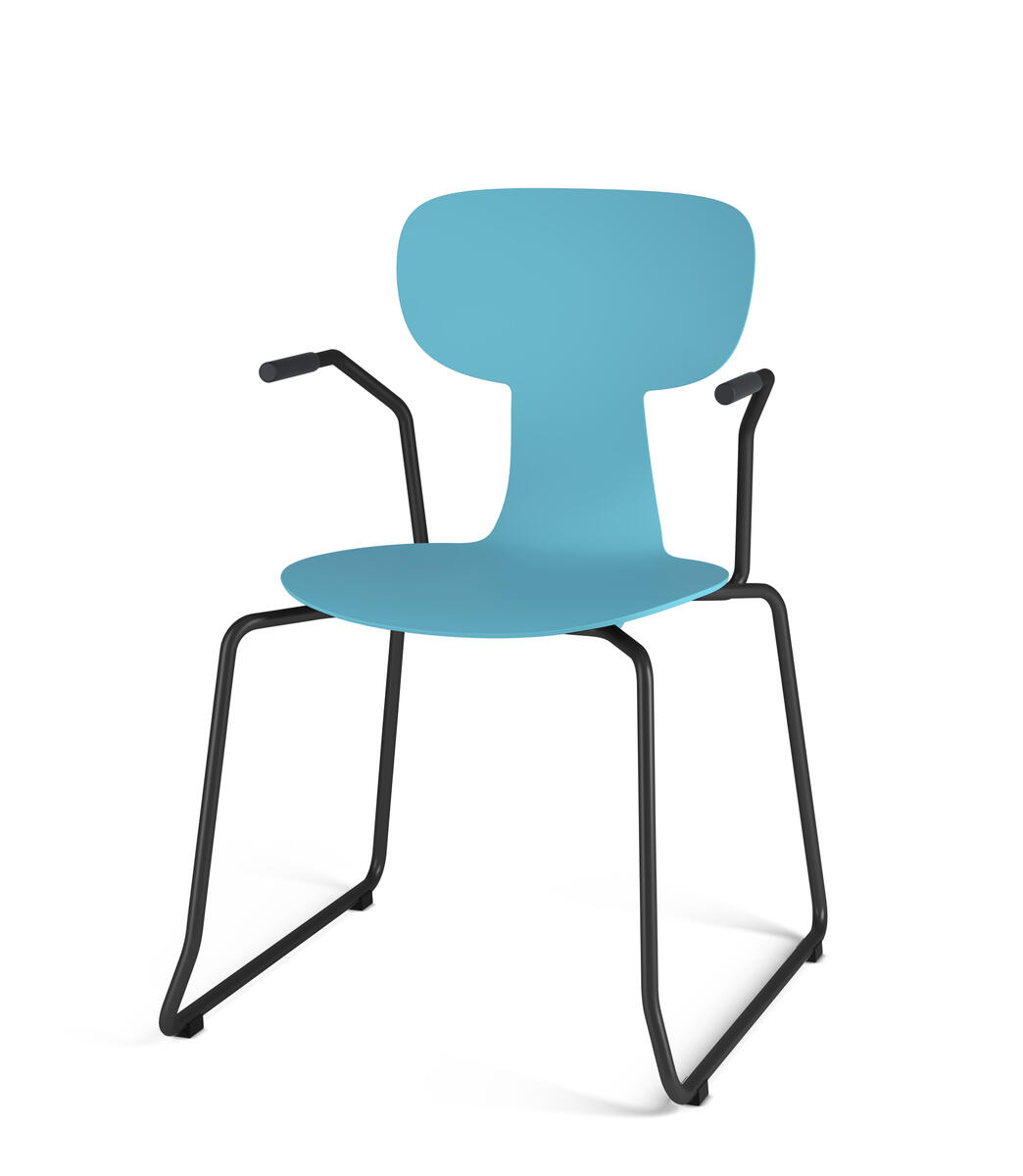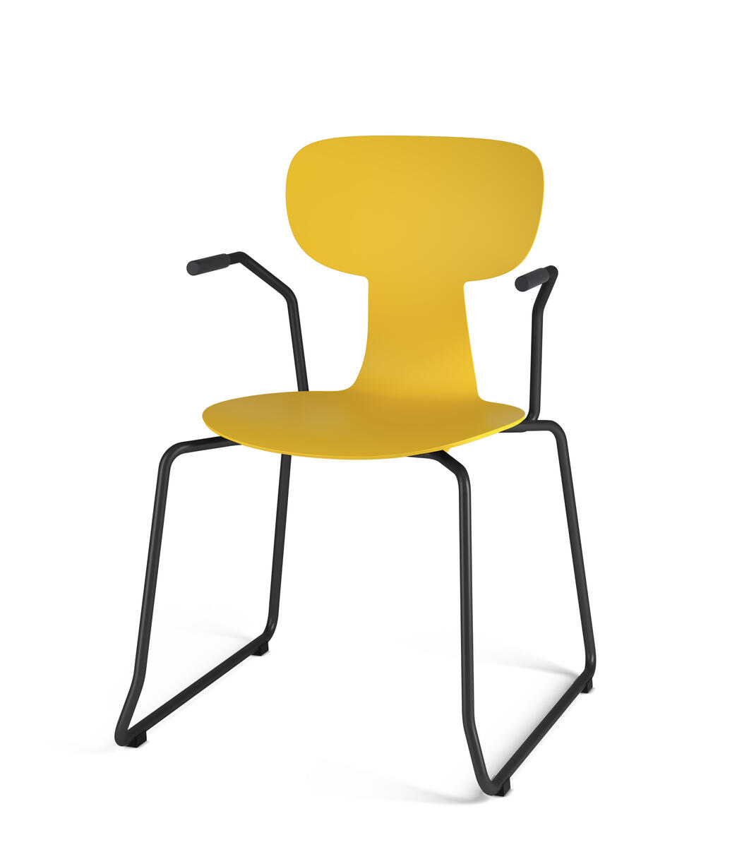 Stol som ger ett flexibelt stöd för ryggen. Medstativet ger en stabil stol. Köp till kopplingsbeslag (82529) för att koppla ihop flera stolar i rad. Stapelbar. Lätt att rengöra. Skal i polyuretan. Svartlackerat stativ RAL 9005.