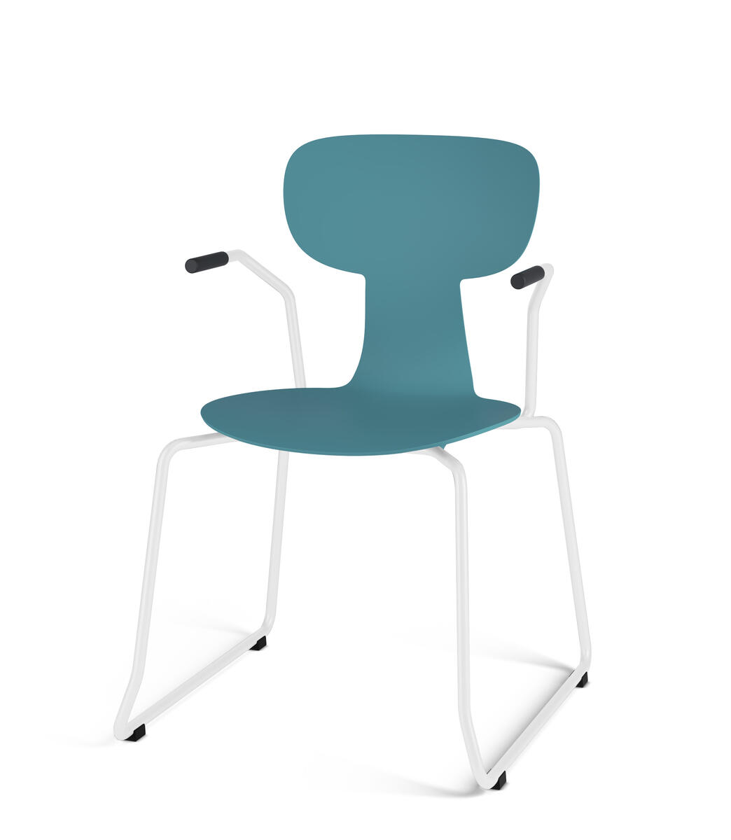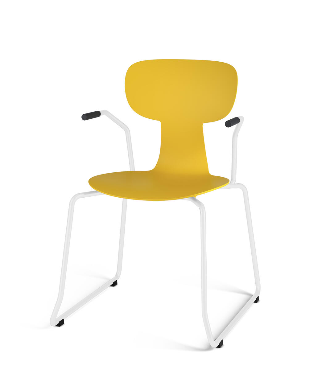 Stol som ger ett flexibelt stöd för ryggen. Medstativet ger en stabil stol. Köp till kopplingsbeslag (82529) för att koppla ihop flera stolar i rad. Stapelbar. Lätt att rengöra. Skal i polyuretan. Vitlackerat stativ RAL 9003.
