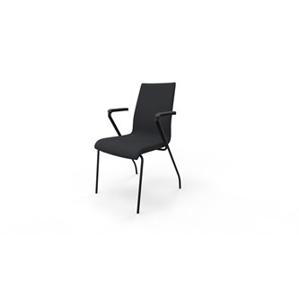 Stilren och funktionell stol med en quiltad, hög rygg och en sittdel av formpressad faner klädd med kallskum, vilket ger både komfort och stöd. Stabilt pulverlackat stativ av ø 19 mm rör med filtbelagda möbeltassar för att skydda golvet. Stolen är stapelbar, max 5 i höjd. Armstöd som tillval.