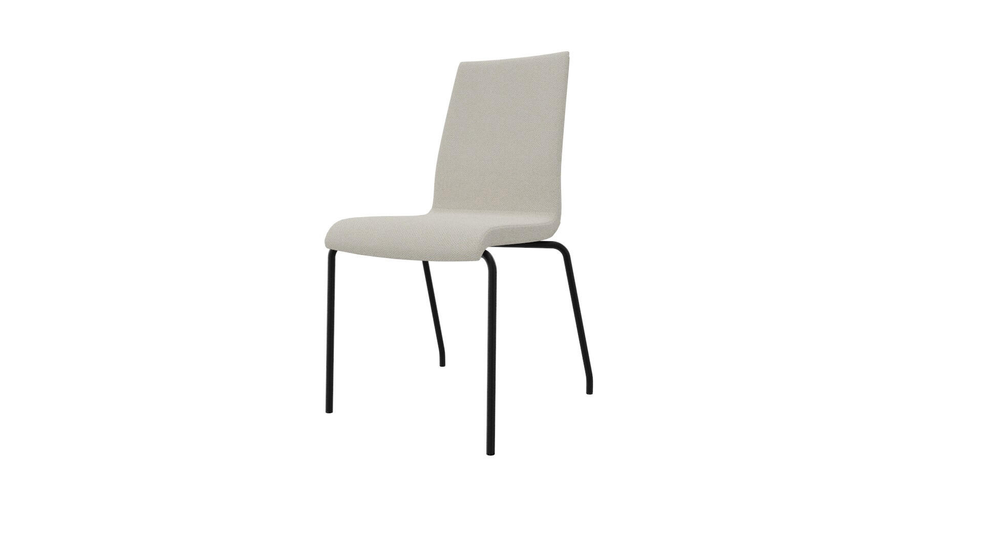 Stilren och funktionell stol med en quiltad, medelhög rygg och en sittdel av formpressad faner klädd med kallskum, vilket ger både komfort och stöd. Stabilt pulverlackat stativ av ø 19 mm rör med filtbelagda möbeltassar för att skydda golvet. Stolen är stapelbar, max 5 i höjd. Armstöd som tillval.