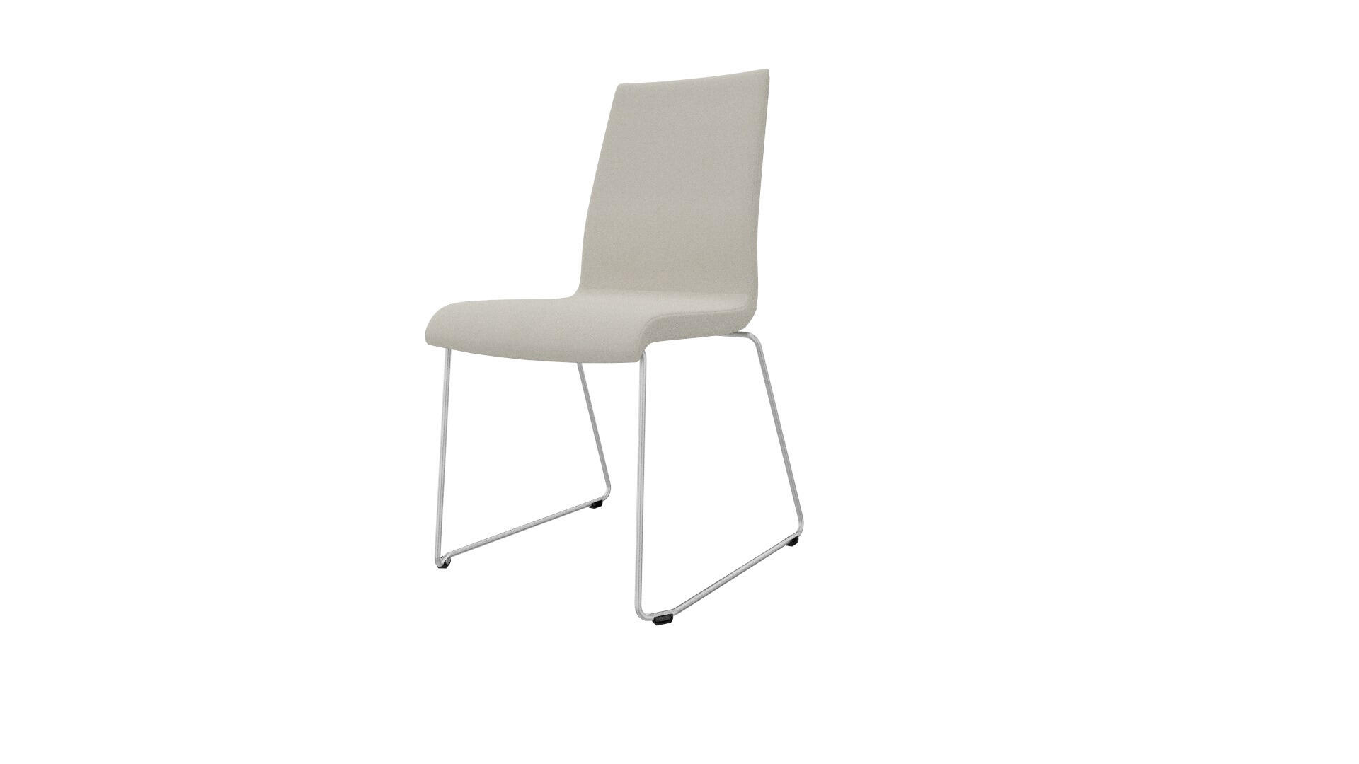 Stilren och funktionell stol med en quiltad, medelhög rygg och en sittdel av formpressad faner klädd med kallskum, vilket ger både komfort och stöd. Stabilt pulverlackat stativ av ø 19 mm rör med filtbelagda möbeltassar för att skydda golvet. Stolen är stapelbar, max 5 i höjd. Armstöd som tillval.