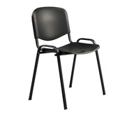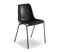 Plaststol till skolans alla utrymmen. Stapelbar. Svart plast och stativ. Sitthöjd: 45 cm. Sitsmått: 50x50 cm. Låg vikt, endast 2,5 kg. Sits och rygg i slitstark polypropen.