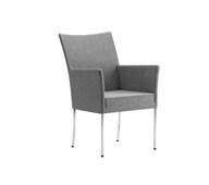 Ergonomiskt, stoppat ryggstöd stöder rygg och armar och den breda sitsen säkerställer komfort. Trästomme och stoppning i kallskum. Pulverlackat metallstativ.