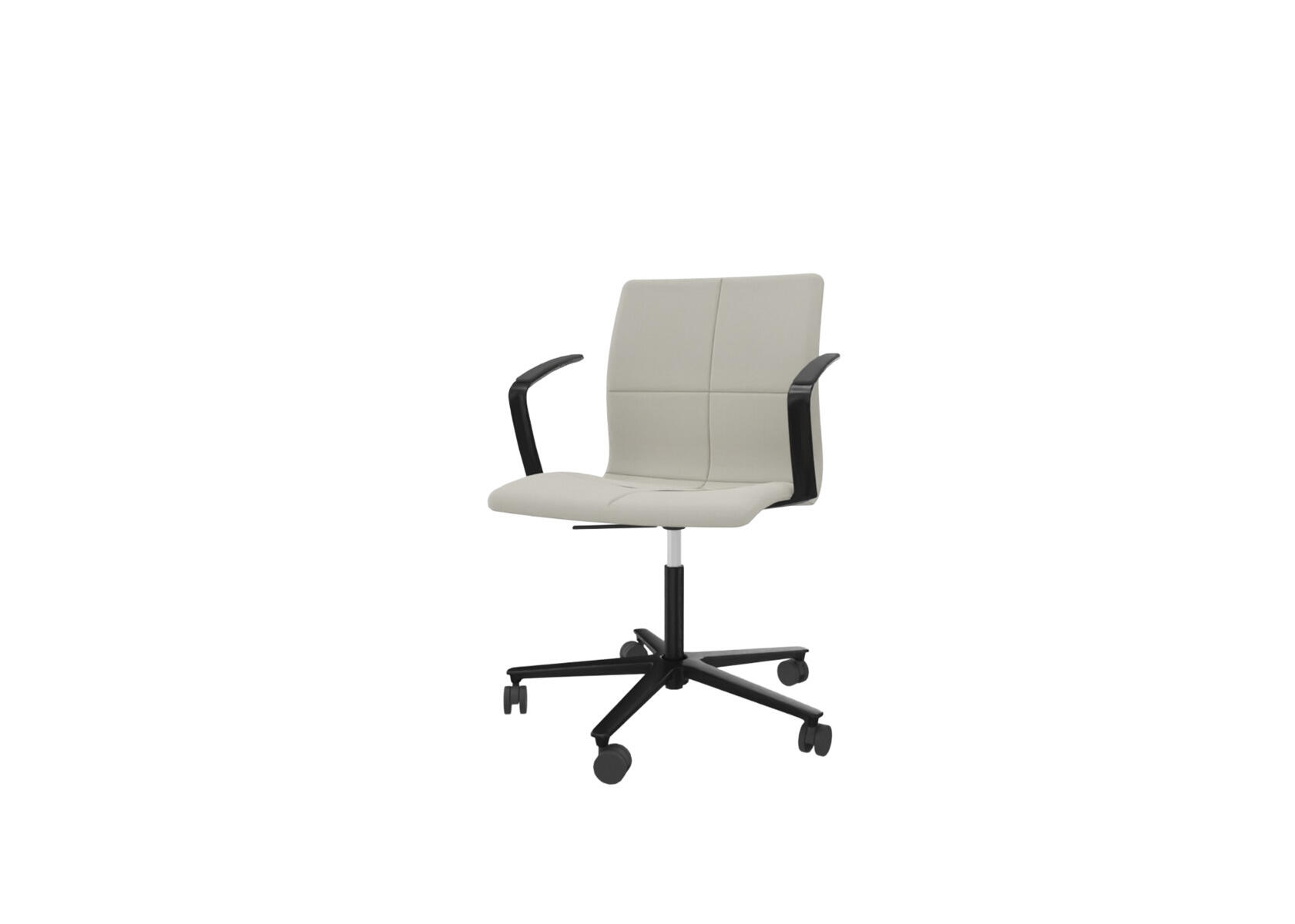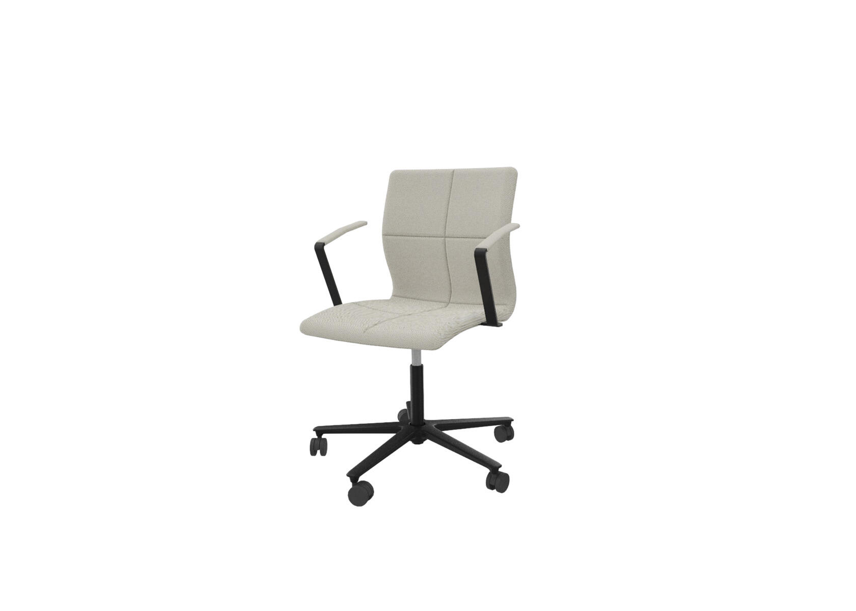 En tidlös, ergonomisk och bekväm stol med en quiltad, låg rygg och en sittdel av formpressad faner klädd med kallskum, vilket ger både komfort och stöd. Tiltmekanism 7° bakåt, 4° framåt. Svart metallkryss med 5 hårda hjul för mjuka golv. Armstöd som tillval.