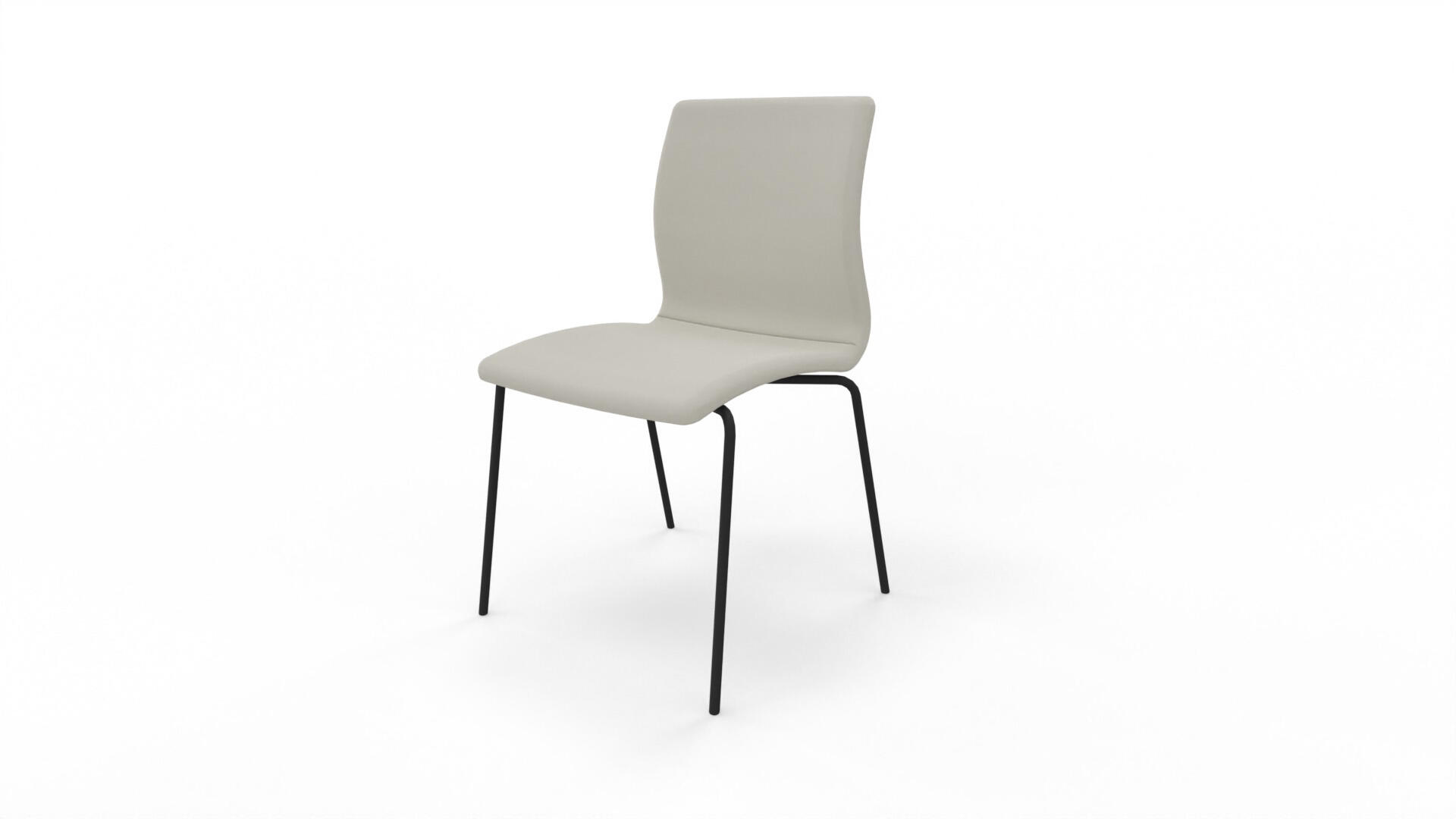 Stilren och funktionell stol med en slät, medelhög rygg och en sittdel av formpressad faner klädd med kallskum, vilket ger både komfort och stöd. Stabilt pulverlackat stativ av ø 19 mm rör med filtbelagda möbeltassar för att skydda golvet. Stolen är stapelbar, max 5 i höjd. Armstöd som tillval.