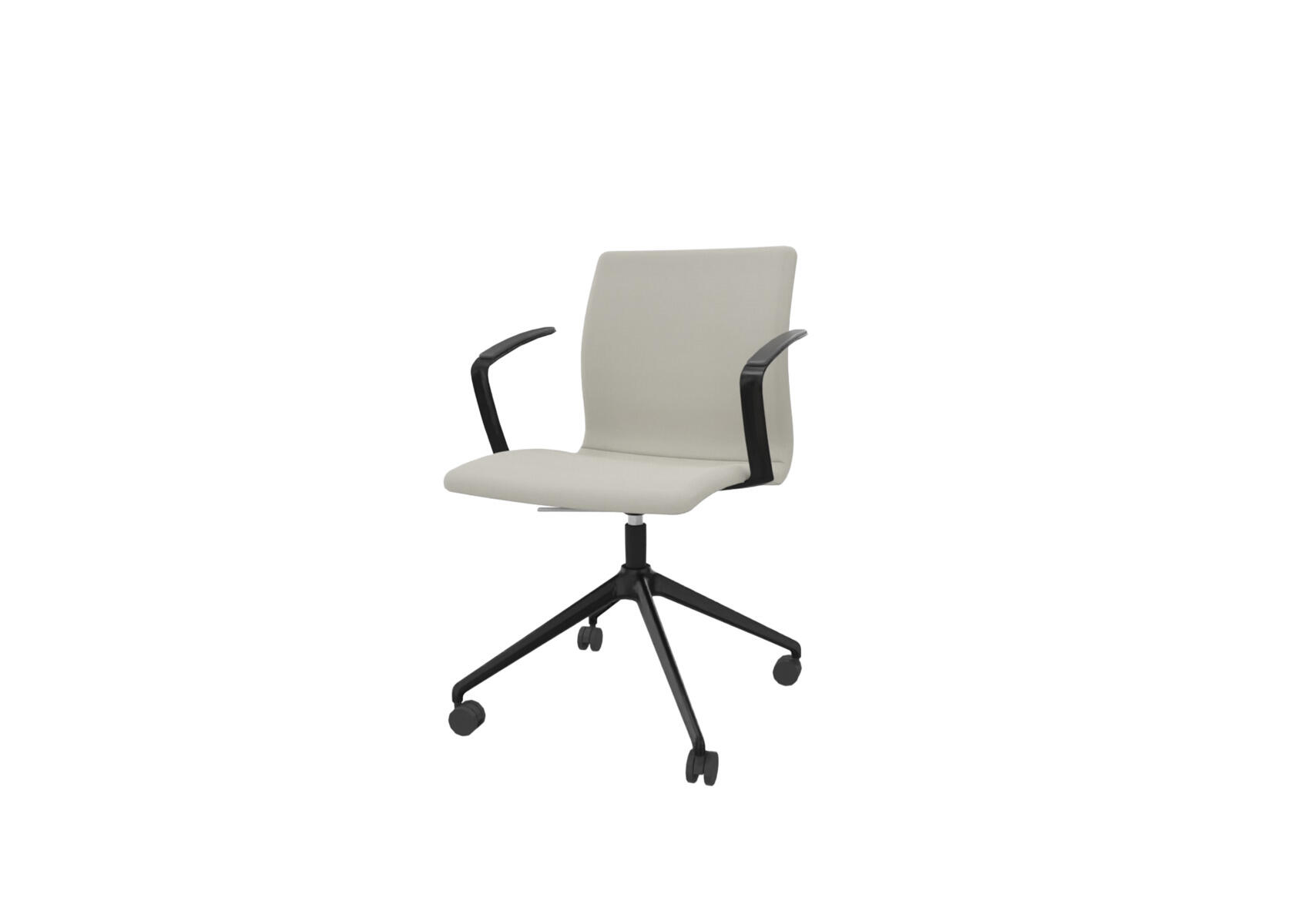 En tidlös, ergonomisk och bekväm stol med en slät, låg rygg och en sittdel av formpressad faner klädd med kallskum, vilket ger både komfort och stöd. Tiltmekanism 7° bakåt, 4° framåt. Svart metallkryss med 4 hårda hjul för mjuka golv. Armstöd som tillval.