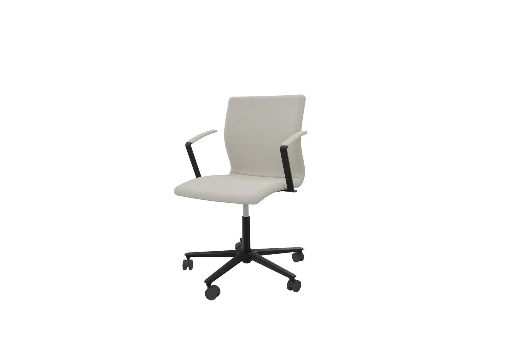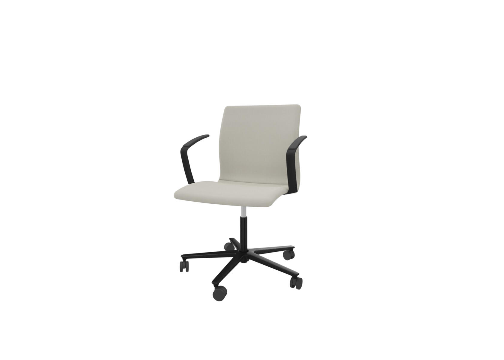 En tidlös, ergonomisk och bekväm stol med en slät, låg rygg och en sittdel av formpressad faner klädd med kallskum, vilket ger både komfort och stöd. Tiltmekanism 7° bakåt, 4° framåt. Svart metallkryss med 5 hårda hjul för mjuka golv. Armstöd som tillval.
