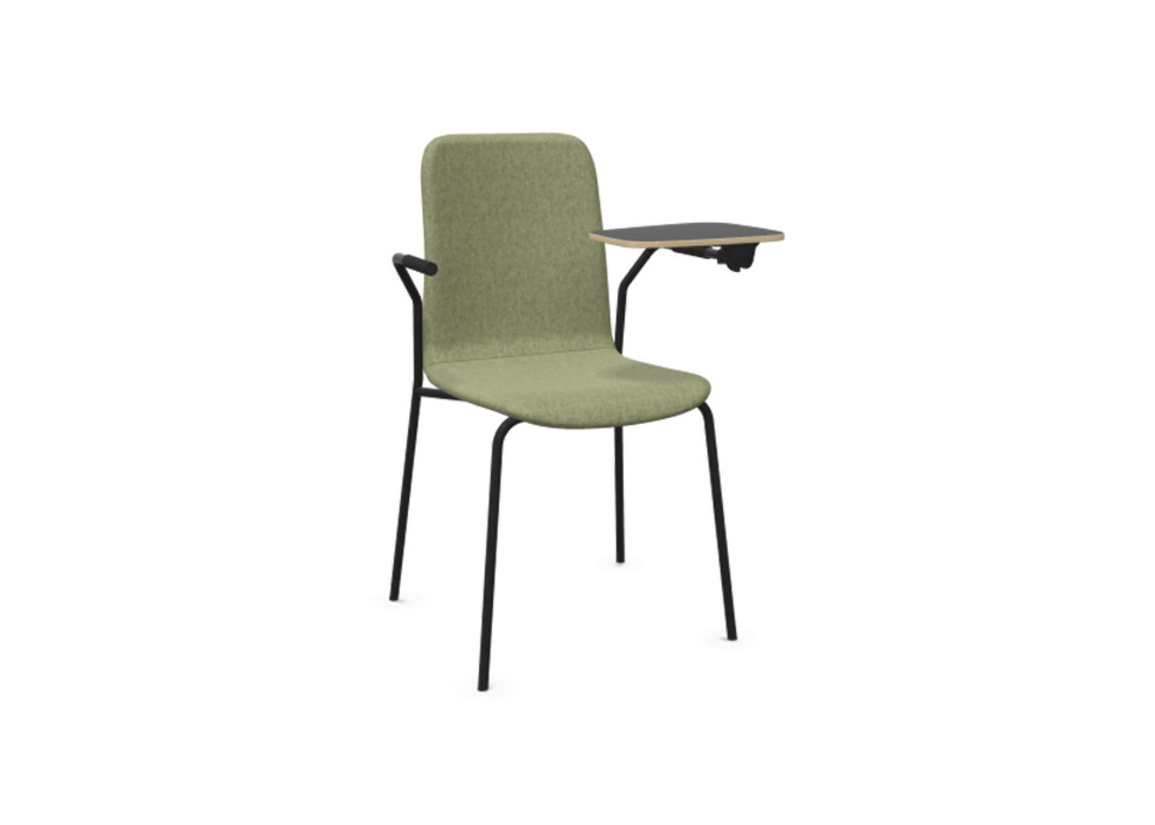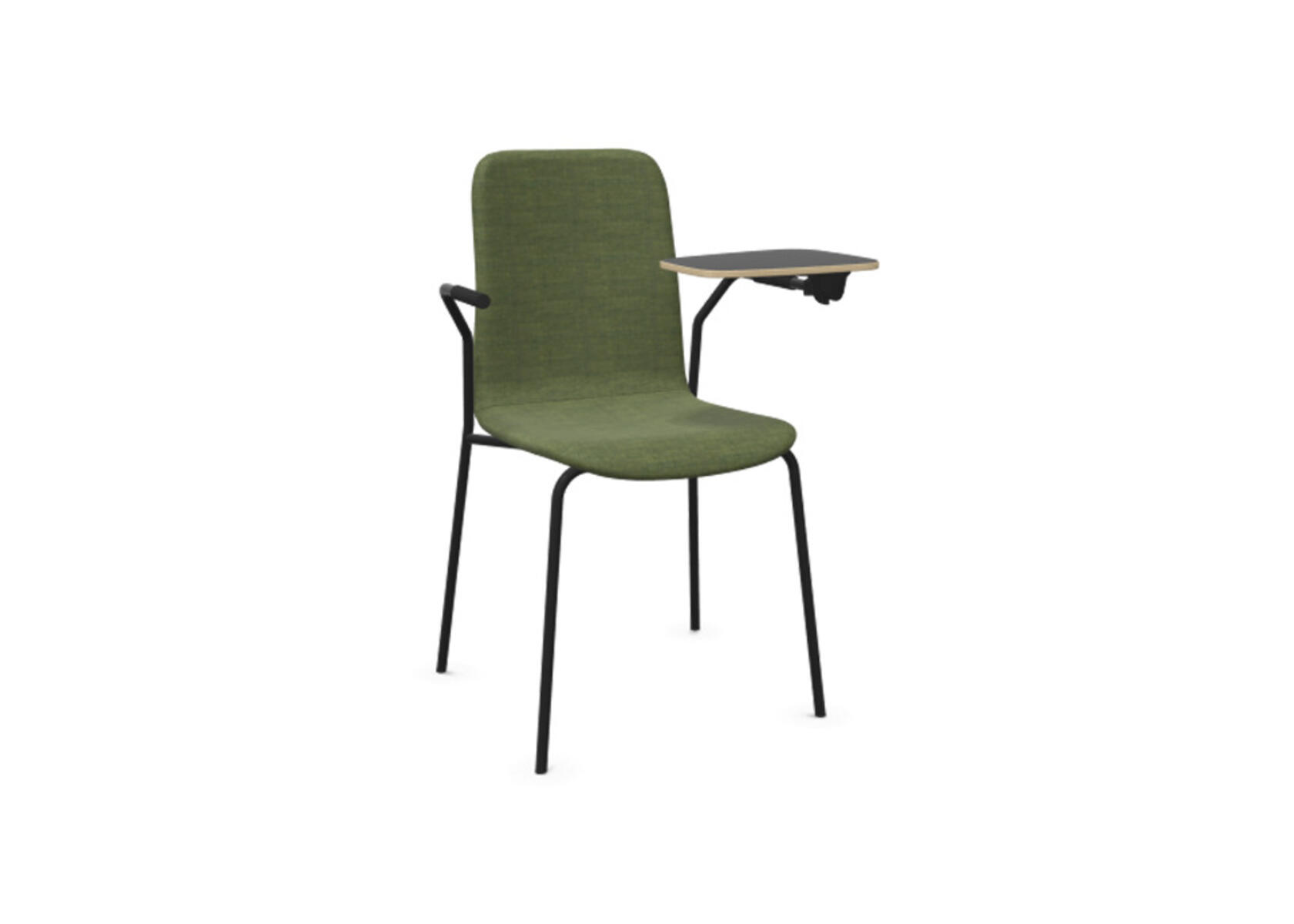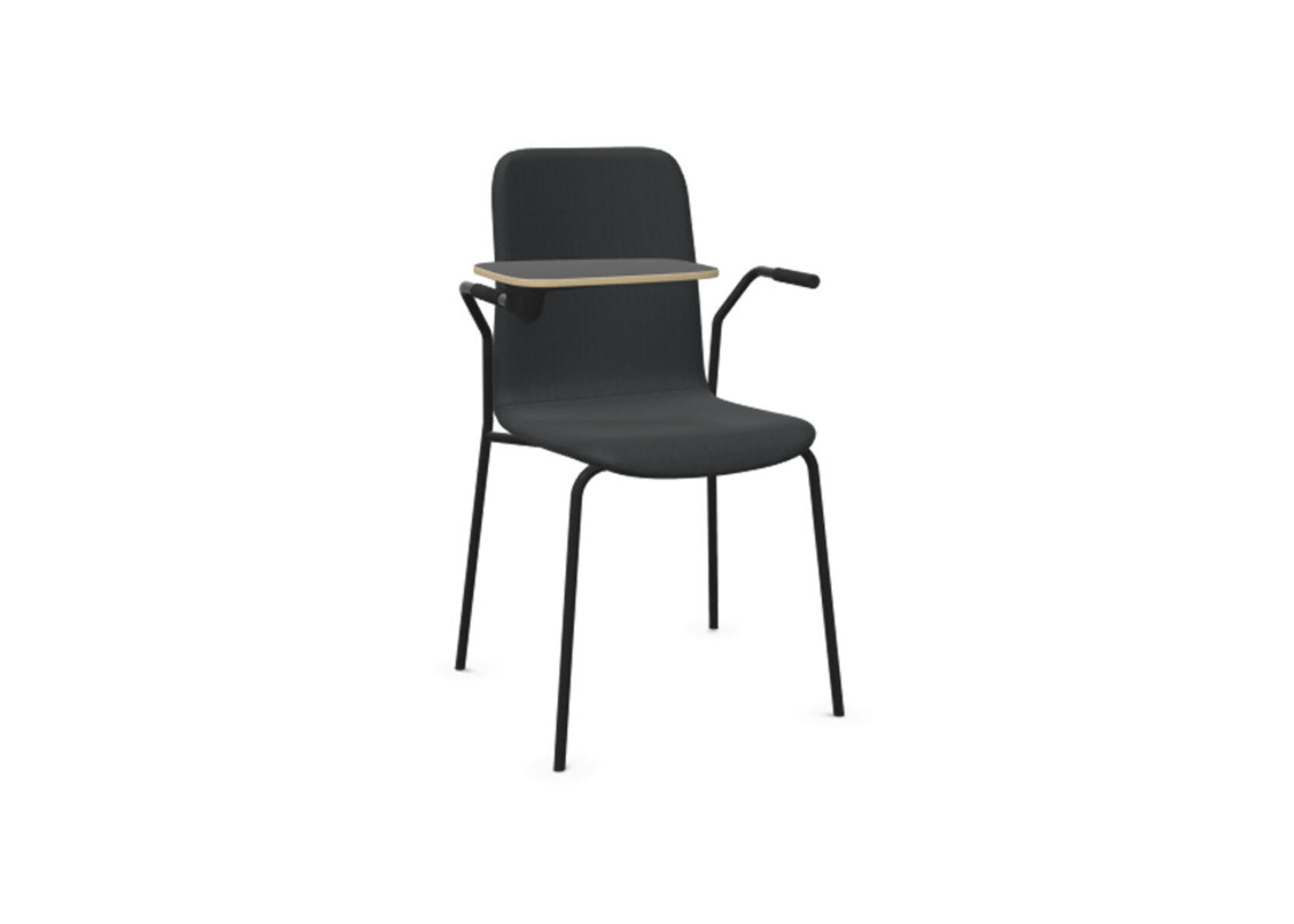 Sittskal i formpressad plywood belagd med högtryckslaminat. Stabilt pulverlackat stativ av ø 18 mm rör med möbeltassar för att skydda golvet. Skrivskiva i plywood belagd med laminat, tjocklek skrivskiva 10,5 mm. För ännu större flexibilitet finns kopplingsbeslag samt radkopplingsbeslag (säljs separat) som gör det enkelt att skapa rader eller gruppsittningar. Maxvikt 110 kg. Stolen är ej stapelbar.