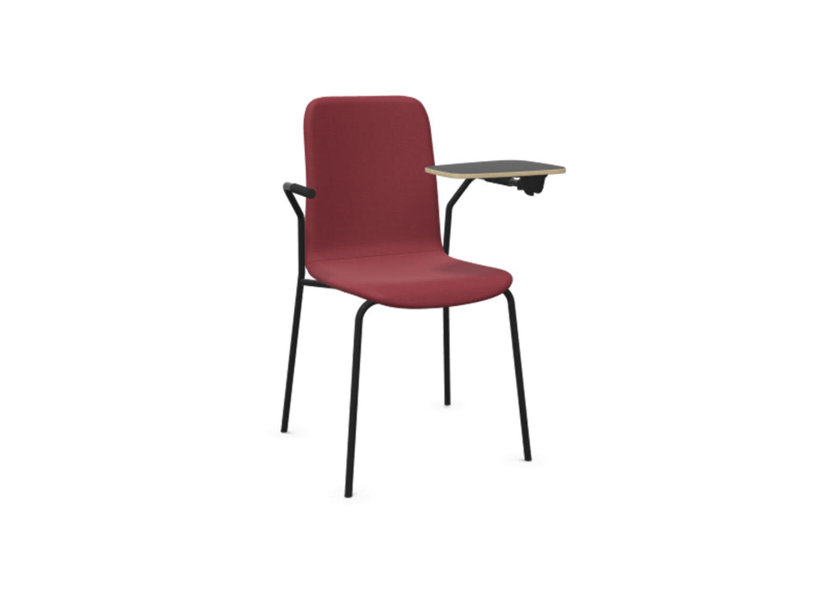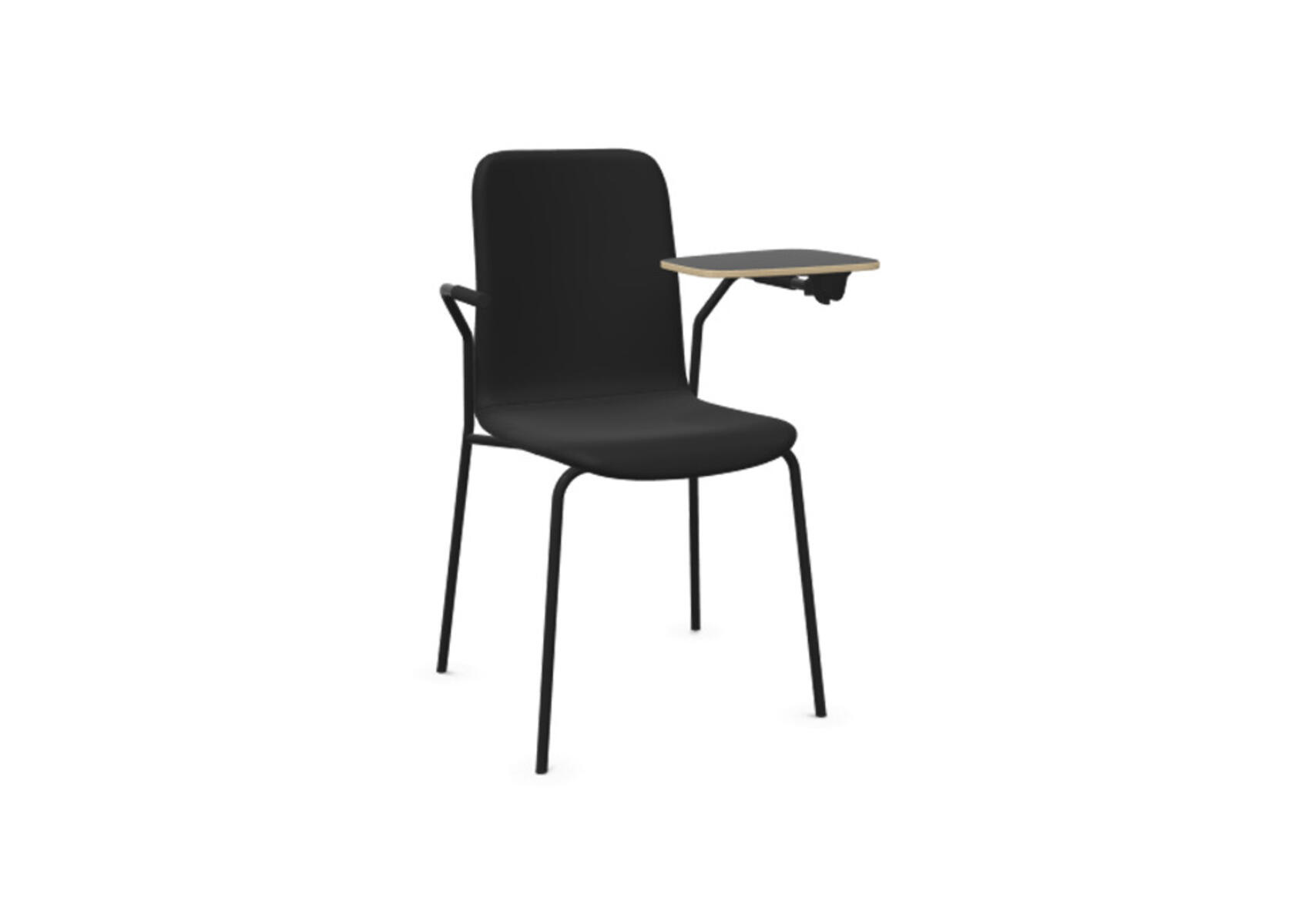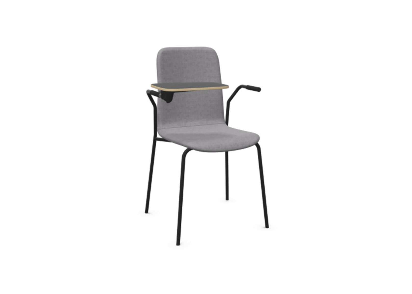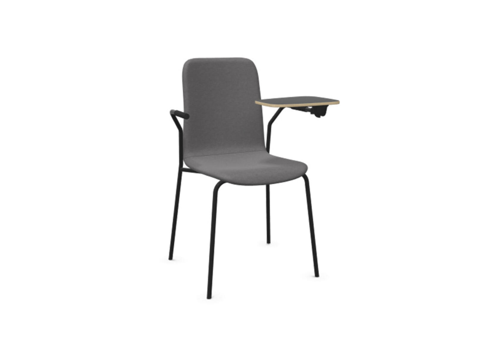 Sittskal i formpressad plywood klädd med kallskum, vilket ger både komfort och stöd. Stabilt pulverlackat stativ av ø 18 mm rör med möbeltassar för att skydda golvet. Skrivskiva i plywood belagd med laminat, tjocklek skrivskiva 10,5 mm. För ännu större flexibilitet finns kopplingsbeslag samt radkopplingsbeslag (säljs separat) som gör det enkelt att skapa rader eller gruppsittningar. Maxvikt 110 kg. Stolen är ej stapelbar.
