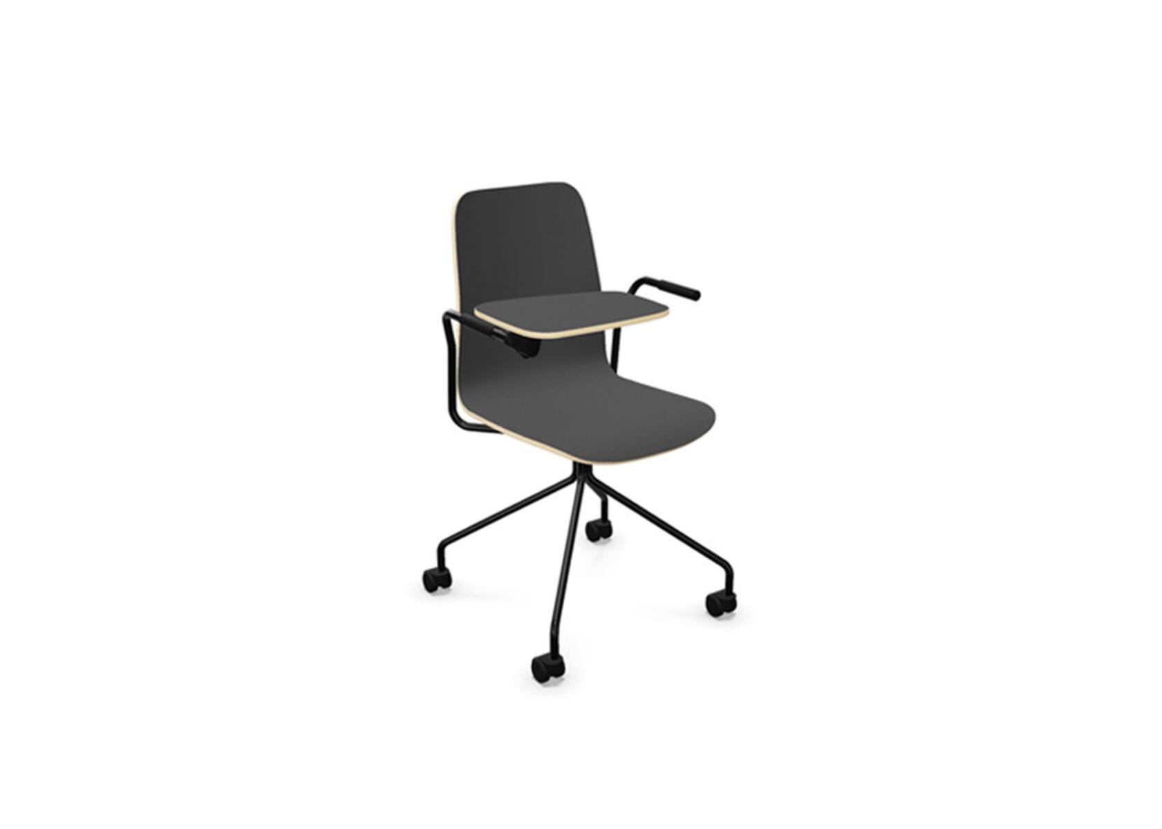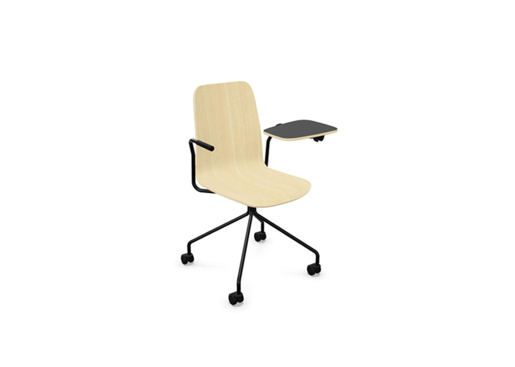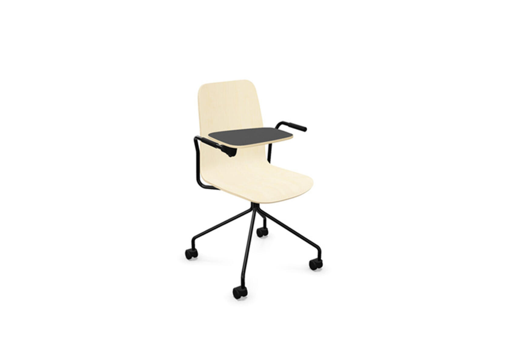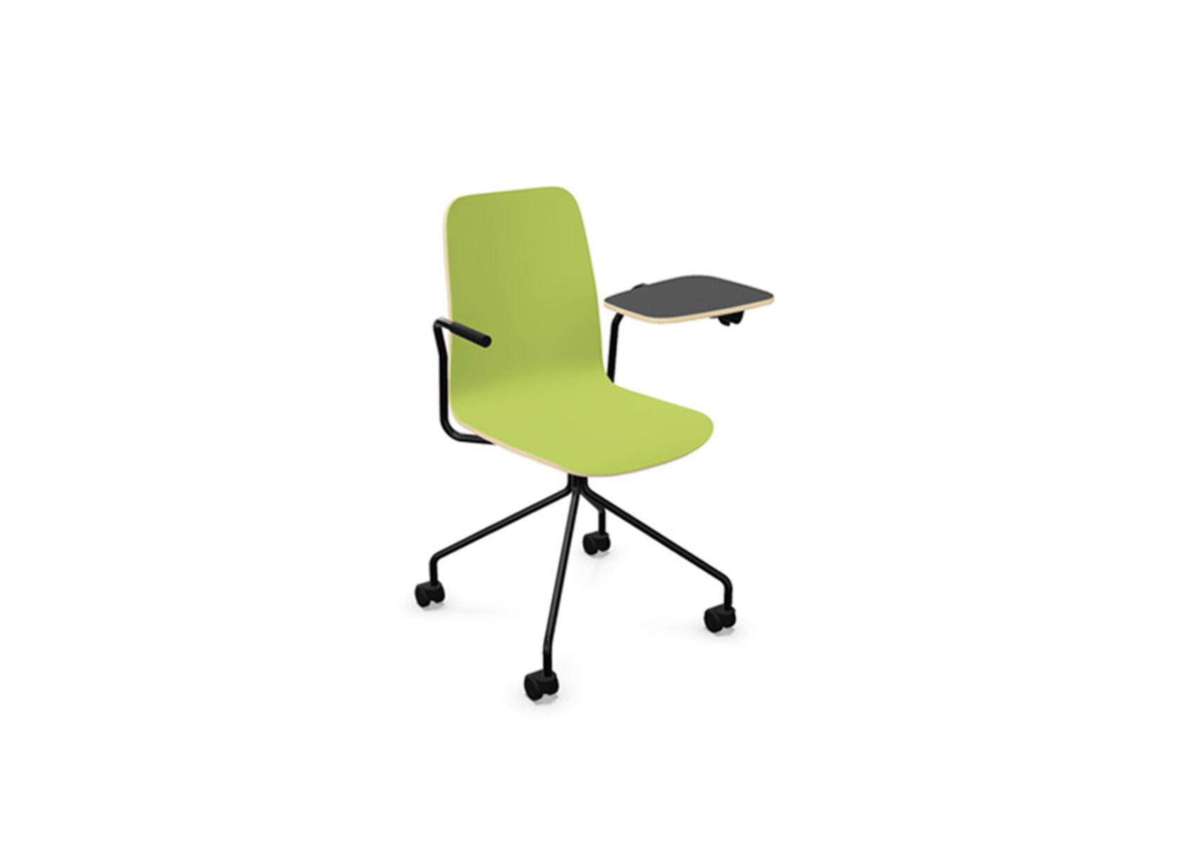 Sittskal i formpressad plywood belagd med högtryckslaminat. Stabilt pulverlackat stativ av ø 18 mm rör med möbeltassar för att skydda golvet. Skrivskiva i plywood belagd med laminat, tjocklek skrivskiva 10,5 mm. För ännu större flexibilitet finns kopplingsbeslag samt radkopplingsbeslag (säljs separat) som gör det enkelt att skapa rader eller gruppsittningar. Maxvikt 110 kg. Stolen är ej stapelbar.