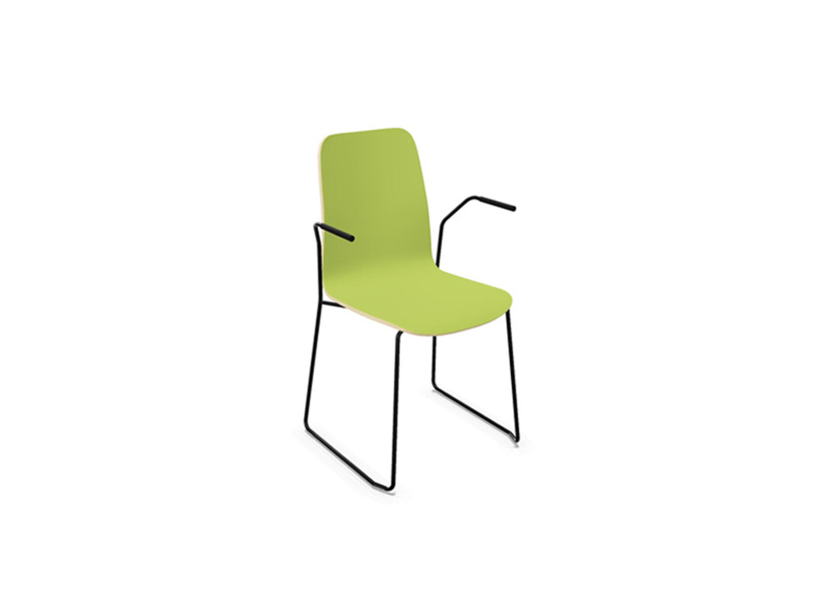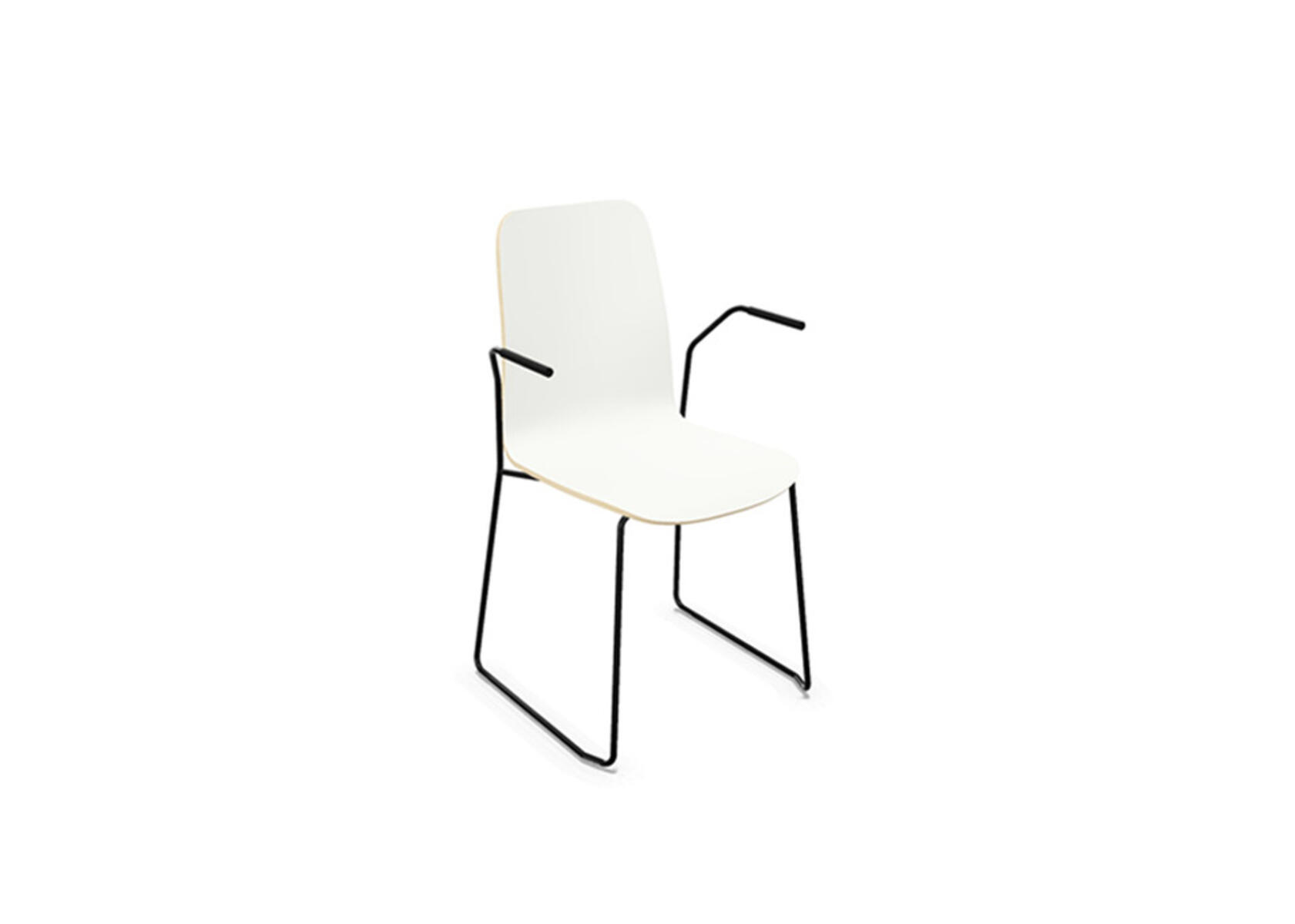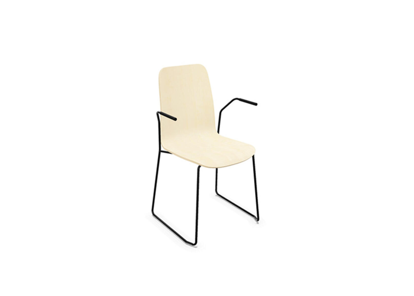 Sittskal i formpressad plywood belagd med högtryckslaminat. Stabilt pulverlackat stativ av ø 12 mm rör med möbeltassar för att skydda golvet. Armstöd finns som tillval. Maxvikt 110 kg. Stolen är stapelbar upp till 6 enheter.