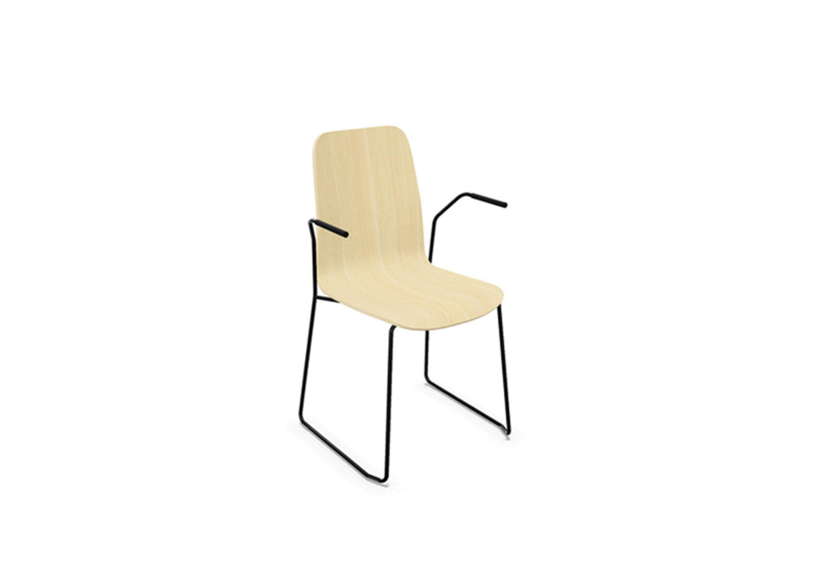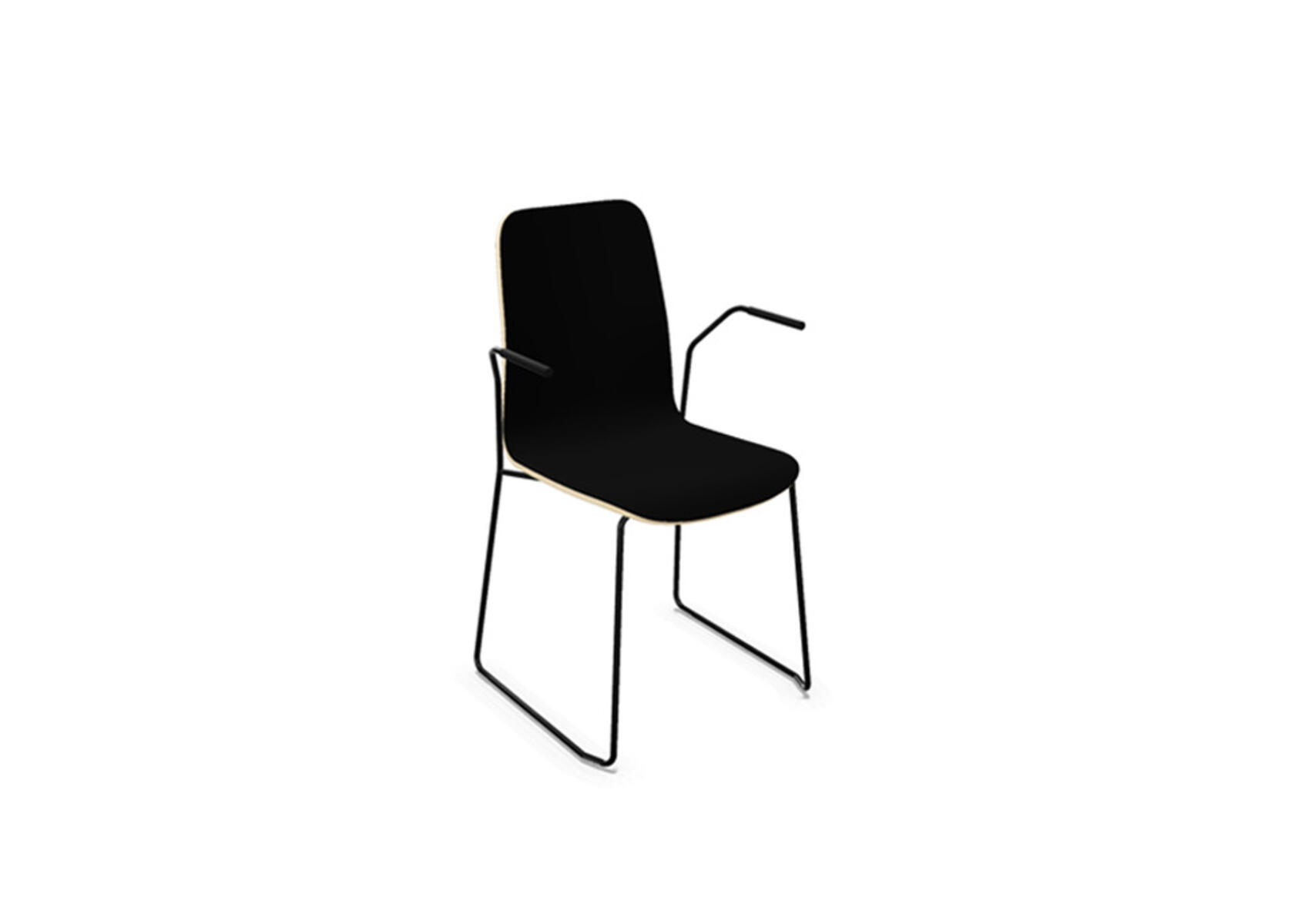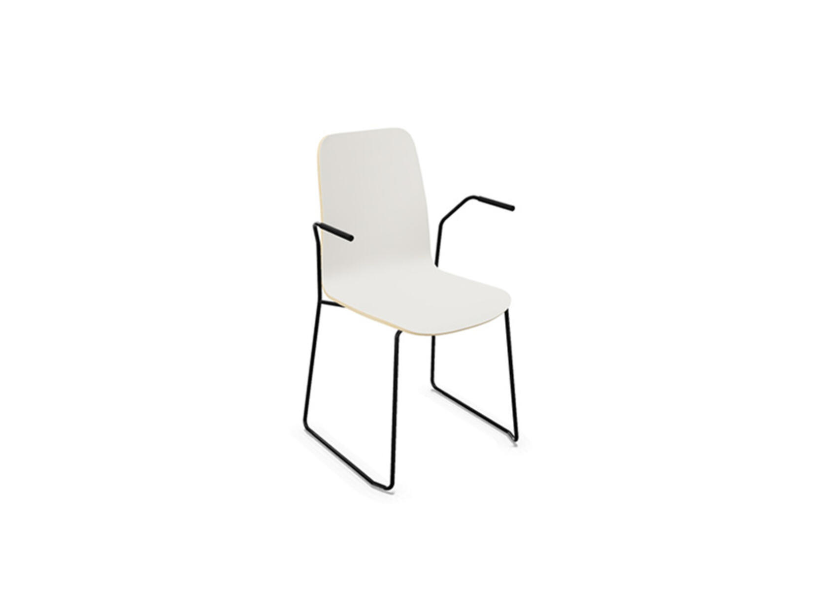 Sittskal i formpressad plywood belagd med högtryckslaminat. Stabilt pulverlackat stativ av ø 12 mm rör med möbeltassar för att skydda golvet. Armstöd finns som tillval. Maxvikt 110 kg. Stolen är stapelbar upp till 6 enheter.
