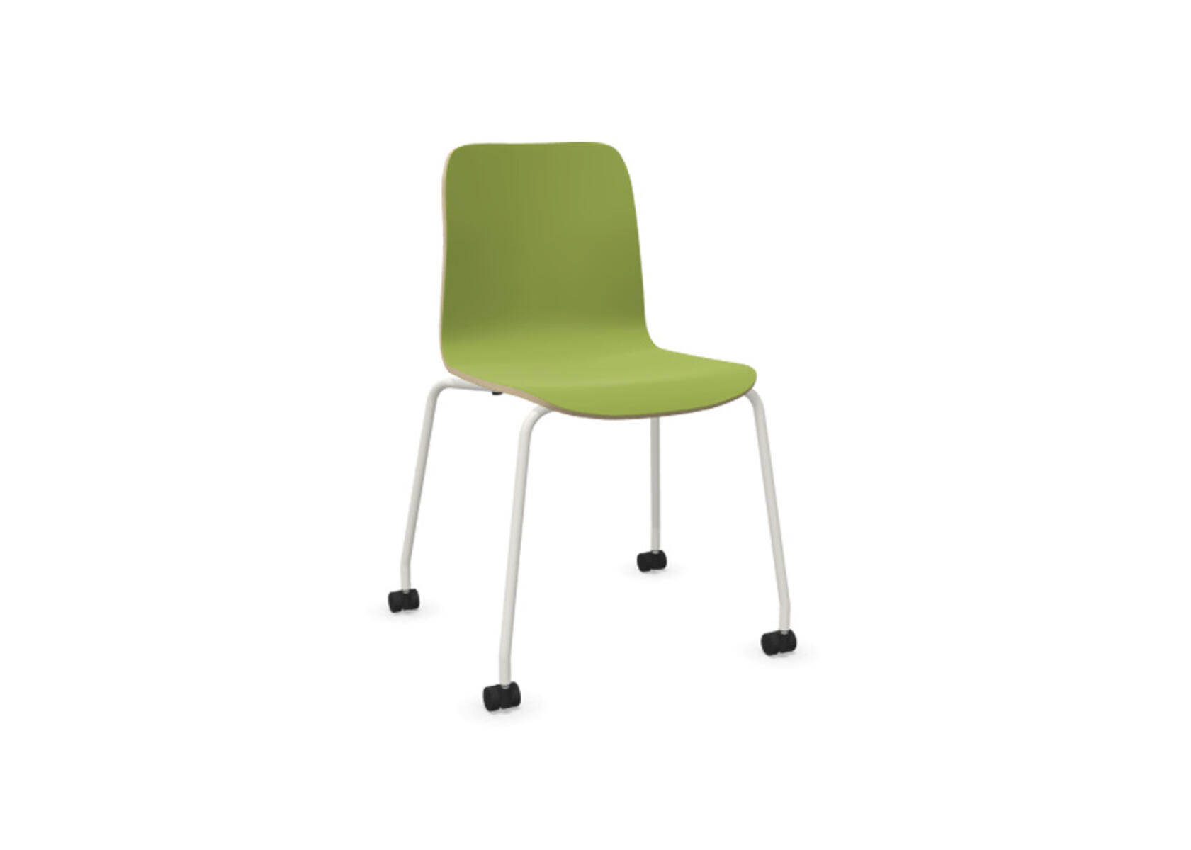 Sittskal i formpressad plywood belagd med högtryckslaminat. Stabilt pulverlackat stativ av ø 18 mm rör med möbeltassar för att skydda golvet. Armstöd finns som tillval. För ännu större flexibilitet finns kopplingsbeslag samt radkopplingsbeslag (säljs separat) som gör det enkelt att skapa rader eller gruppsittningar. Maxvikt 110 kg. Stolen är stapelbar upp till 6 enheter.