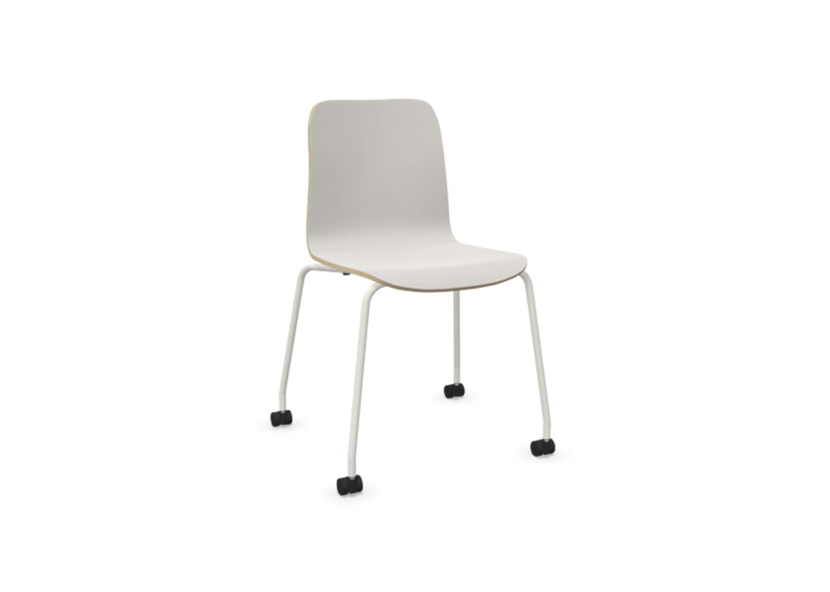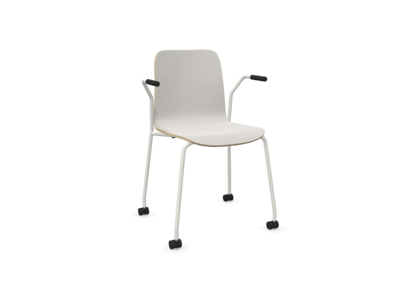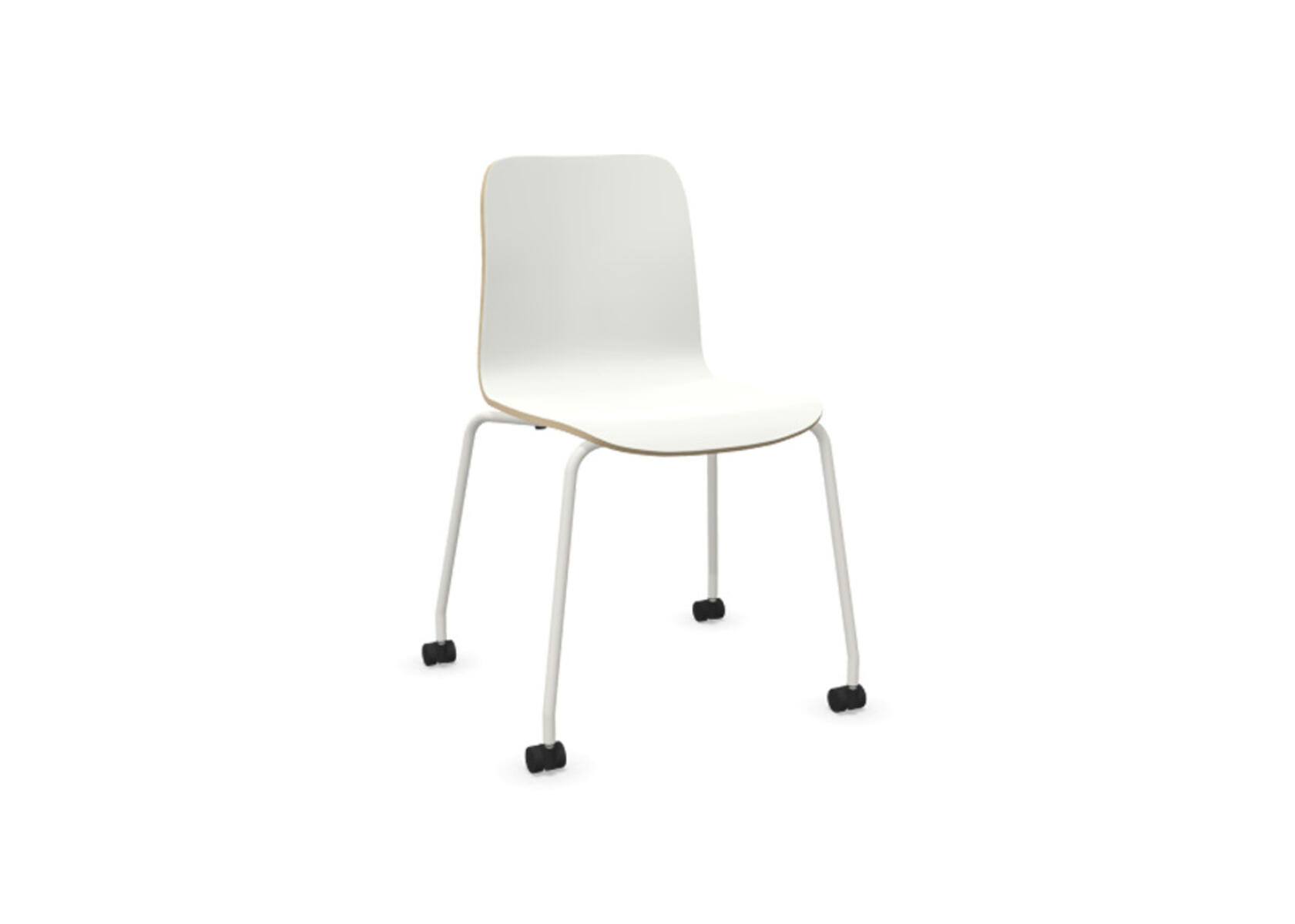 Sittskal i formpressad plywood klädd med kallskum, vilket ger både komfort och stöd. Stabilt pulverlackat 4-krysstativ av ø 18 mm rör med hjul för hårda golv. Armstöd finns som tillval. Maxvikt 110 kg. Stolen är ej höj-sänkbar. Ej heller med rotationsfunktion.