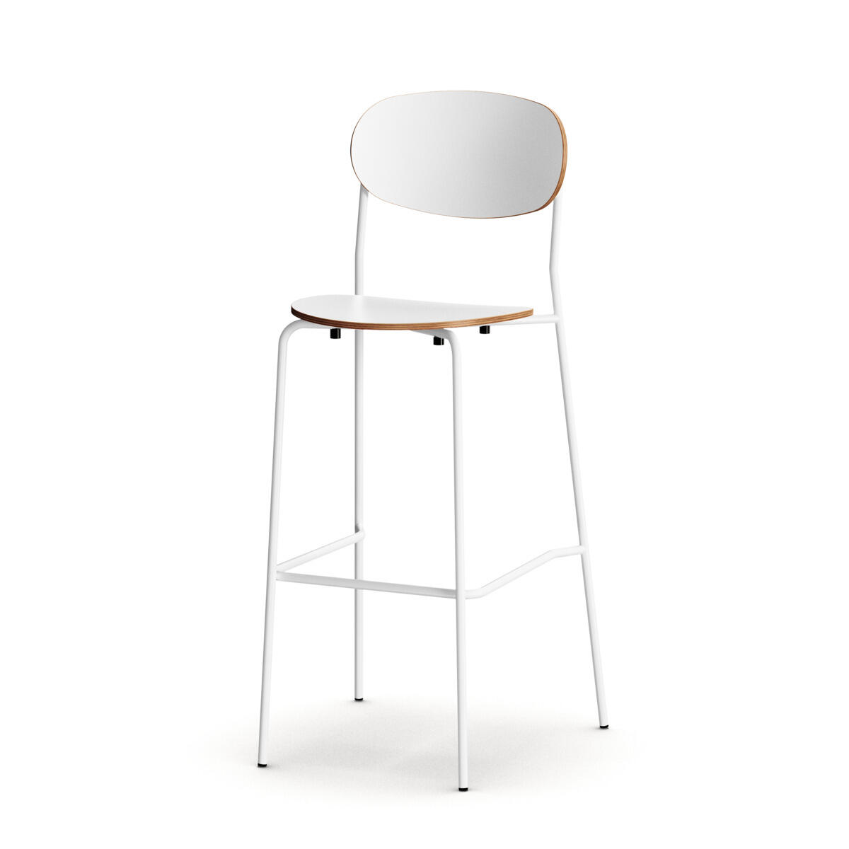 Stol Collab med stativ tillverkat av 16 mm rör, pulverlackerad i RAL 9003. Sits och rygg är i formpressad plywood för stabilitet och komfort. Produkten är testad och godkänd enligt standard EN 1729-2:2023. Stolen är stapelbar.