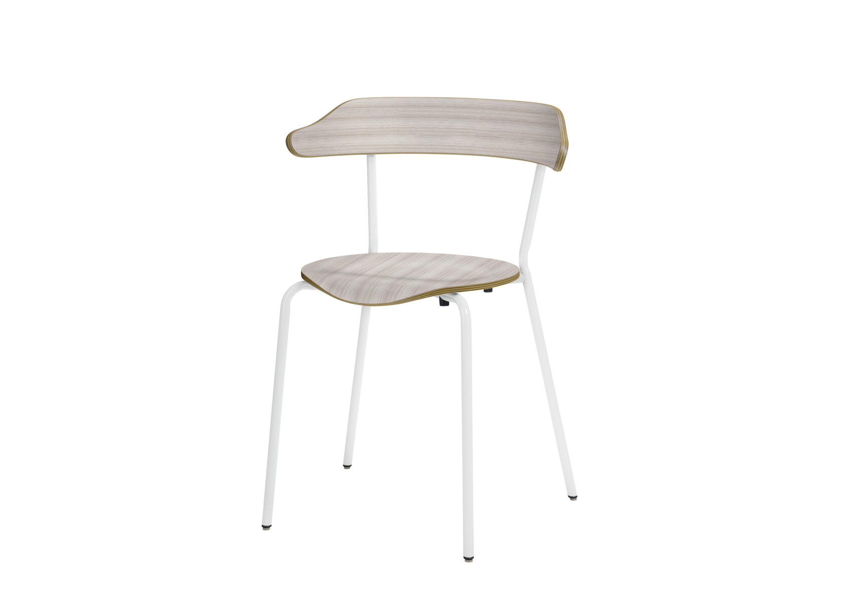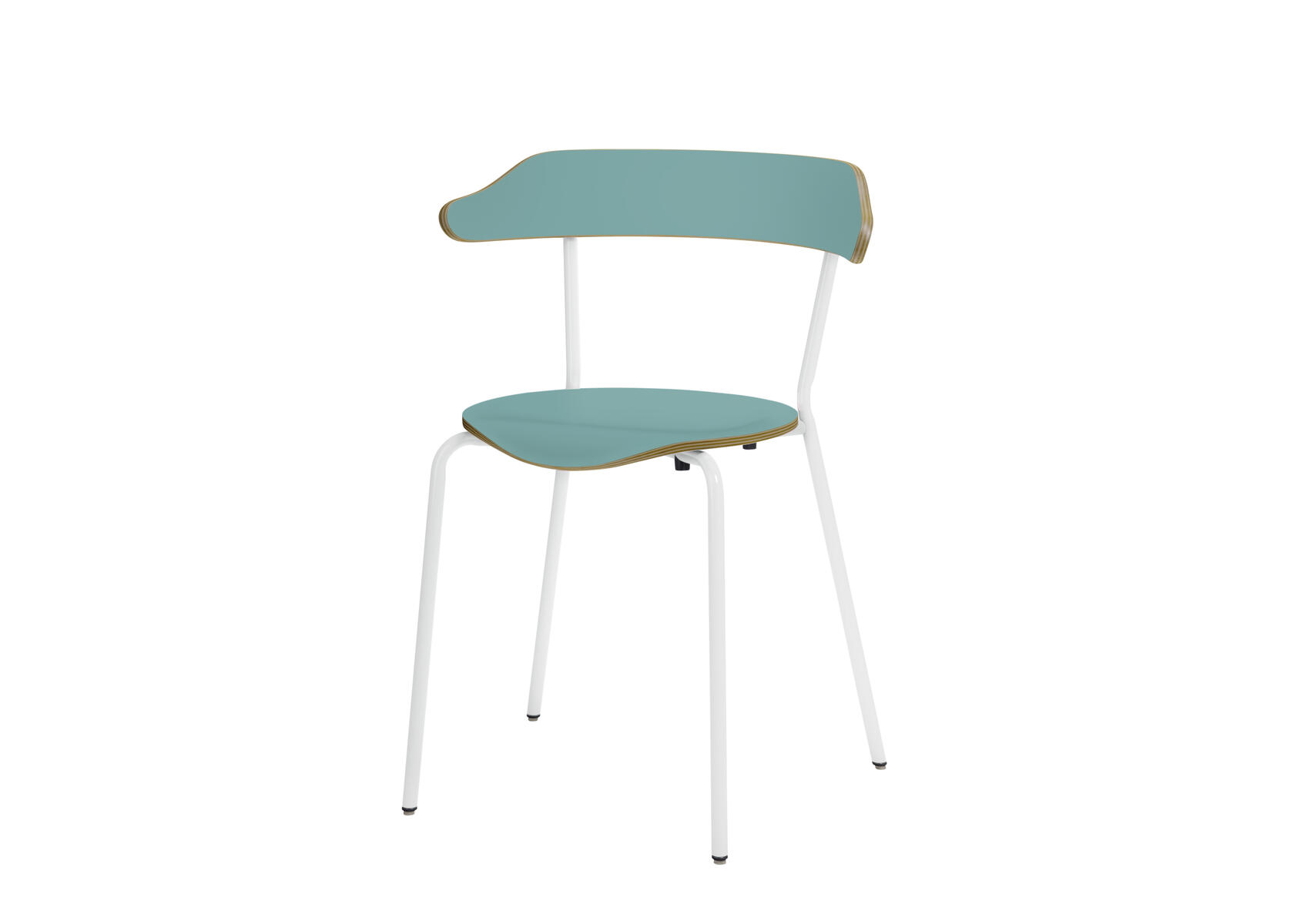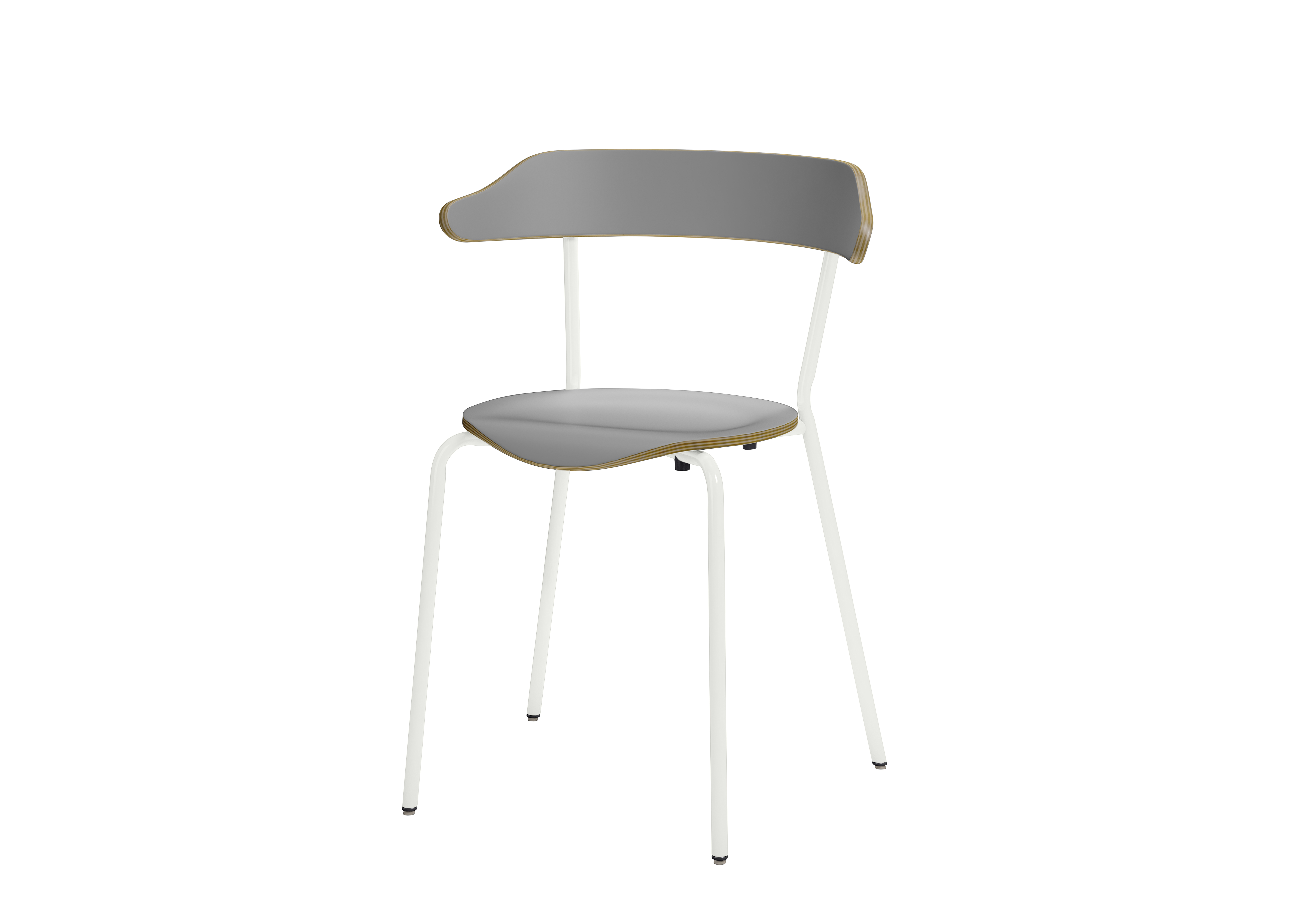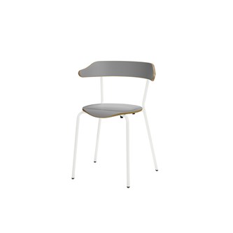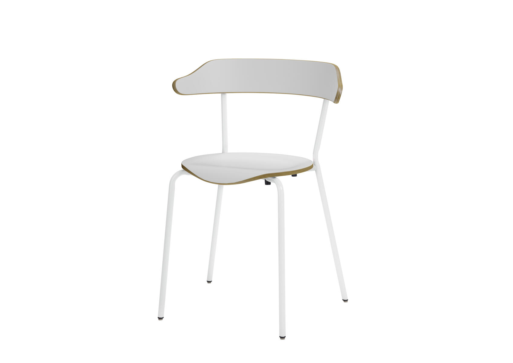 Stapelbar stol (max 8/stapel) och stabil för upphängning. Tysta tassar. Sittbredd 38,5 cm, sittdjup 38 cm och sitthöjd 43 cm. Vikt 3,75 kg. Sits och rygg i högtryckslaminat med vitlackerat stativ, RAL 9003. Testad och godkänd för offentlig miljö enligt gällande Europakrav.