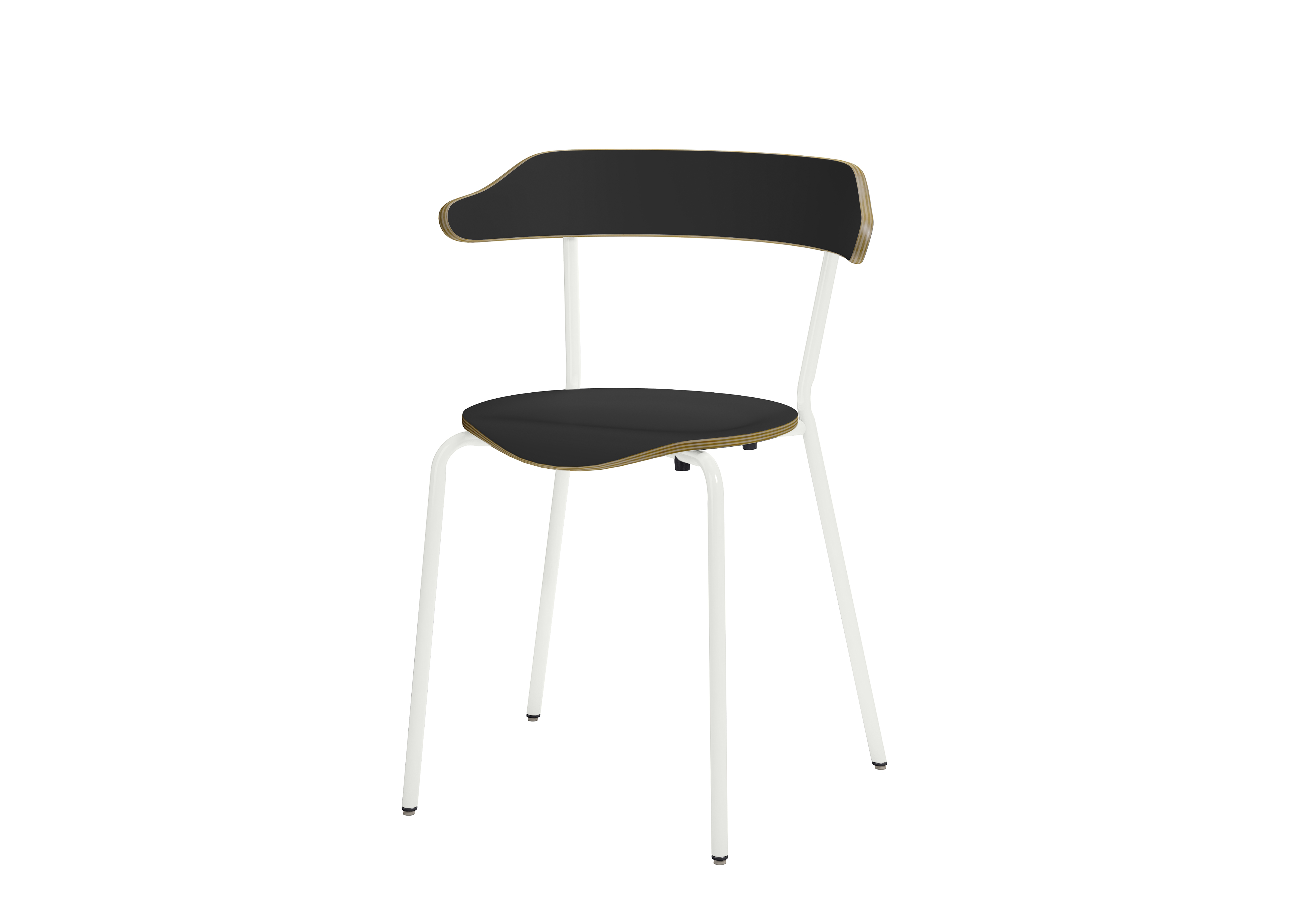 Stapelbar stol (max 8/stapel) och stabil för upphängning. Tysta tassar. Sittbredd 38,5 cm, sittdjup 38 cm och sitthöjd 43 cm. Vikt 3,75 kg. Sits och rygg i högtryckslaminat med svartlackerat stativ, RAL 9005. Testad och godkänd för offentlig miljö enligt gällande Europakrav.