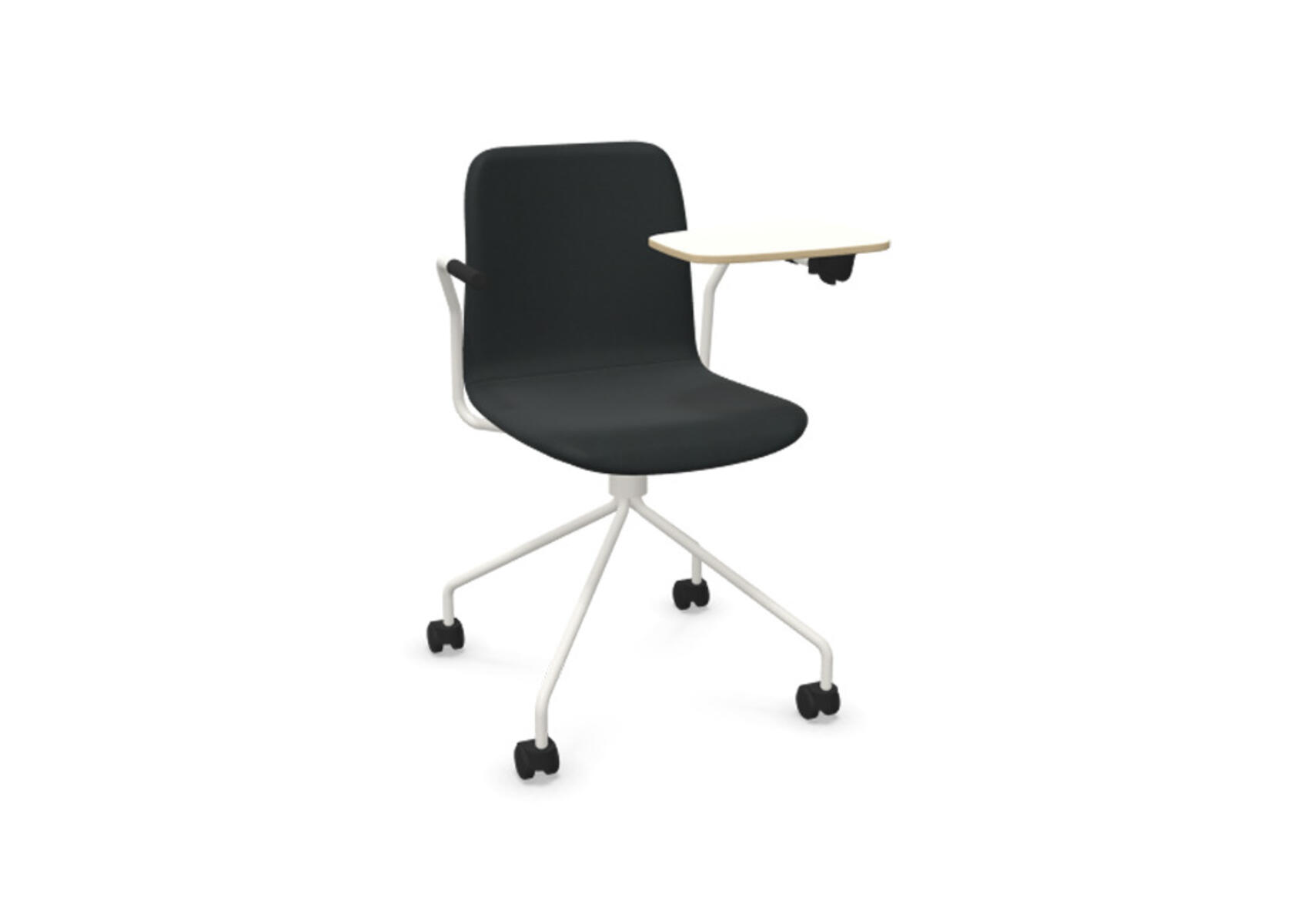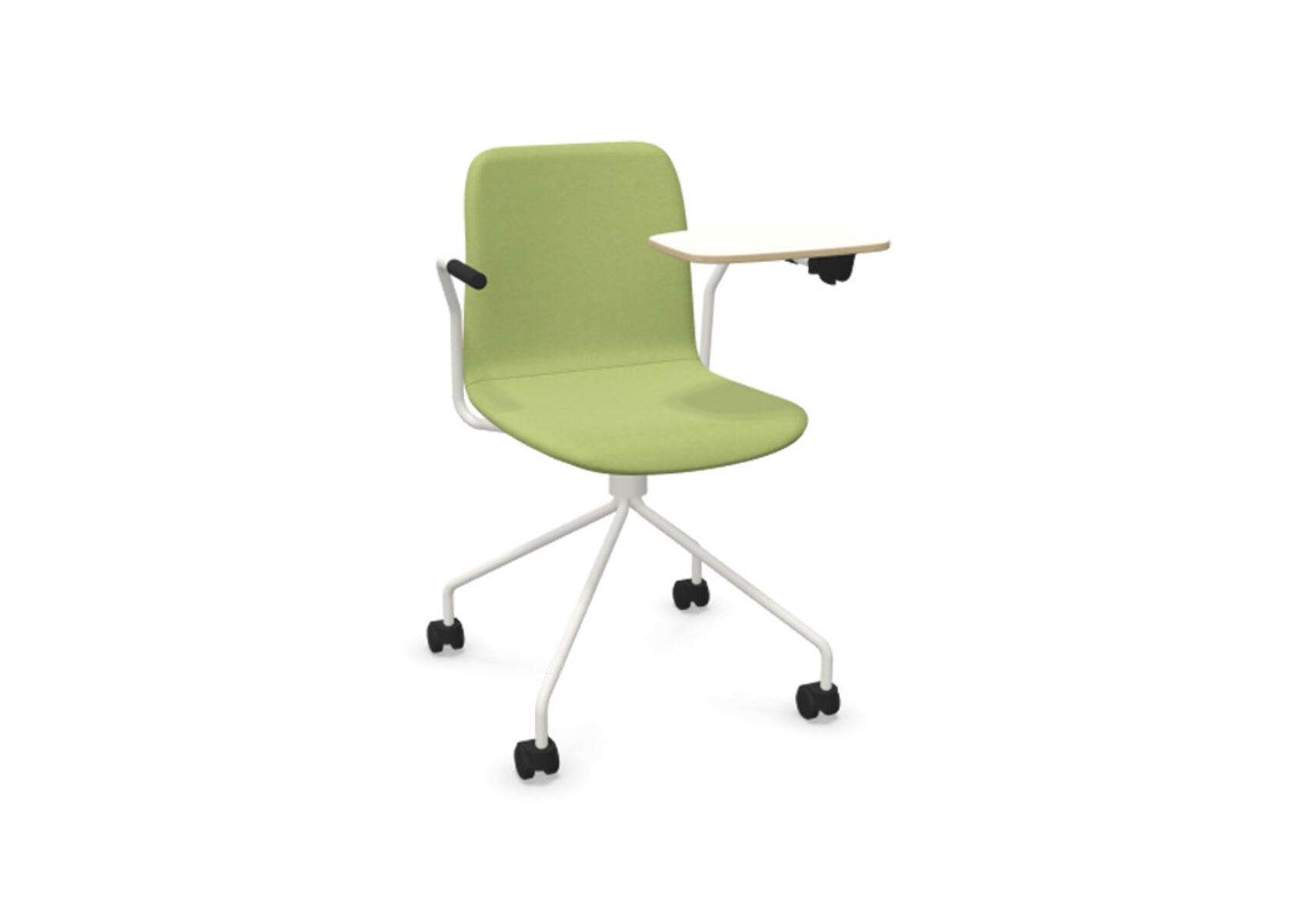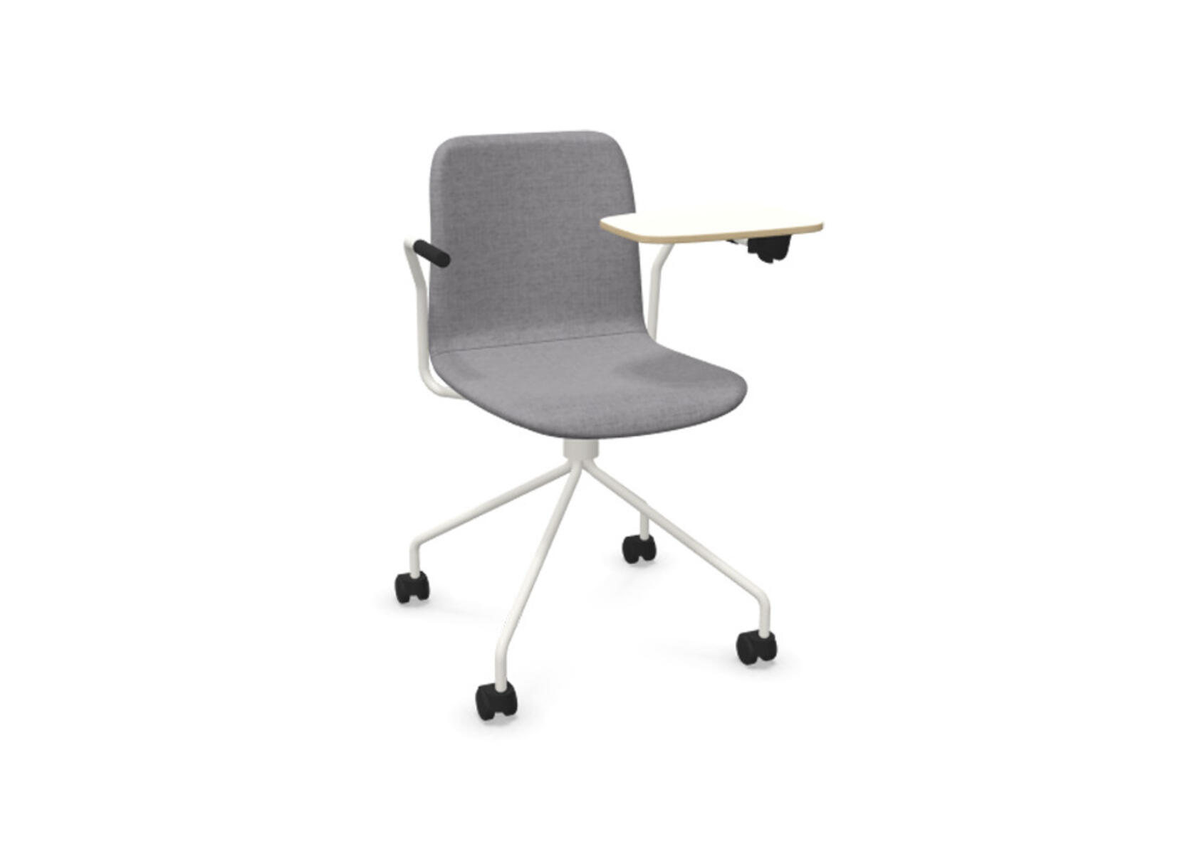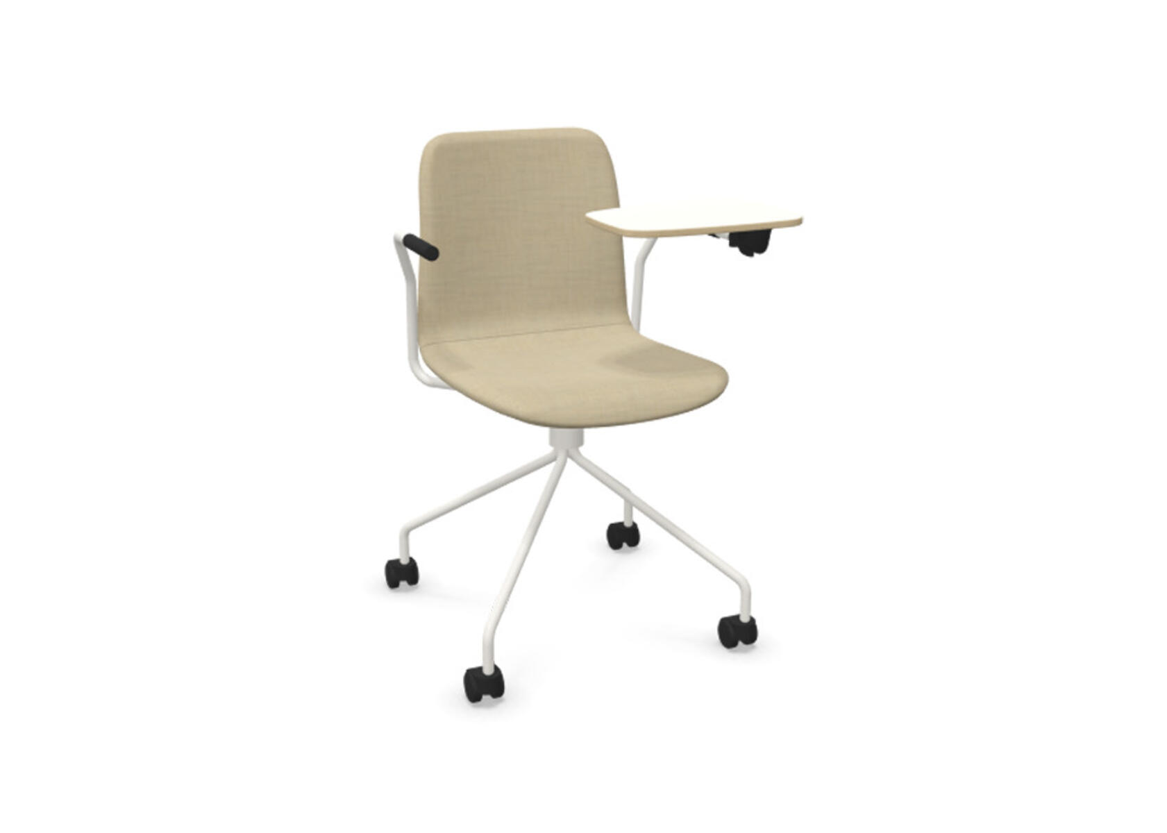Konferensstol Vapaa helklädd låg rygg med skrivskiva 4-kryss hjul vit