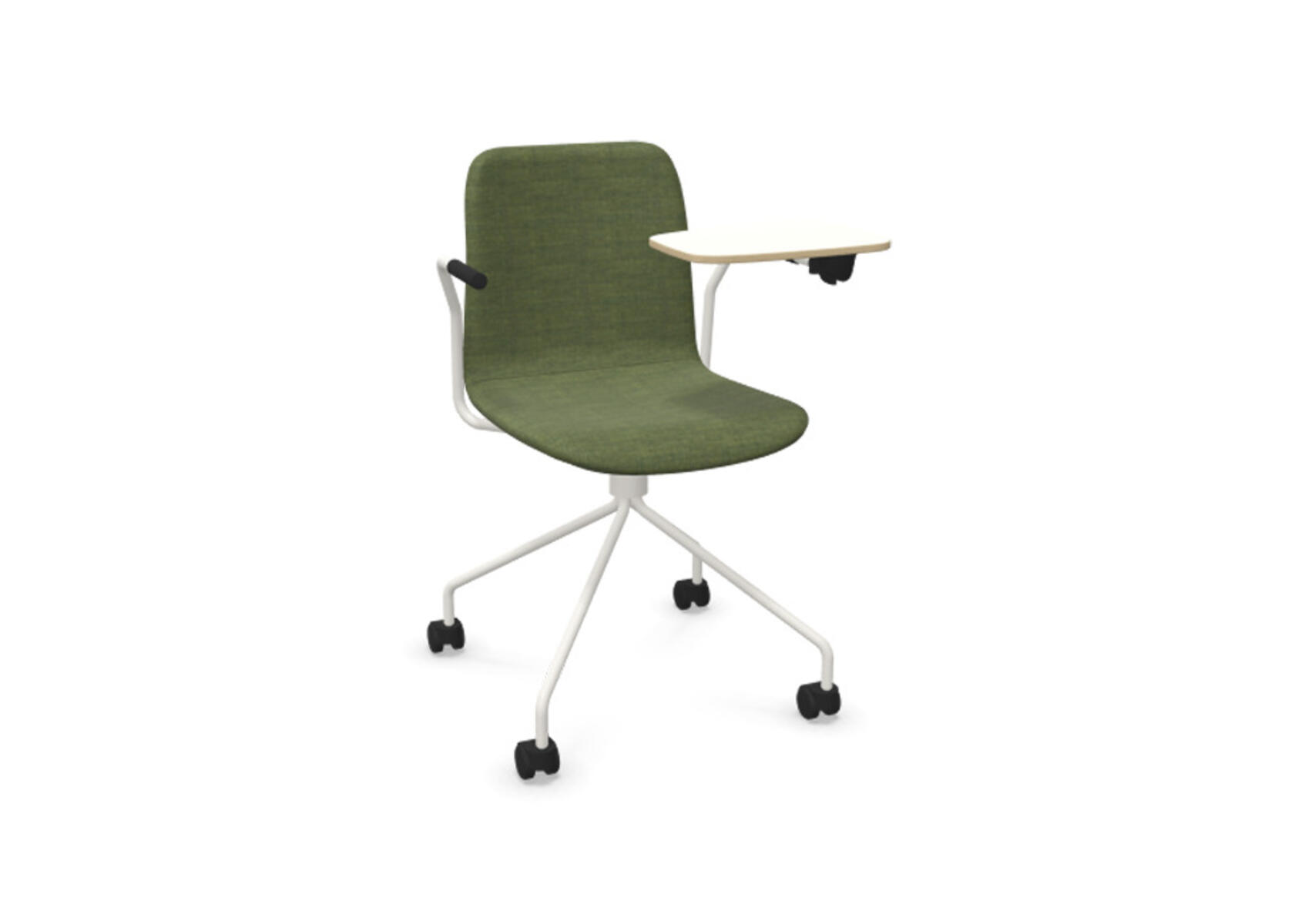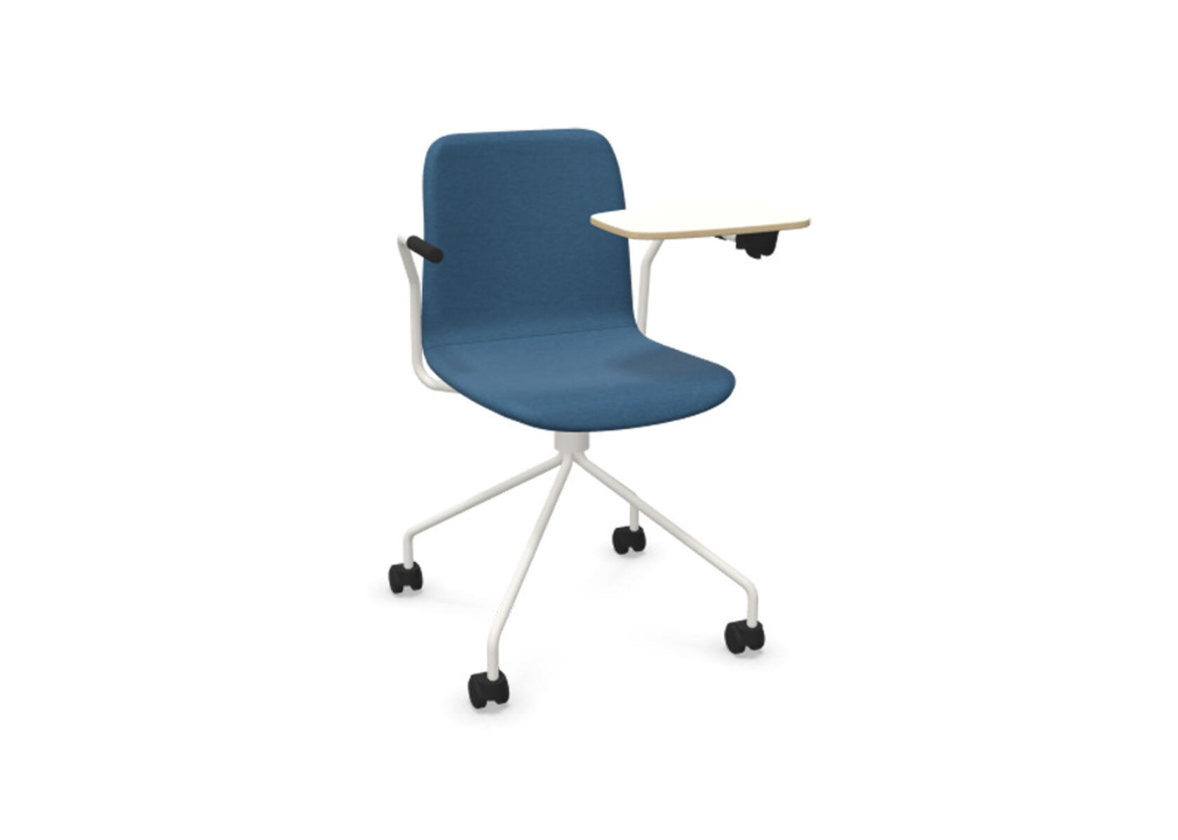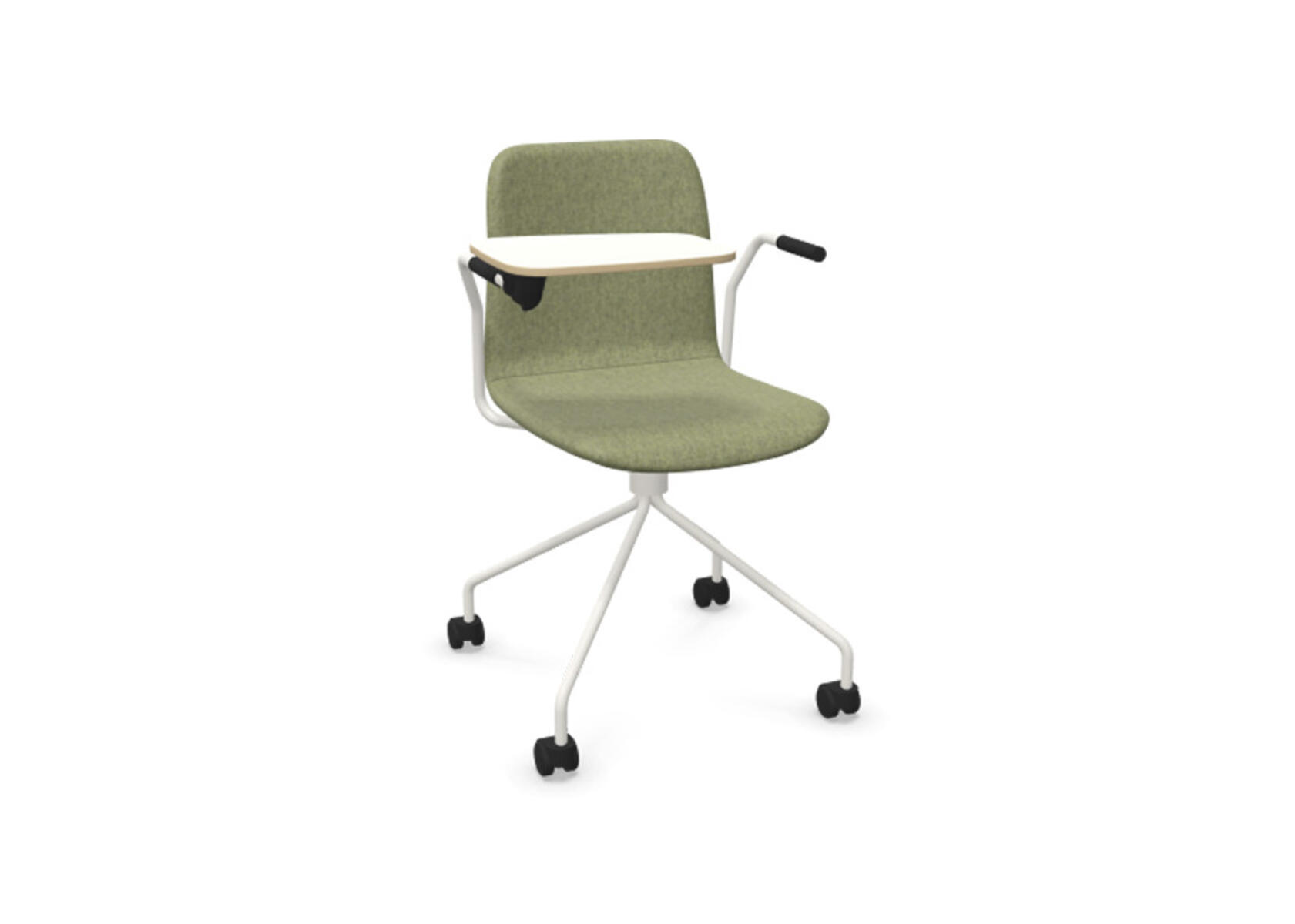 Konferensstol Vapaa helklädd låg rygg med skrivskiva 4-kryss hjul vit