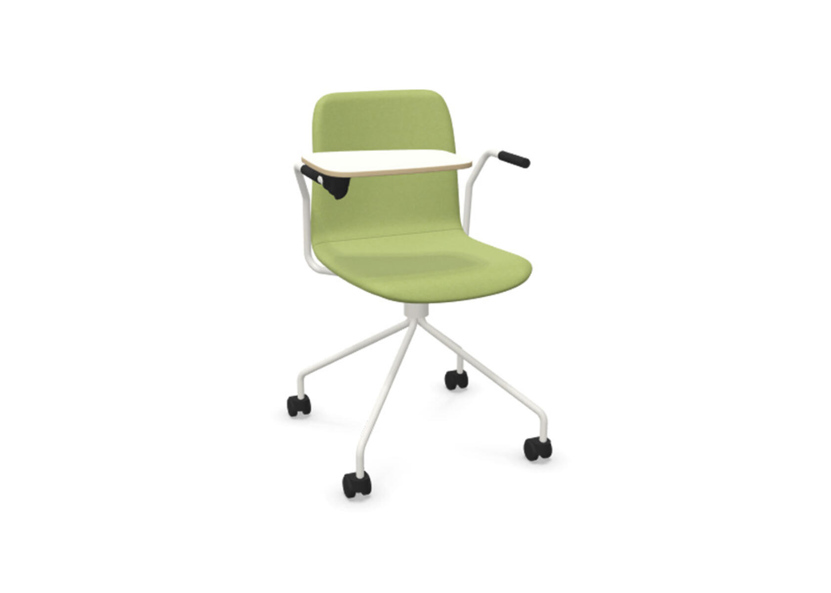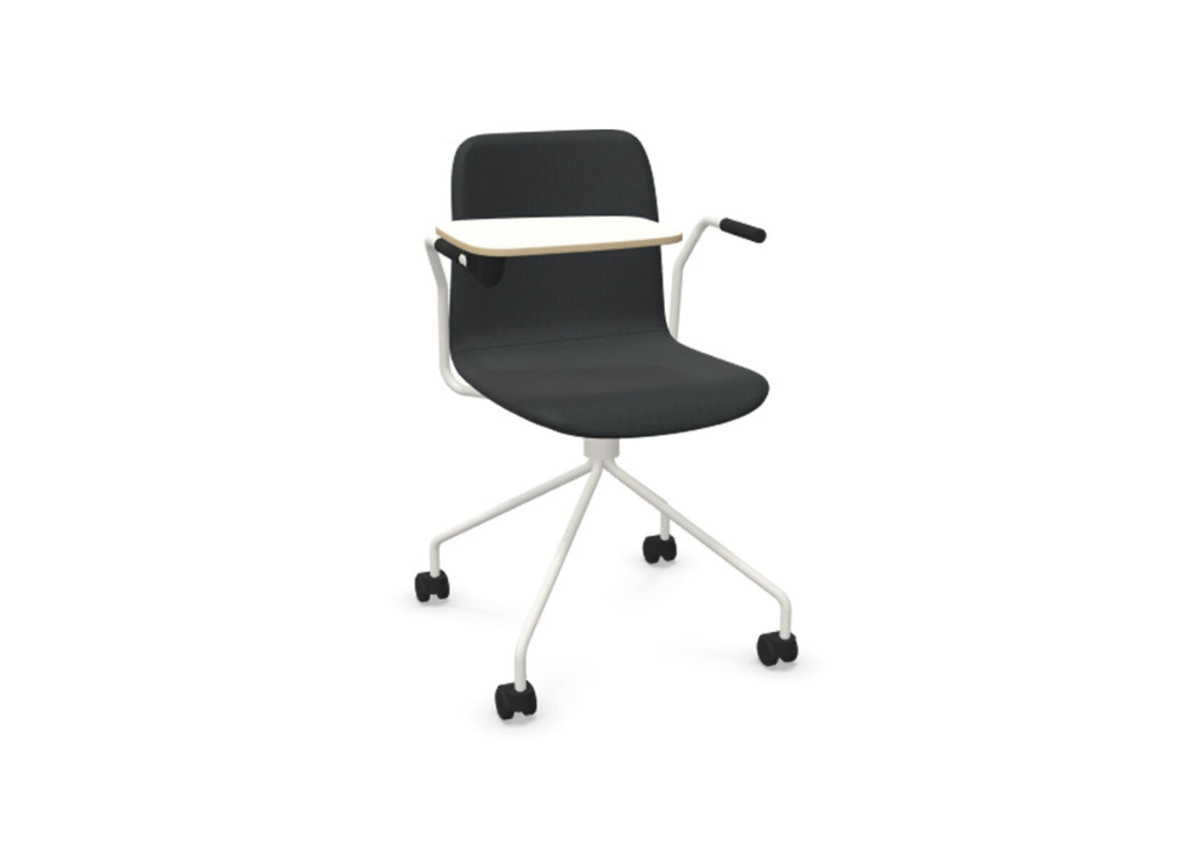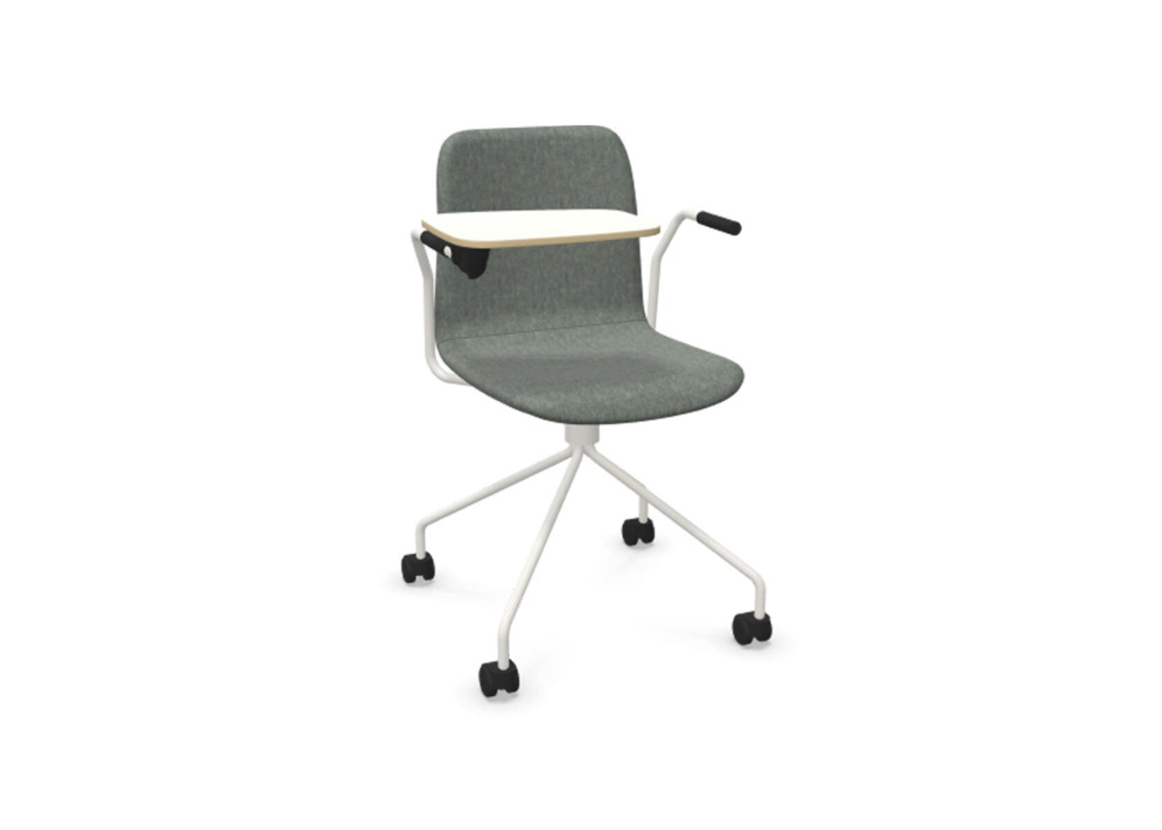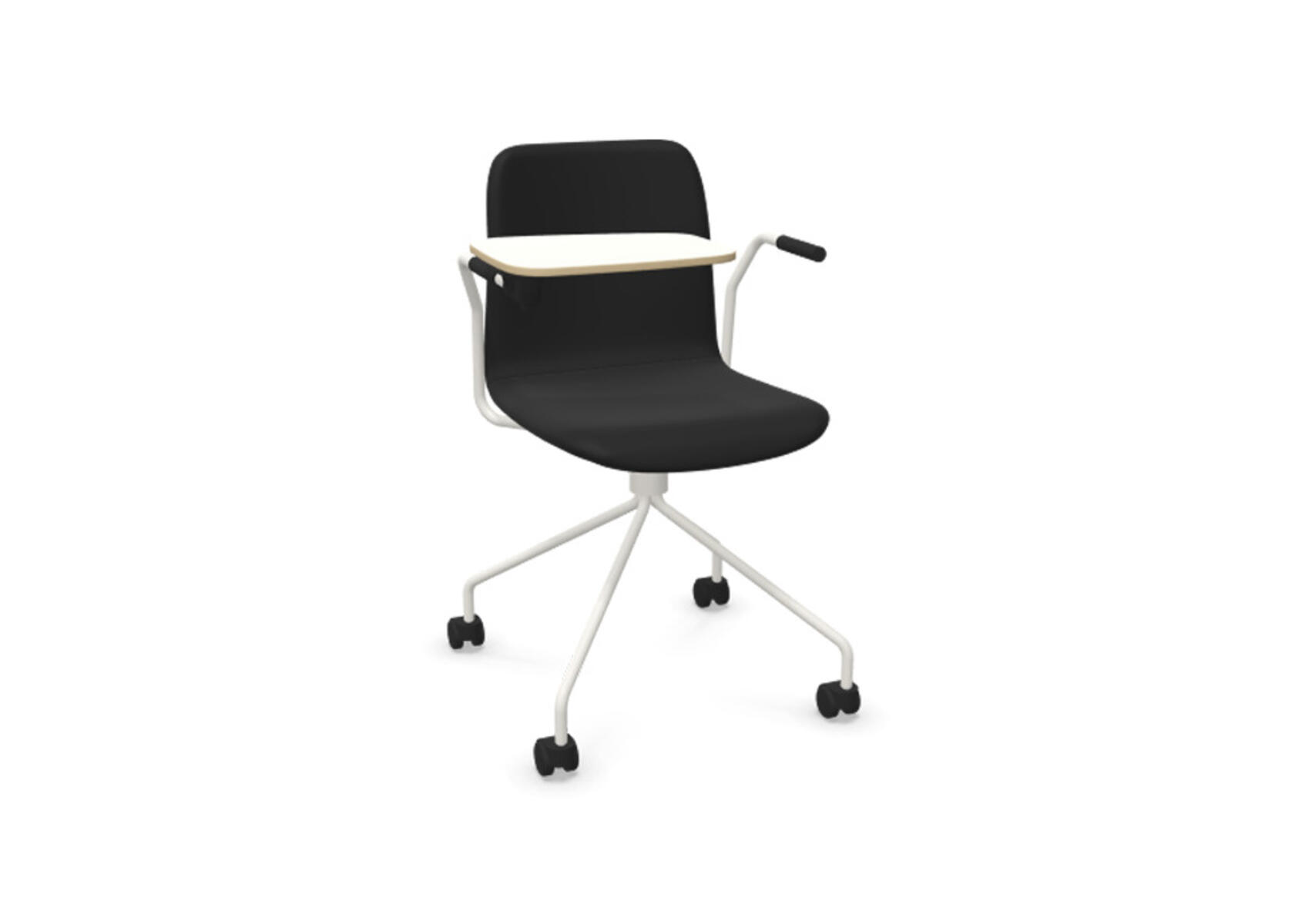 Konferensstol Vapaa helklädd låg rygg med skrivskiva 4-kryss hjul vit