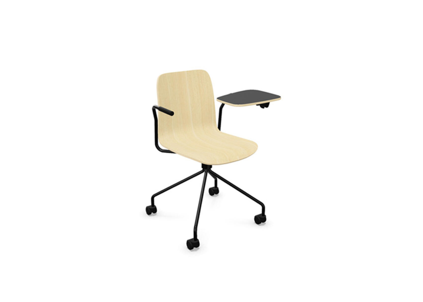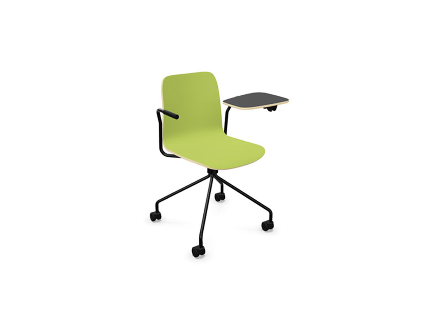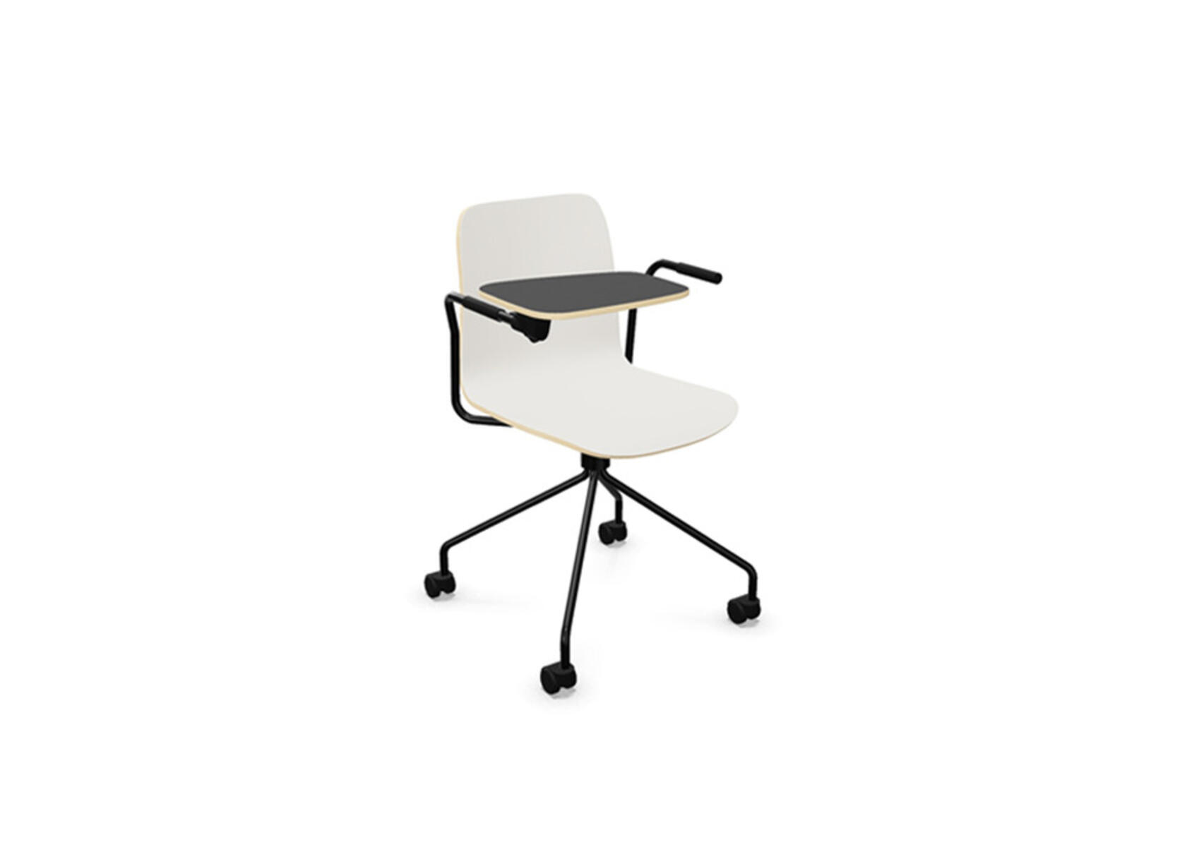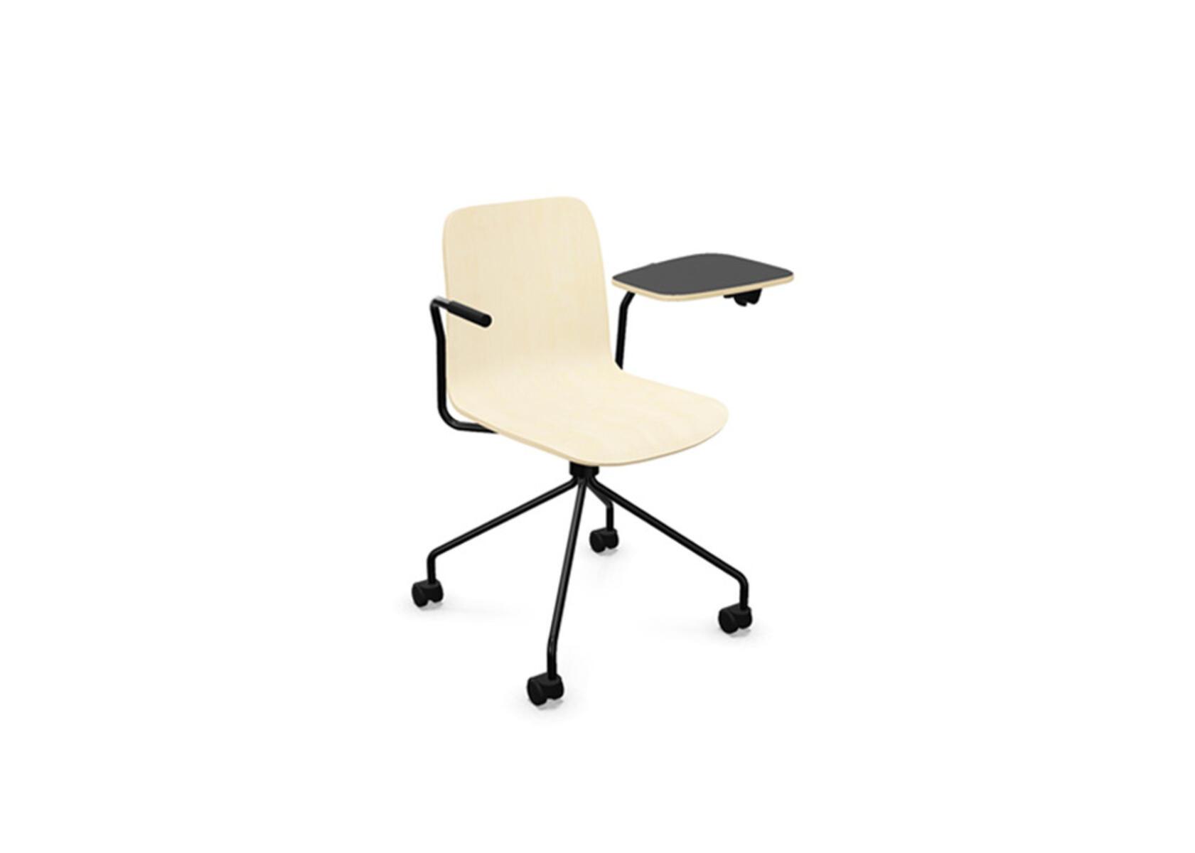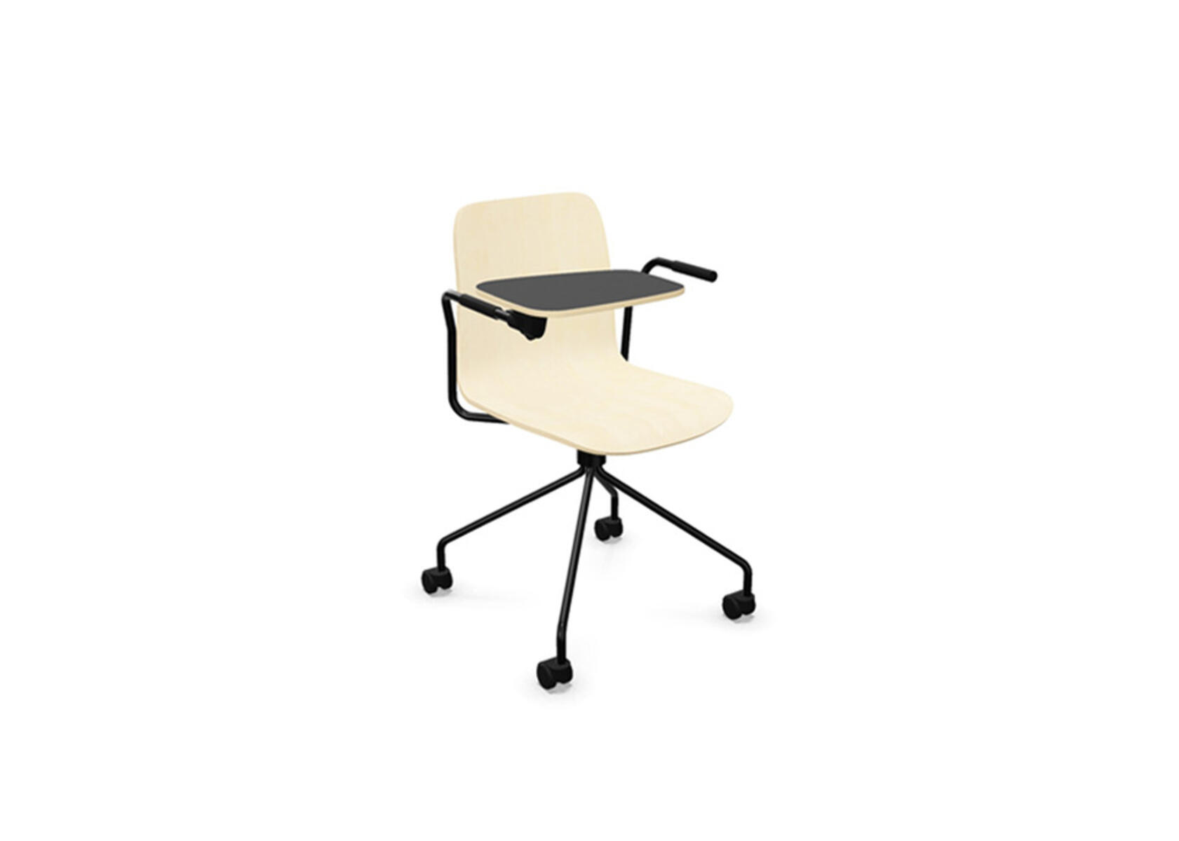 Sittskal i formpressad plywood belagd med högtryckslaminat. Stabilt pulverlackat stativ av ø 18 mm rör med möbeltassar för att skydda golvet. Skrivskiva i plywood belagd med laminat, tjocklek skrivskiva 10,5 mm. För ännu större flexibilitet finns kopplingsbeslag samt radkopplingsbeslag (säljs separat) som gör det enkelt att skapa rader eller gruppsittningar. Maxvikt 110 kg. Stolen är ej stapelbar.