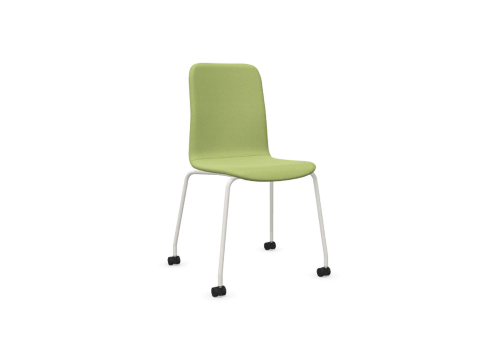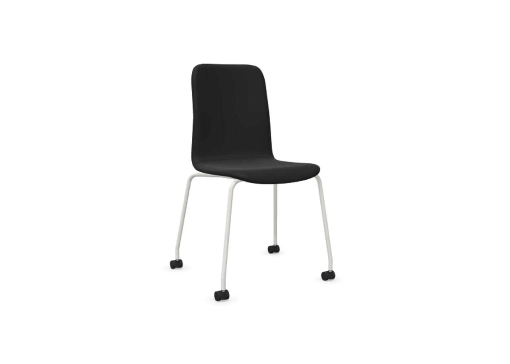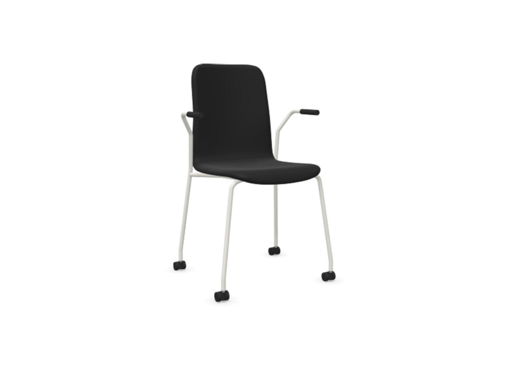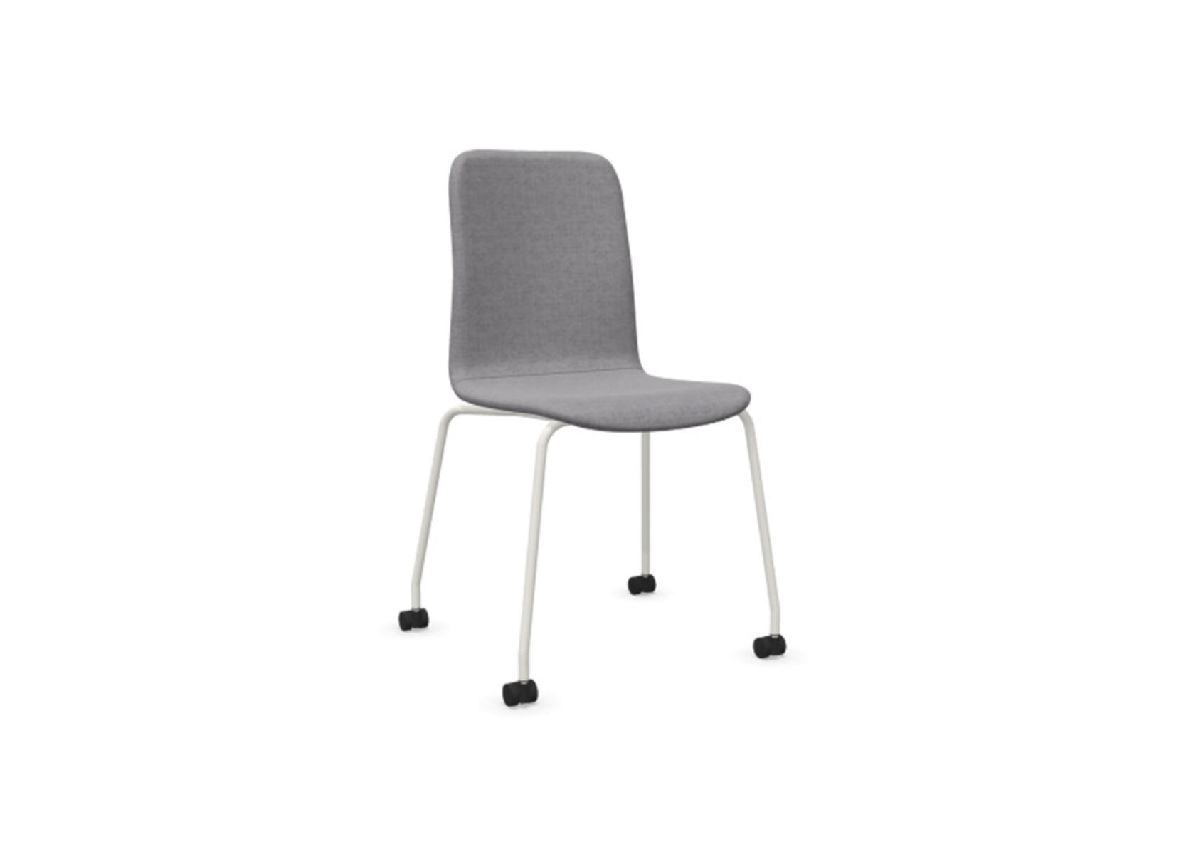 Sittskal i formpressad plywood klädd med kallskum, vilket ger både komfort och stöd. Stabilt pulverlackat 4-krysstativ av ø 18 mm rör med hjul för hårda golv. Armstöd finns som tillval. Maxvikt 110 kg. Stolen är ej höj-sänkbar. Ej heller med rotationsfunktion.