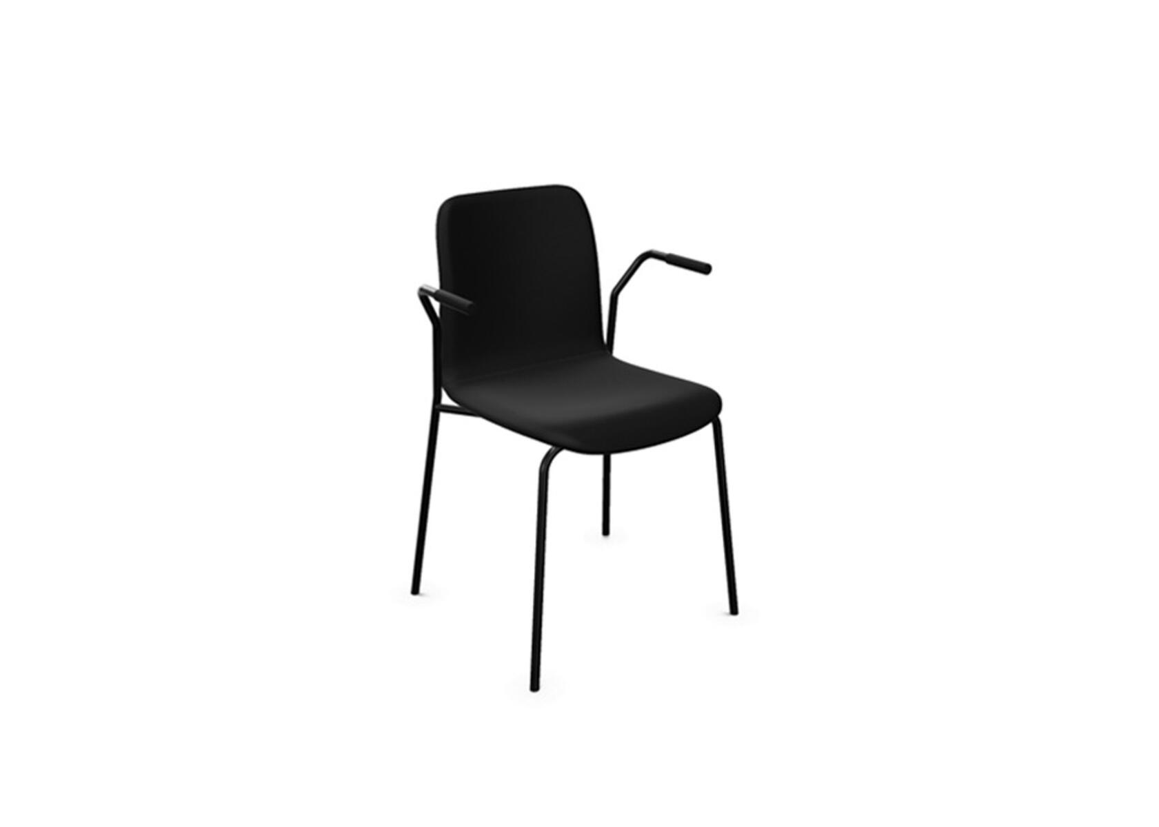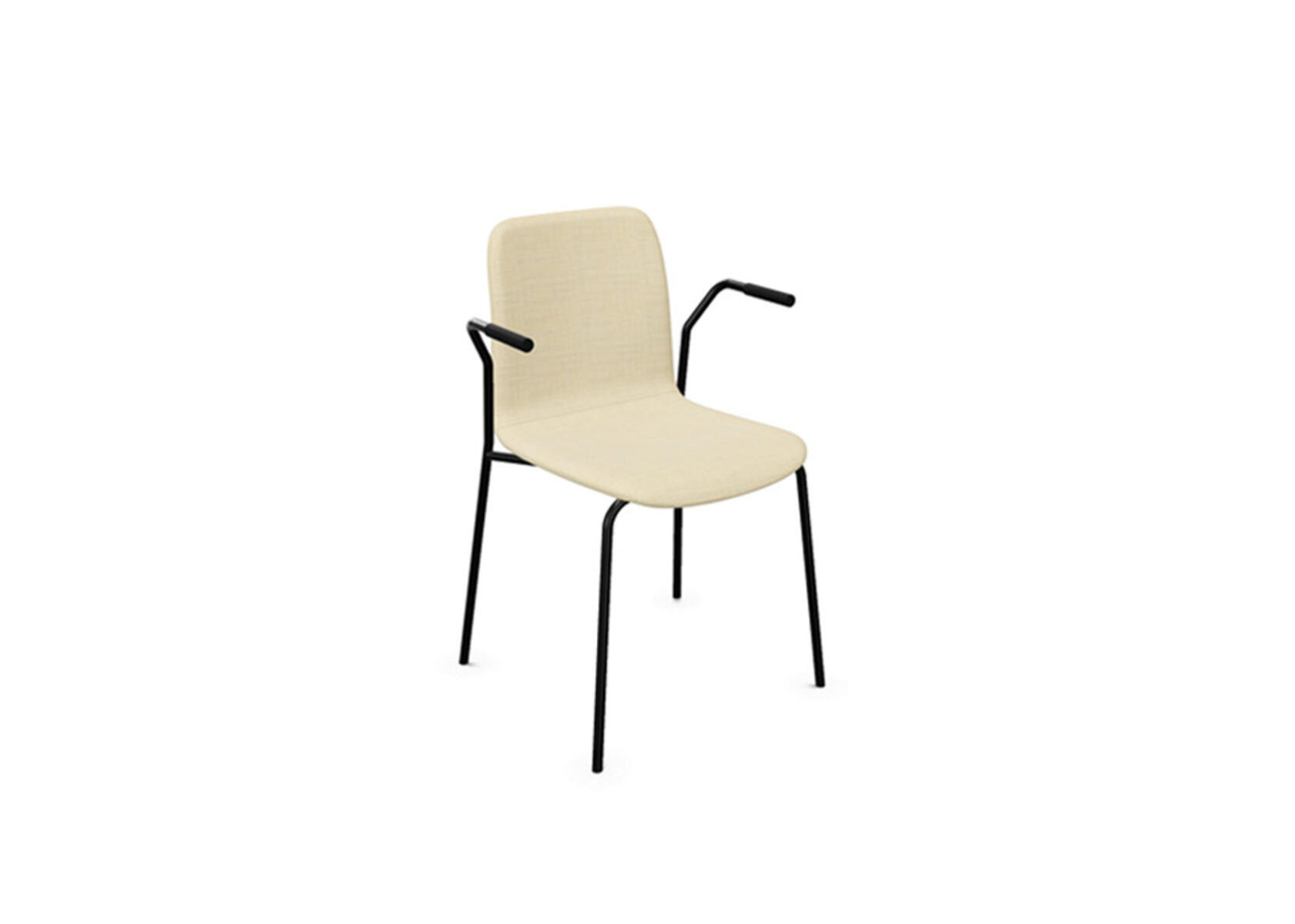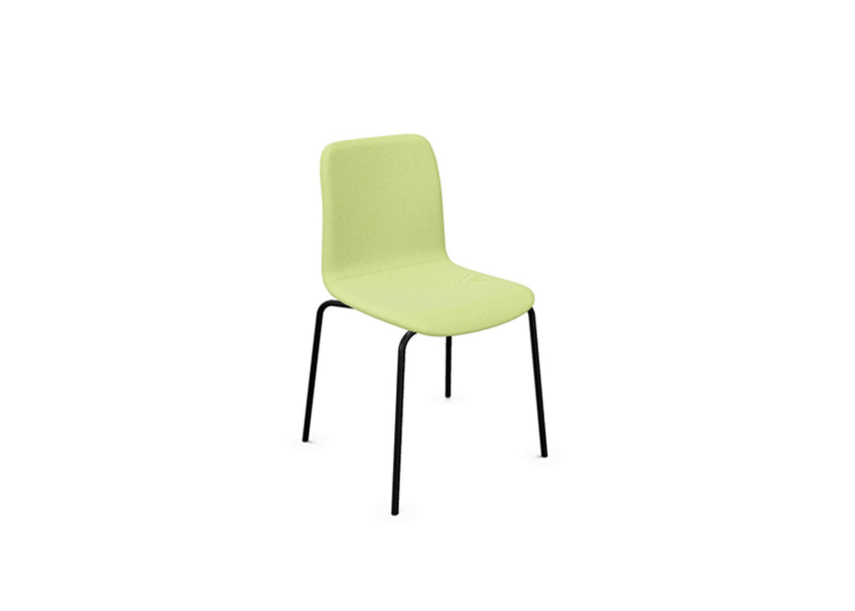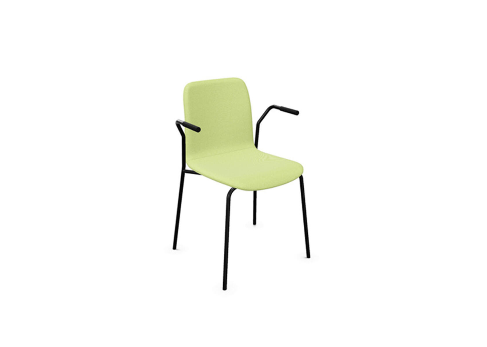 Sittskal i formpressad plywood klädd med kallskum, vilket ger både komfort och stöd. Stabilt pulverlackat stativ av ø 18 mm rör med möbeltassar för att skydda golvet. Armstöd finns som tillval. För ännu större flexibilitet finns kopplingsbeslag samt radkopplingsbeslag (säljs separat) som gör det enkelt att skapa rader eller gruppsittningar. Maxvikt 110 kg. Stolen är stapelbar upp till 6 enheter.